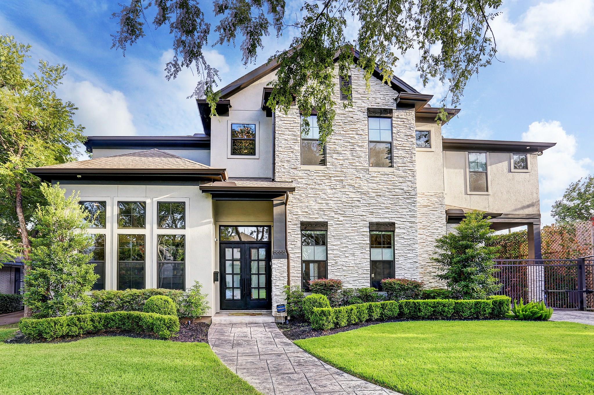 OH 4/18. Modern design, clean finishes, high ceilings, large open living areas, tons of natural light, primary bedroom down, separate quarters. Hardwoods throughout - no carpet. First floor includes study, wine grotto with refrigerator, utility / mud room & butler’s pantry. Gourmet kitchen features large island with 5 stool seating, Carrara marble counters and stainless steel appliances - Wolf 6 burner gas stove, Wolf microwave, Asko dishwasher and built-in Sub-zero refrigerator. First floor master suite has luxurious bath & large walkin closet with extensive built-ins. Second floor has 3 bedrooms plus gameroom, den and 7x7 computer nook. Square footage includes 528 SF guest quarters, which features full bath, kitchen, full sized washer/dryer, hardwood floor & Daikin AC unit. Exterior features include driveway gate, porte-cochere, expansive covered back patio and decking with room for a pool. 4 security cameras on Control 4 system. Slab is on builder's piers for long lasting stability.