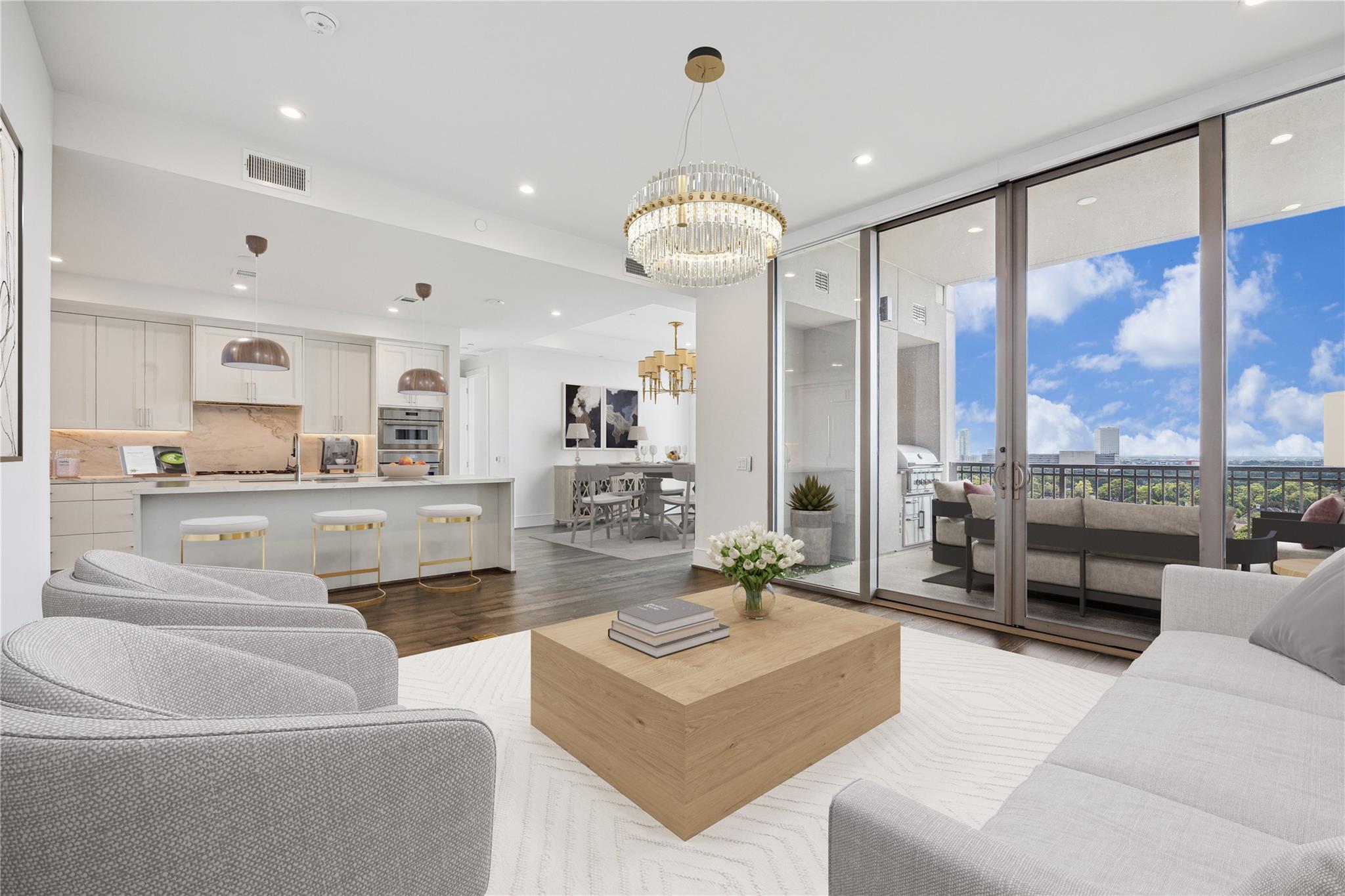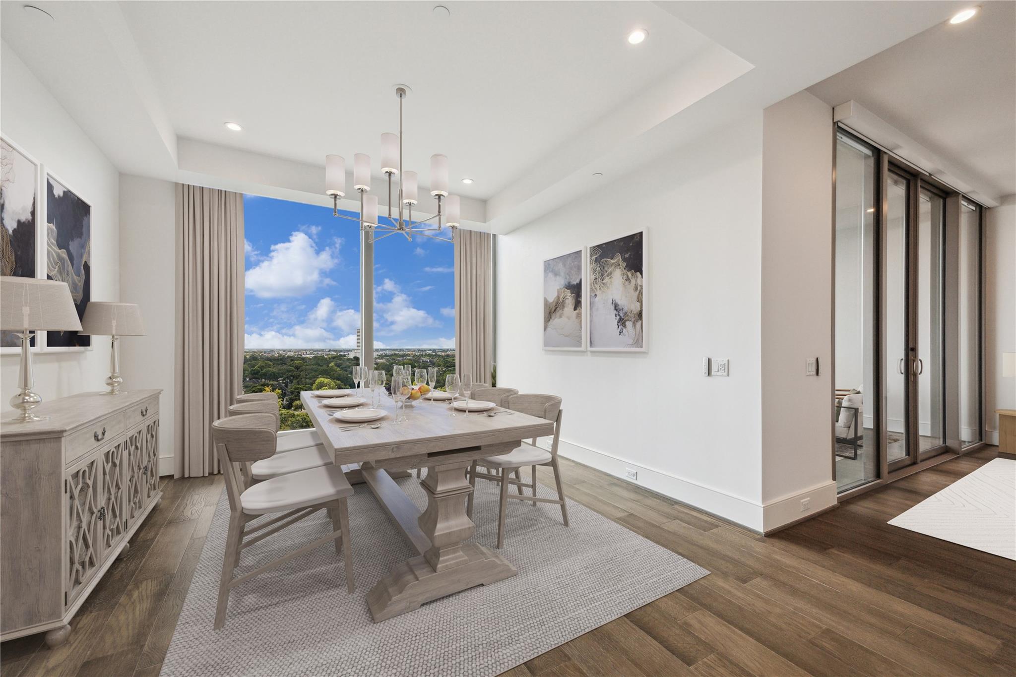 Stunning 12th floor 2 bdrm 2 bths with nothing short of spectacular South views in the most luxurious new construction high-rise, The Hawthorne, located in the coveted Tanglewood neighborhood. Expansive living & dining with floor to ceiling windows & remote-controlled shades open to a gourmet kitchen with center island & top-of-line appliances. Enjoy the magnificent sweeping views of the South from the private balcony with built-in gas grill & pet pad. Primary bedroom with remote-operated shades, floor to ceiling windows flooding the space with natural light & connecting to a luxury spa-like bathroom designed for ultimate relaxation & leading to a custom-built walk-in primary closet. 2 assigned parking. climate controlled storage. Amenities include a gym, lounge, guest suites, dog run & resort-style pool. On-site management. 24 hrs concierge & valet service. Close to shopping, dining & nightlife, including Uptown Park & Galleria.