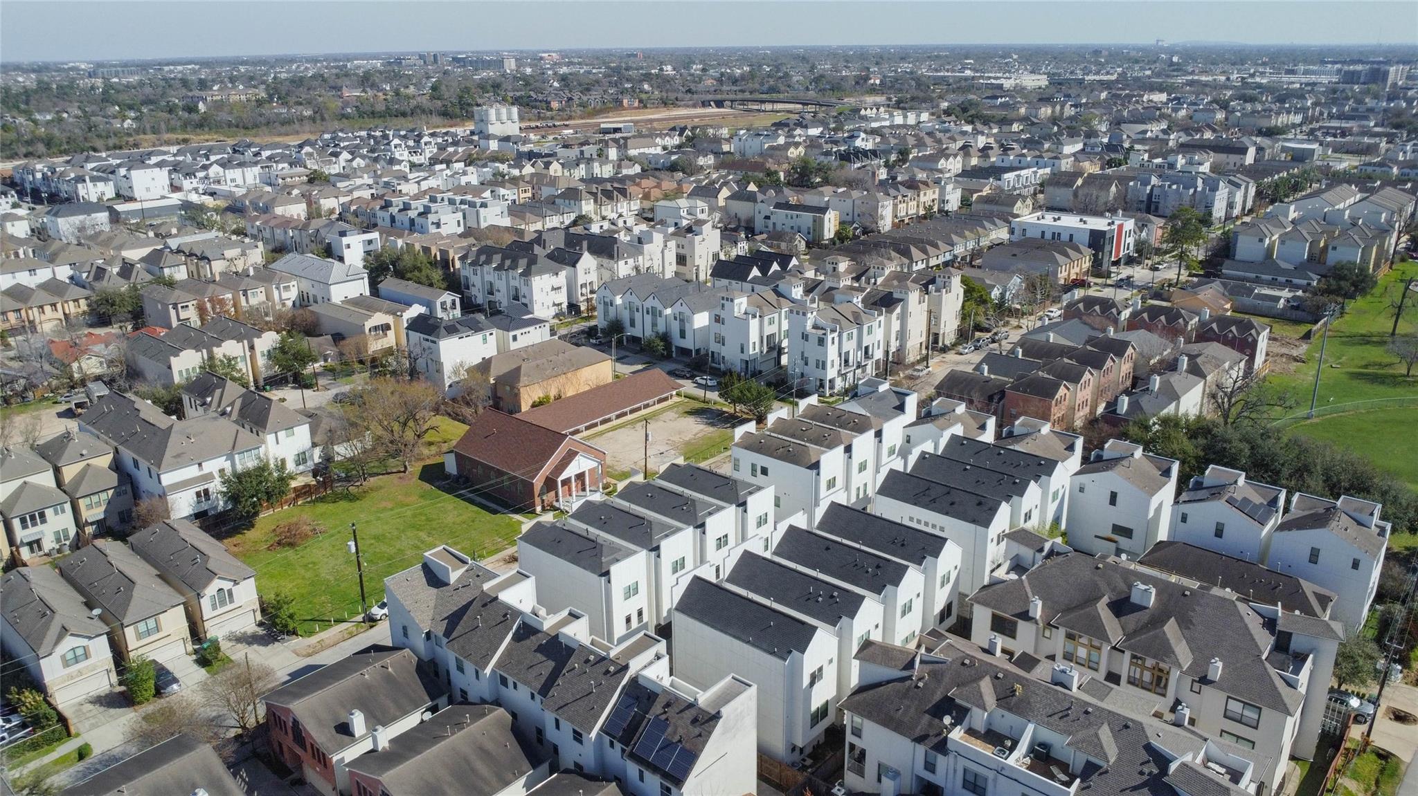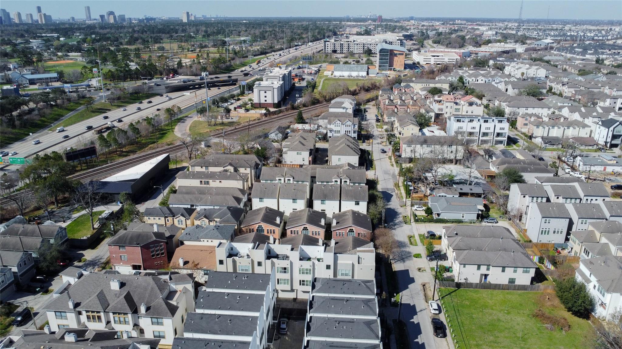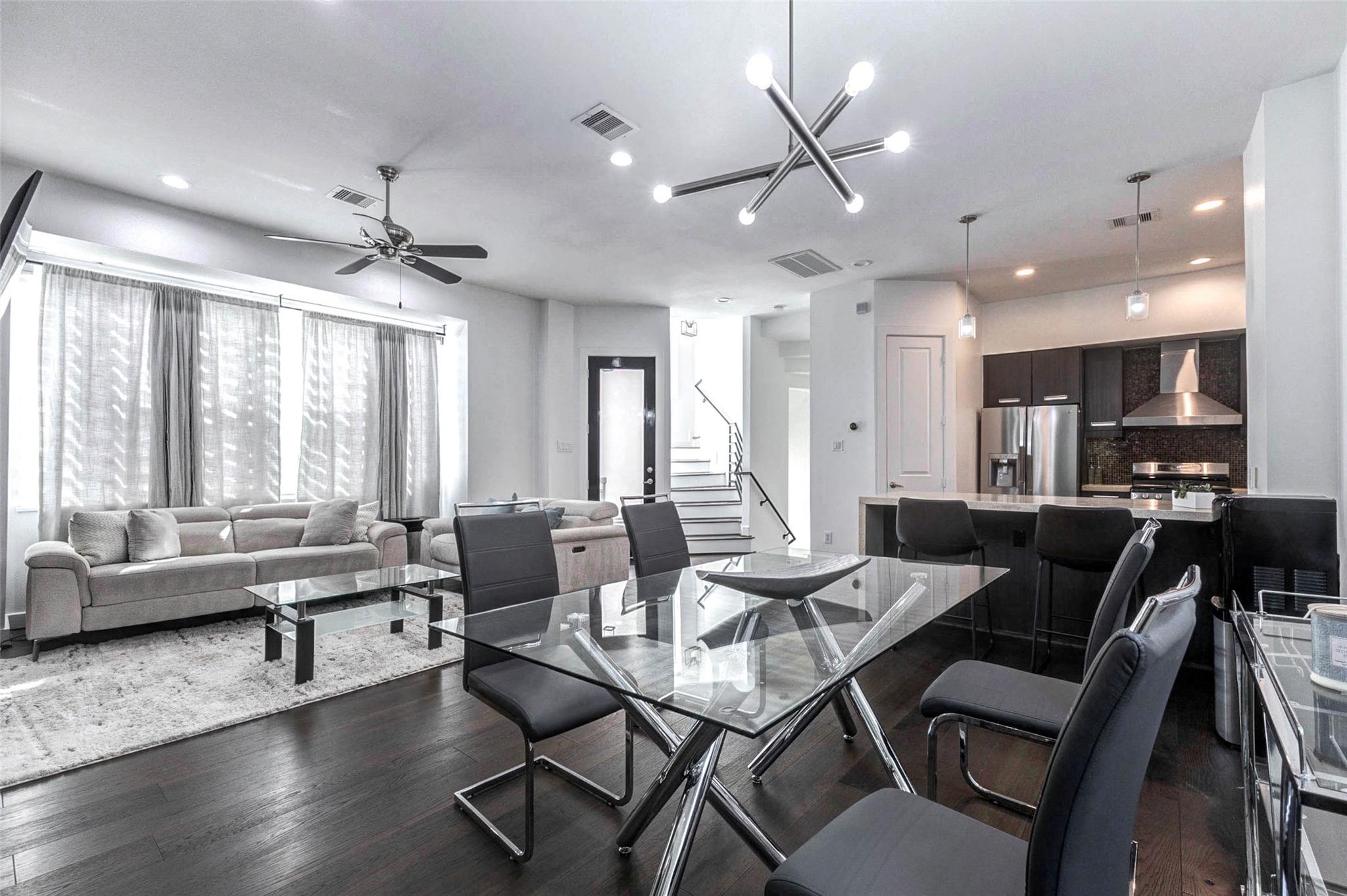 Contemporary 4-story interior corner townhome in the heart of Cottage Grove offering a strong investment opportunity with no HOA fees. This 3-bedroom, 3.5-bath home features 2,006 sq ft of light-filled living space with large windows, new hardwood floors, high ceilings & open-concept second-floor living, dining and kitchen. The kitchen includes quartz countertops, stainless steel appliances, breakfast bar, soft-close cabinetry & under-cabinet lighting. First-floor bedroom with private en-suite bath is ideal for guests or office. Spacious primary suite features walk-in closet, double sinks, jetted tub & separate shower. All bedrooms offer private bath access with modern finishes and travertine tile. Private rooftop terrace provides outdoor living space. Solar PV panels enhance efficiency. 2-car garage plus private parking. New HVAC w/ 4 Ton AC less than 2 years old! Memorial Park, Trails, Railway Heights Market, dining and entertainment with easy access to Downtown & The Galleria.