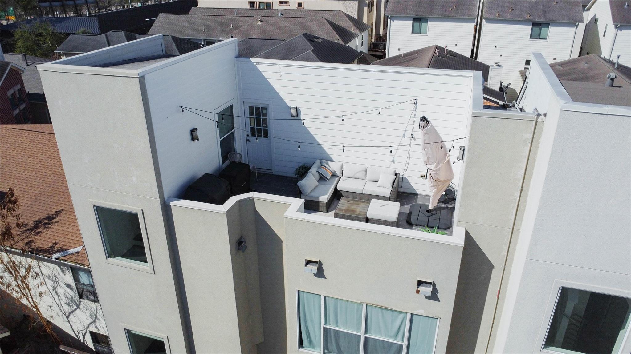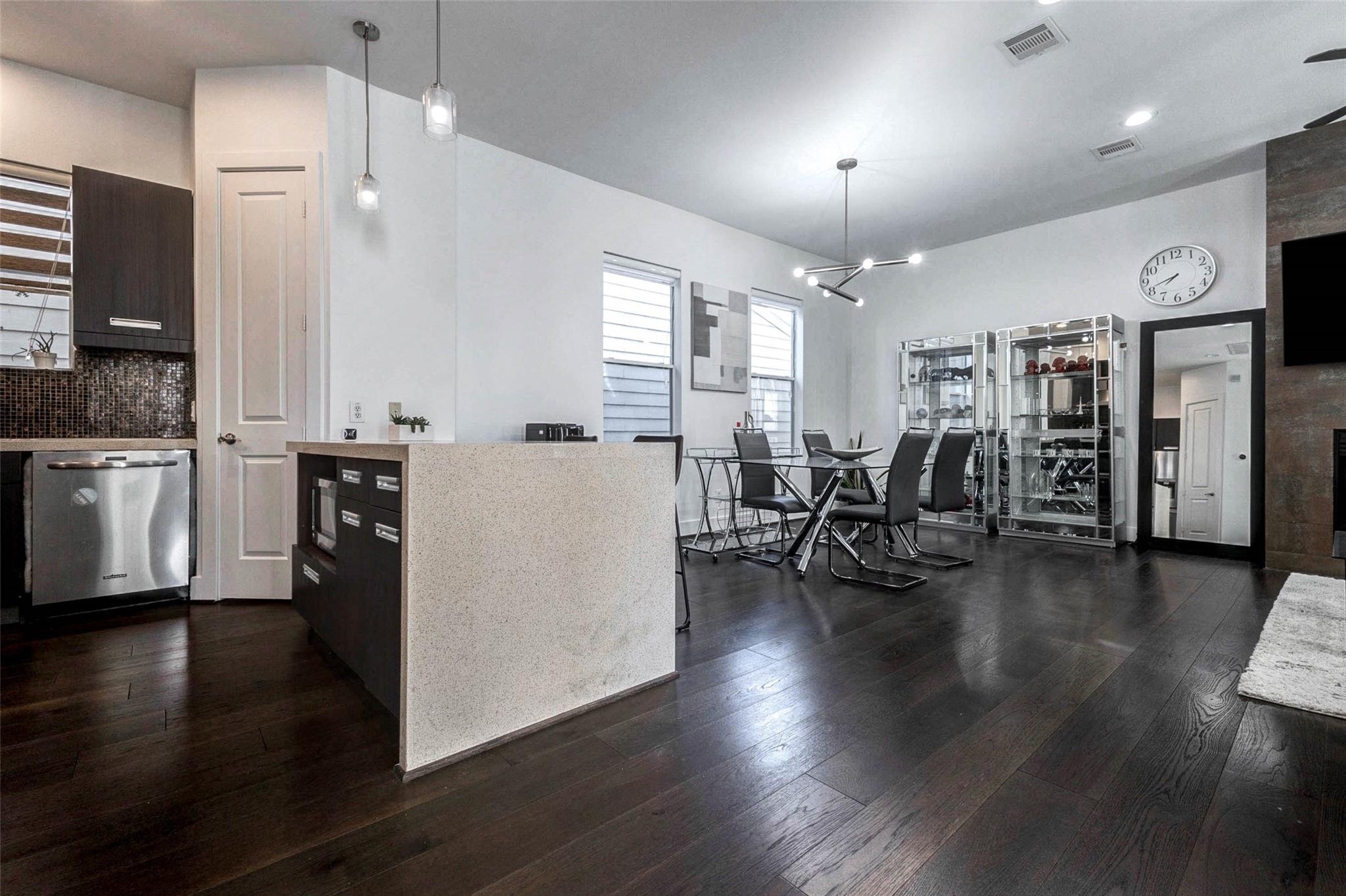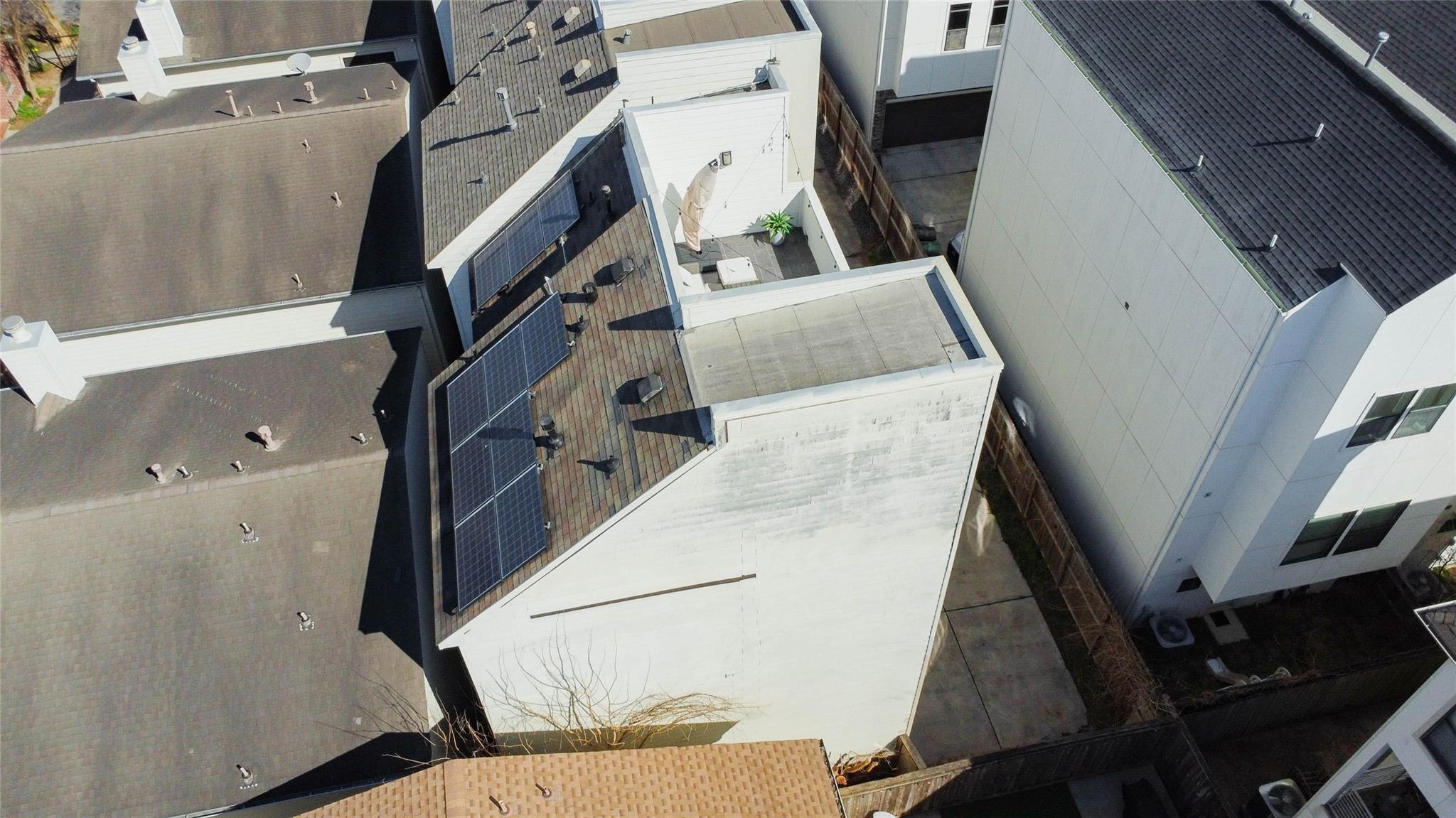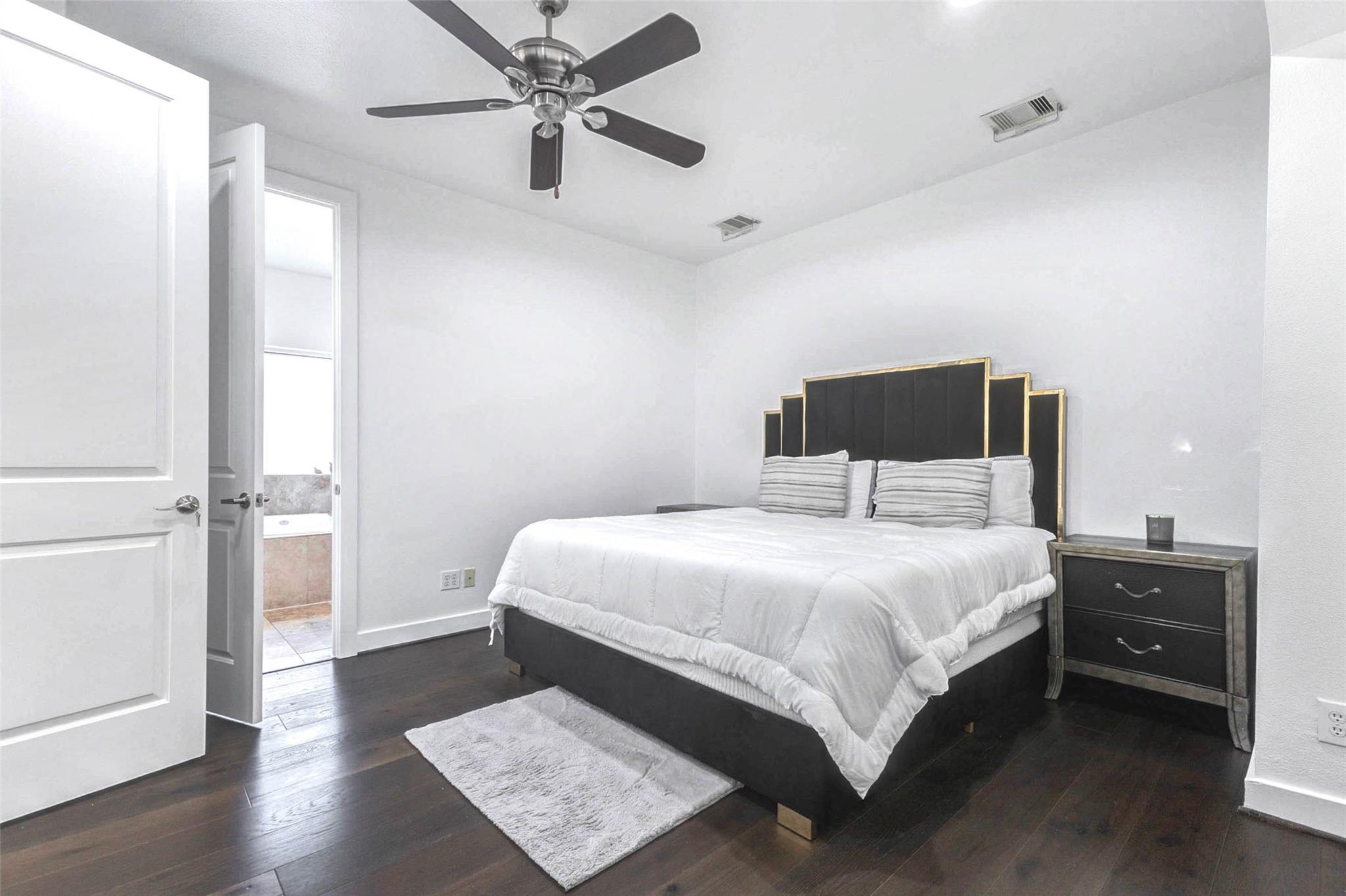 Contemporary 4-story interior corner townhome in the heart of Cottage Grove offering a strong investment opportunity with no HOA fees. This 3-bedroom, 3.5-bath home features 2,006 sq ft of light-filled living space with large windows, new hardwood floors, high ceilings & open-concept second-floor living, dining and kitchen. The kitchen includes quartz countertops, stainless steel appliances, breakfast bar, soft-close cabinetry & under-cabinet lighting. First-floor bedroom with private en-suite bath is ideal for guests or office. Spacious primary suite features walk-in closet, double sinks, jetted tub & separate shower. All bedrooms offer private bath access with modern finishes and travertine tile. Private rooftop terrace provides outdoor living space. Solar PV panels enhance efficiency. 2-car garage plus private parking. New HVAC w/ 4 Ton AC less than 2 years old! Memorial Park, Trails, Railway Heights Market, dining and entertainment with easy access to Downtown & The Galleria.