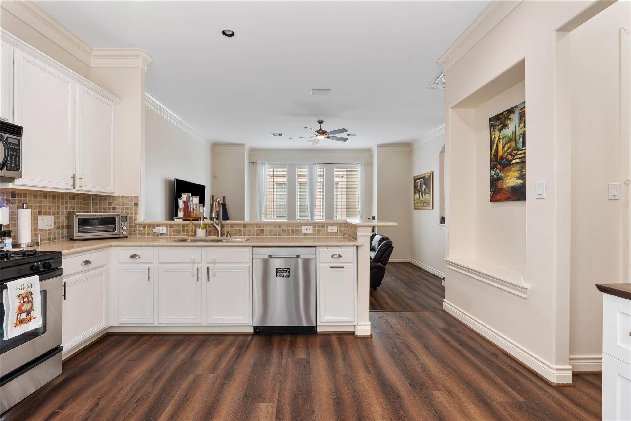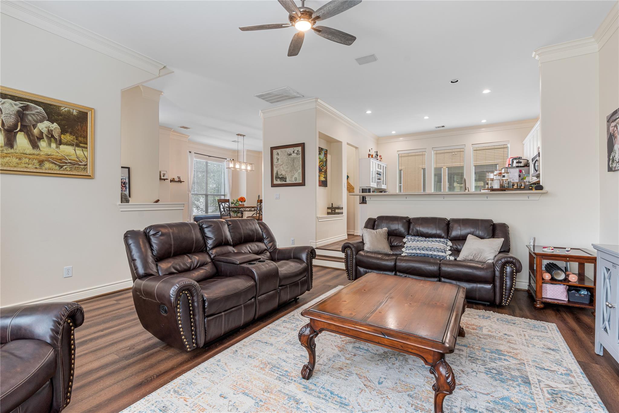 InteriorFireplace:1Floors:Engineered WoodBathroom Description:Primary Bath: Double SinksBedroom Desc:1 Bedroom Down - Not Primary BR,En-Suite Bath,Primary Bed - 3rd FloorRoom Description:1 Living Area,Formal Dining,Living Area - 2nd FloorHeating:Central ElectricCooling:Central GasDishwasher:YesDisposal:YesMicrowave:YesRange:Electric RangeOven:Freestanding OvenAppliances:Electric Dryer ConnectionInterior:Alarm System - Owned,Crown Molding,Fire/Smoke Alarm,High Ceiling,Split Level