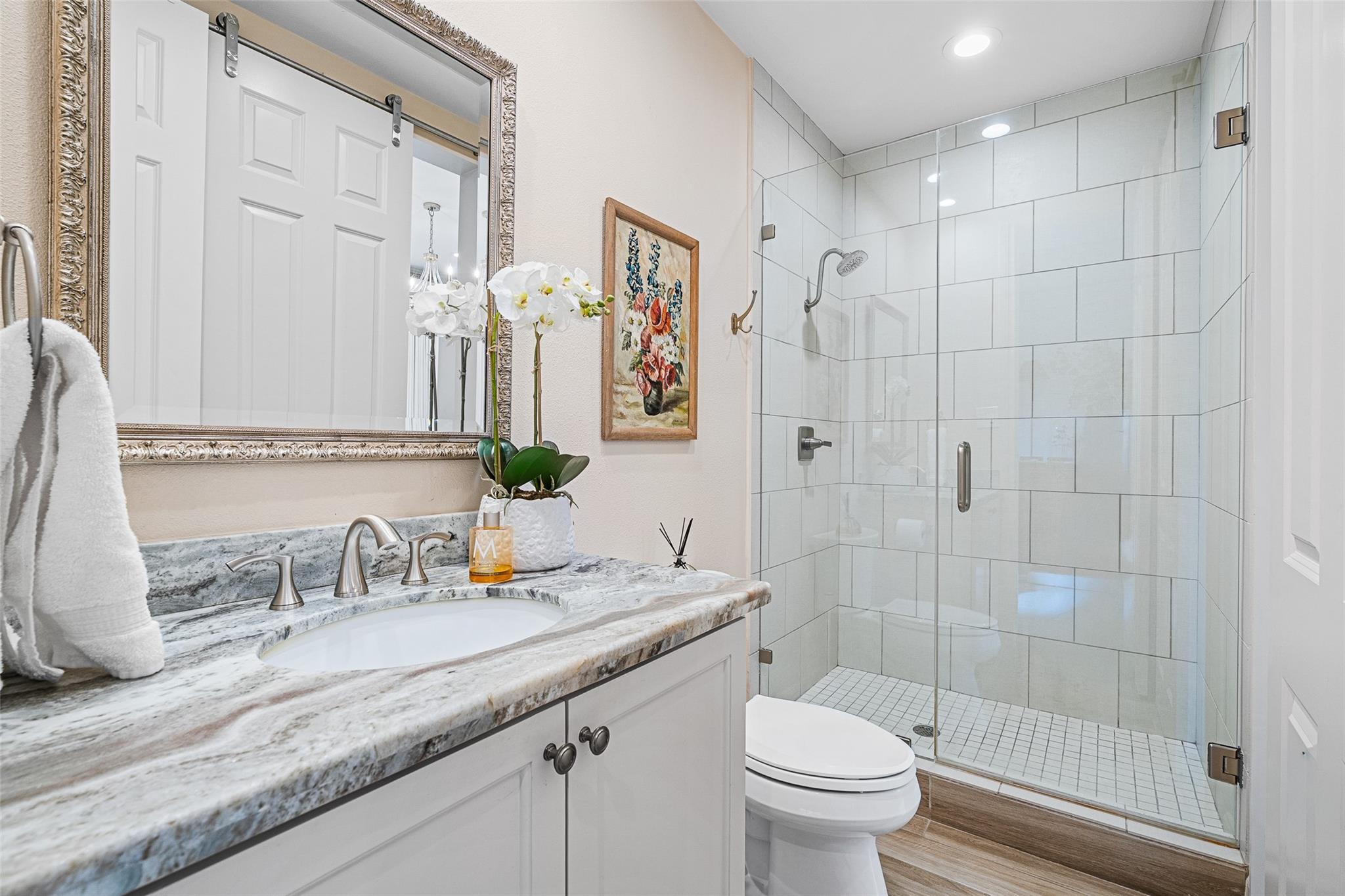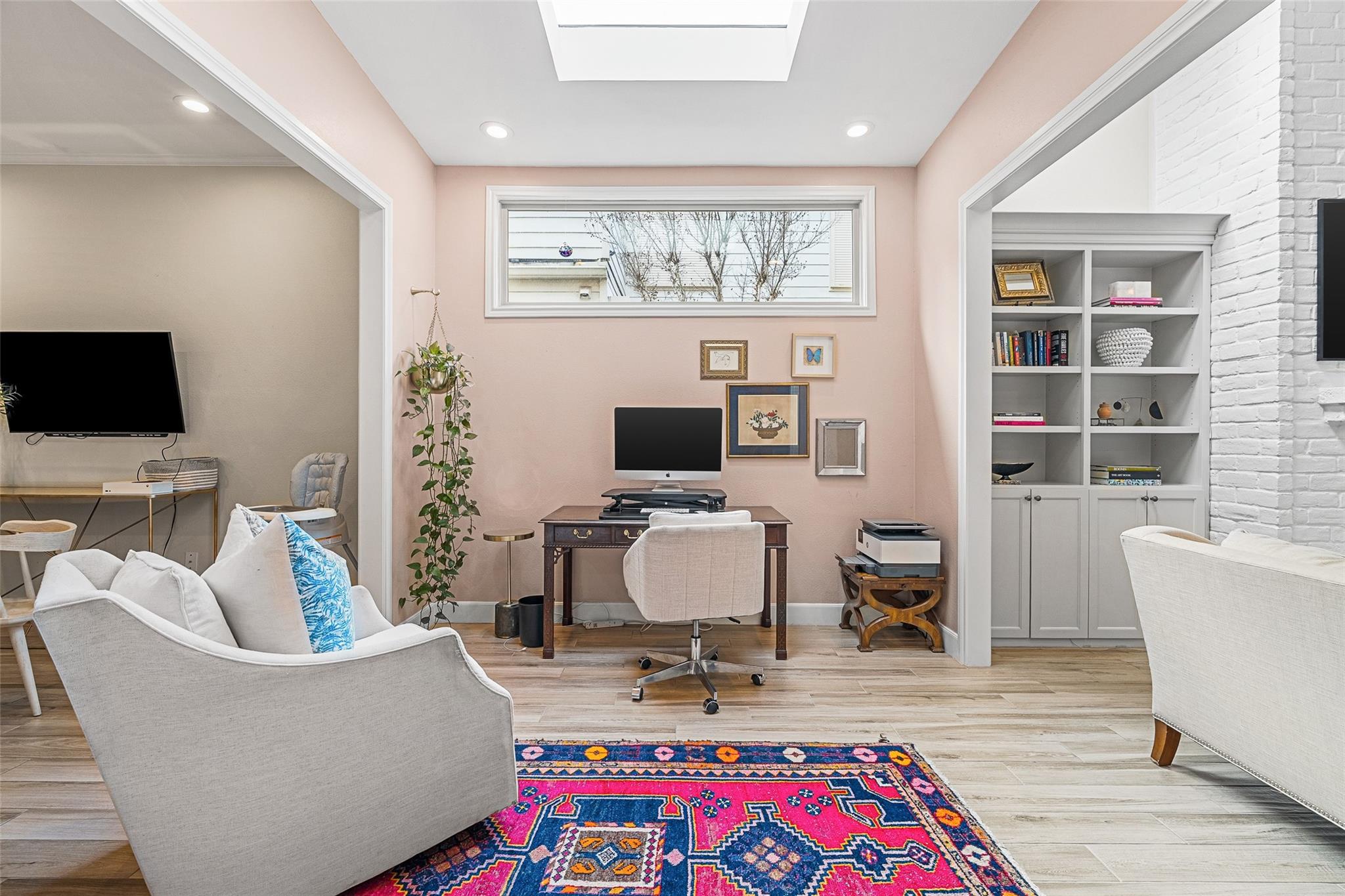This gorgeous townhome is located in a desirable gated community and offers a two car garage conveniently situated at the rear of the home. The living room features ultra high ceilings, a cozy gas log fireplace, and beautiful wood look tile flooring, creating a dramatic yet welcoming space. A versatile room on the first floor provides flexible use as a nursery, guest bedroom, or home office to suit your needs. The nearby dining area showcases stylish crown molding and recessed lighting, perfect for entertaining. The kitchen is equipped with stainless steel appliances, white cabinetry, and a large island ideal for gatherings, while the breakfast nook provides easy access to the garage. The spacious primary bedroom boasts high ceilings and a private balcony, offering a peaceful retreat to relax and unwind. Ideally situated you have quick access to top dining, entertainment, shopping, and major highways, making commuting and enjoying the city’s vibrant lifestyle effortless.Schedule toda