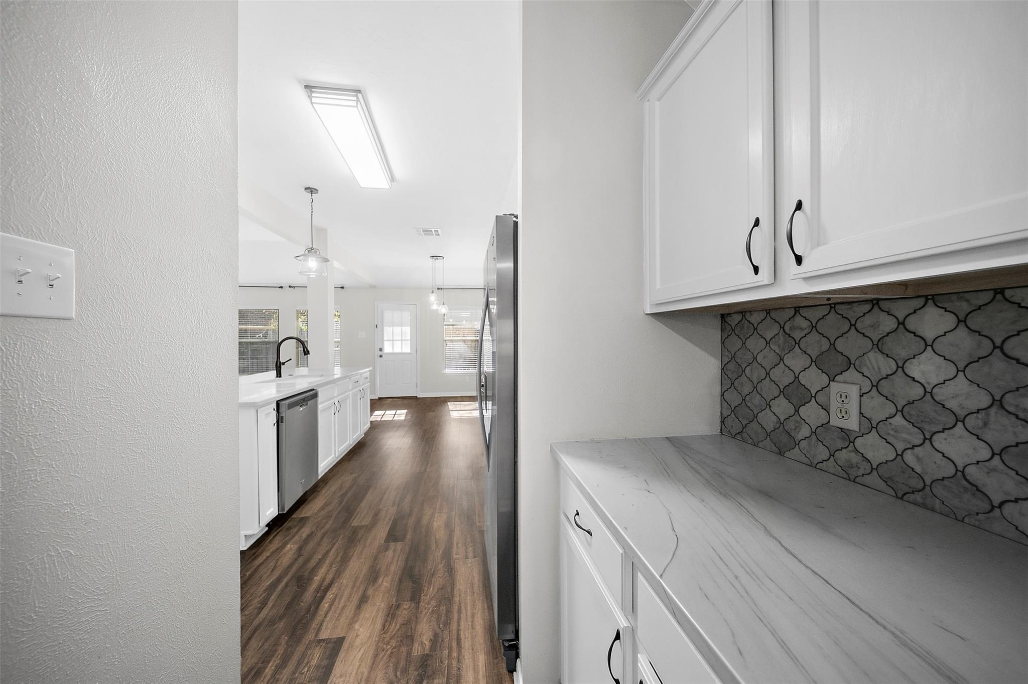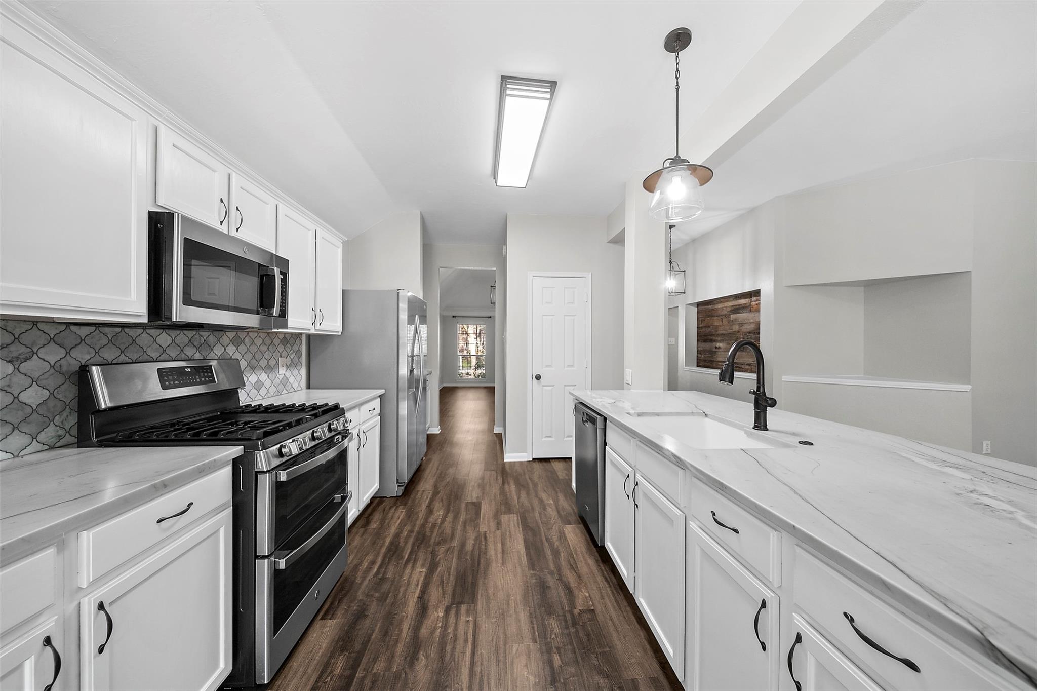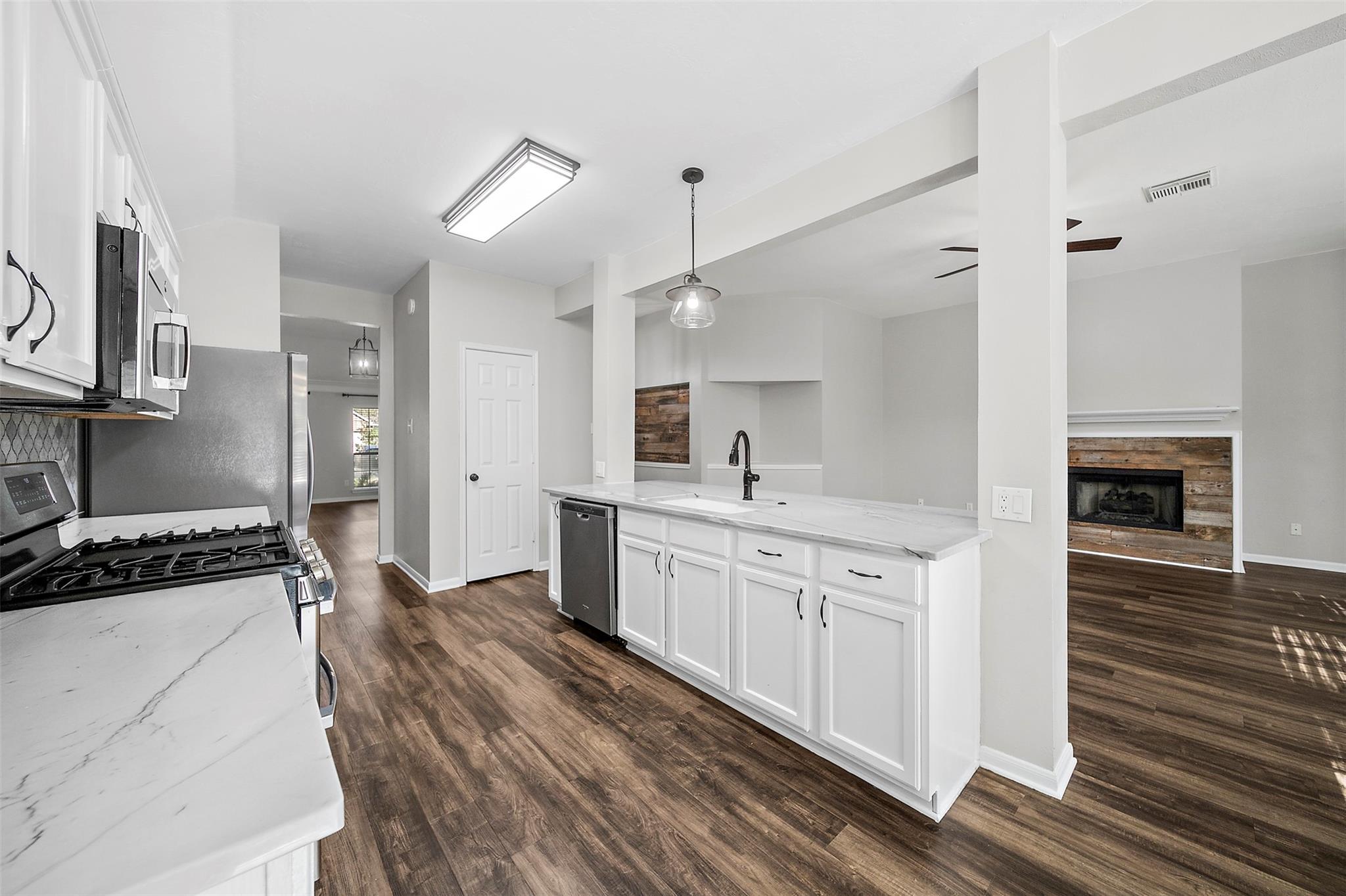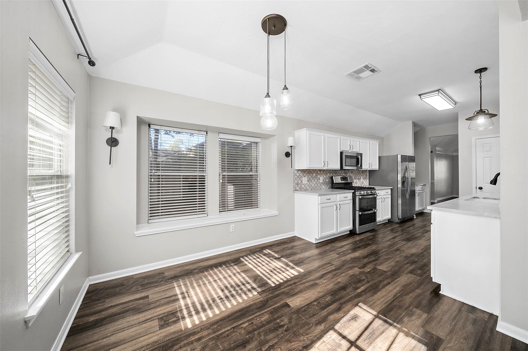/monthThis move-in-ready! This beautifully updated residence, features a large, welcoming front porch, perfect for morning coffee or evening relaxation. Upon entry, you’ll find a versatile room perfect for an office or bedroom to the left, with privacy double doors and formal living and dining areas to the right. The first hall leads to two secondary bedrooms, a full bath and the utility room, with easy access to the garage. Straight ahead, the foyer opens into an expansive, open-concept living area showcasing soaring ceilings, a cozy fireplace and an open kitchen with large quartz, leather finished counter tops w a large walk-in pantry. The kitchen also host new stainless steel appliances, with a double country drop-in sink and a coffee bar. The breakfast room adjoins the kitchen and has a double window seat for added charm. The primary suite is tucked just off the family room and features designer wall treatment with a large onsite bath and large closet.