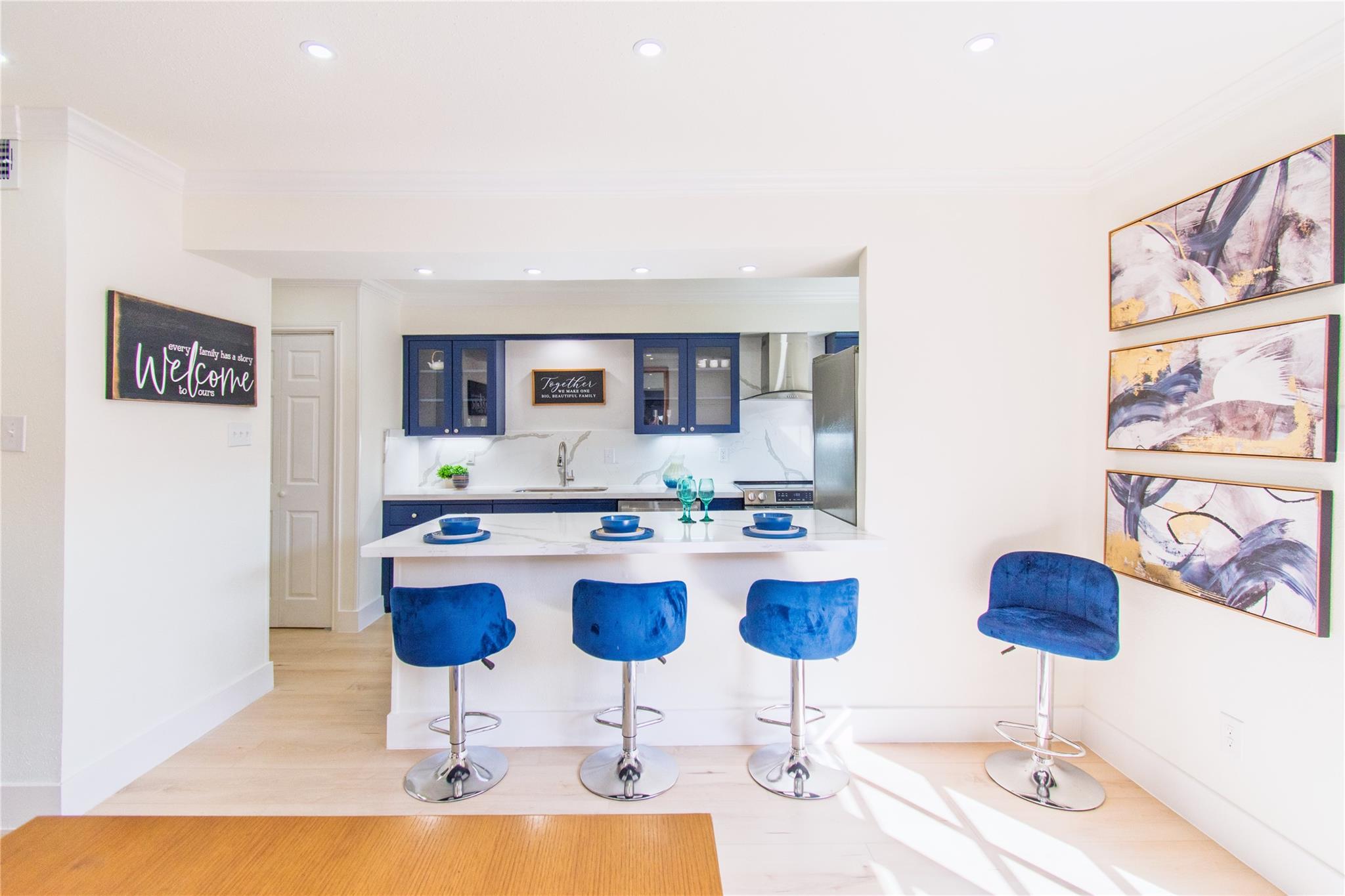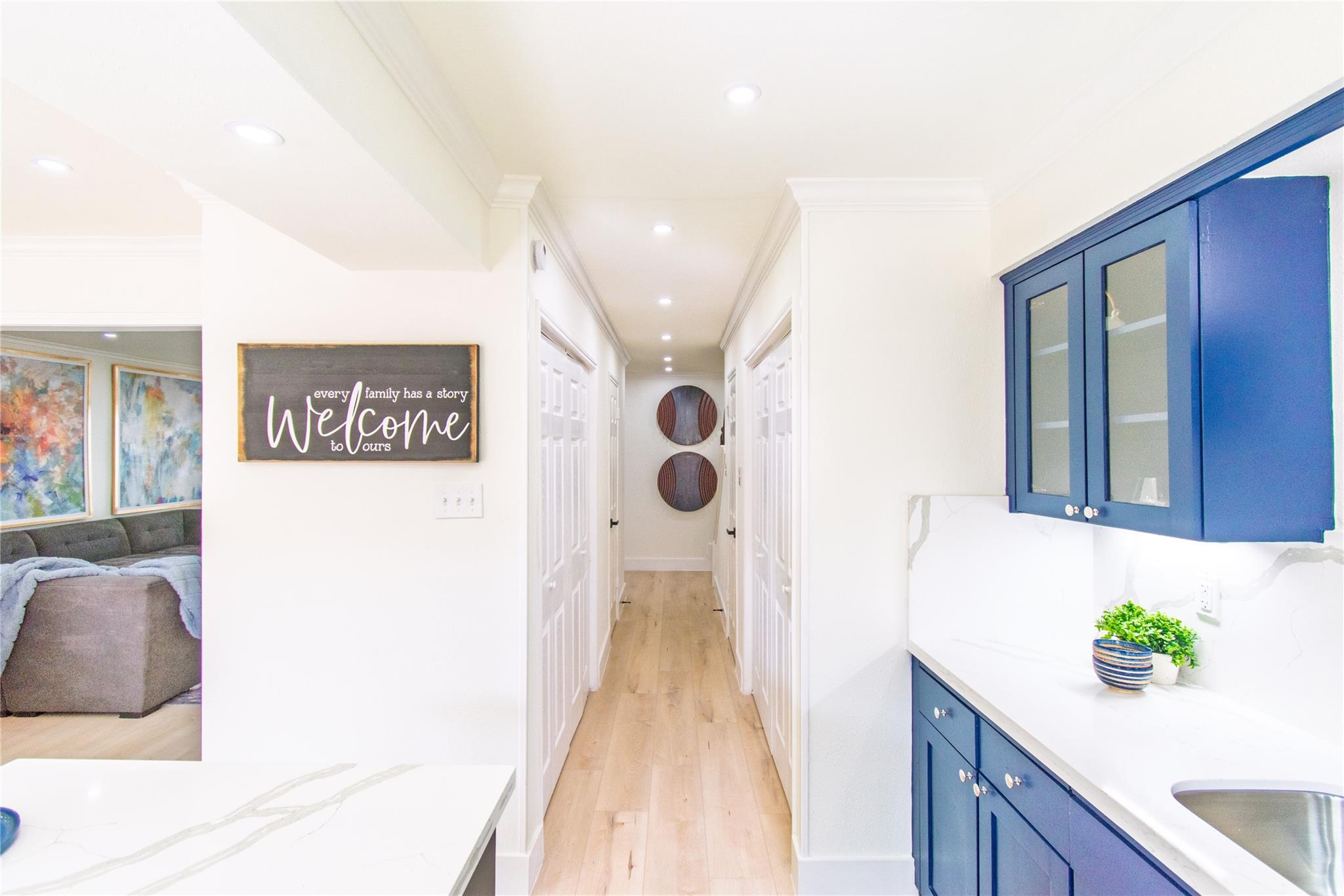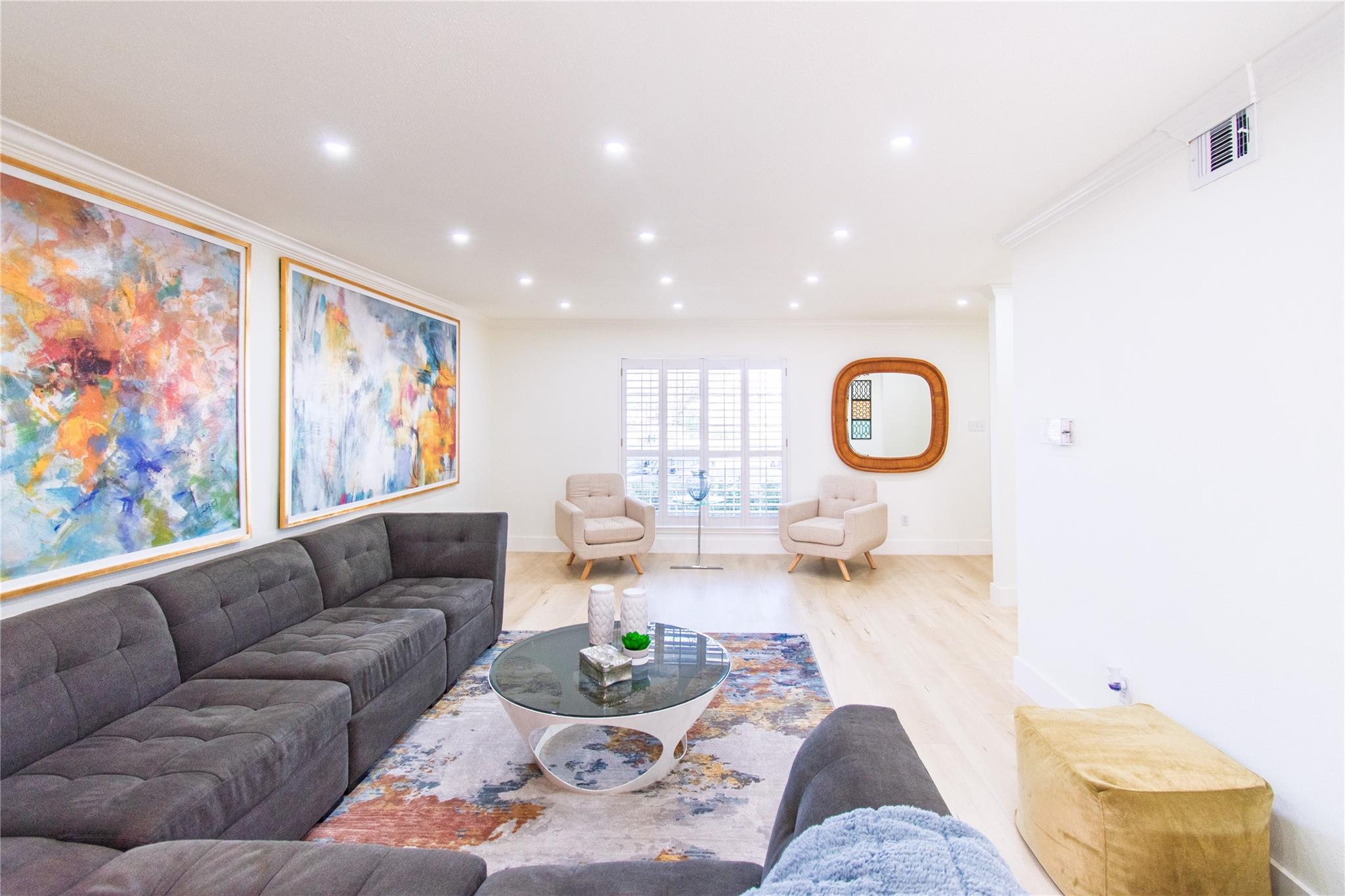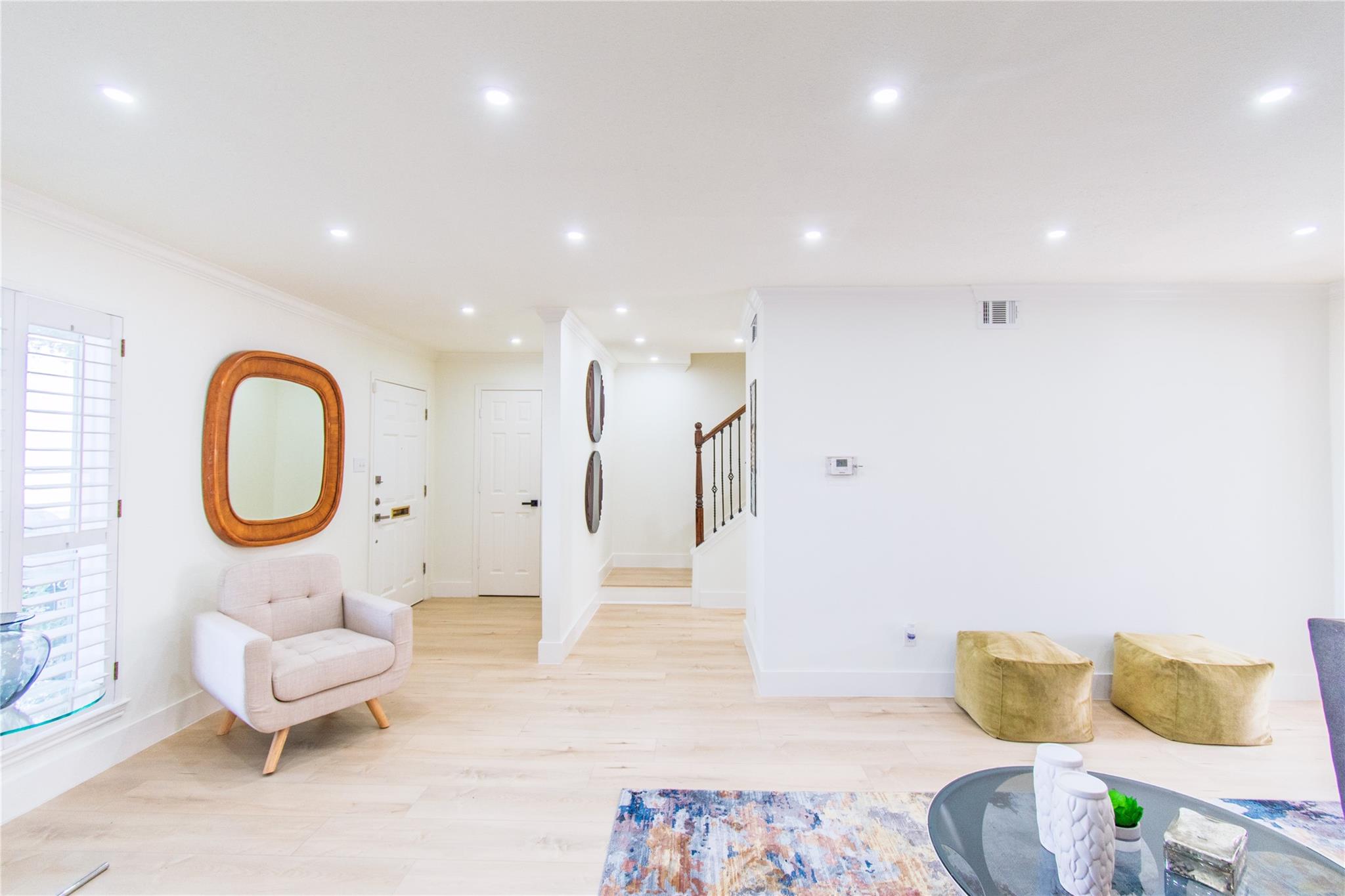 Step inside and experience refined elegance as exceptional craftsmanship unfolds throughout this beautifully reimagined residence. Wide-plank luxury flooring leads you through bright, expansive living spaces enhanced by brand-new Low-E windows and soft recessed lighting that creates a warm, inviting glow. The gourmet kitchen serves as a stunning focal point, showcasing sleek quartz countertops, a dramatic full-height backsplash, premium stainless steel appliances, and an elegant peninsula ideal for entertaining. Spa-inspired bathrooms provide a serene retreat with designer finishes and modern fixtures, while fresh bespoke paint tones and striking iron stair balusters add architectural character. Recent foundation enhancements offer peace of mind, and newly installed ceiling fans ensure year-round comfort. An enclosed patio creates a private indoor-outdoor sanctuary, delivering a perfect blend of luxury, comfort, and timeless sophistication for today’s discerning homeowners.