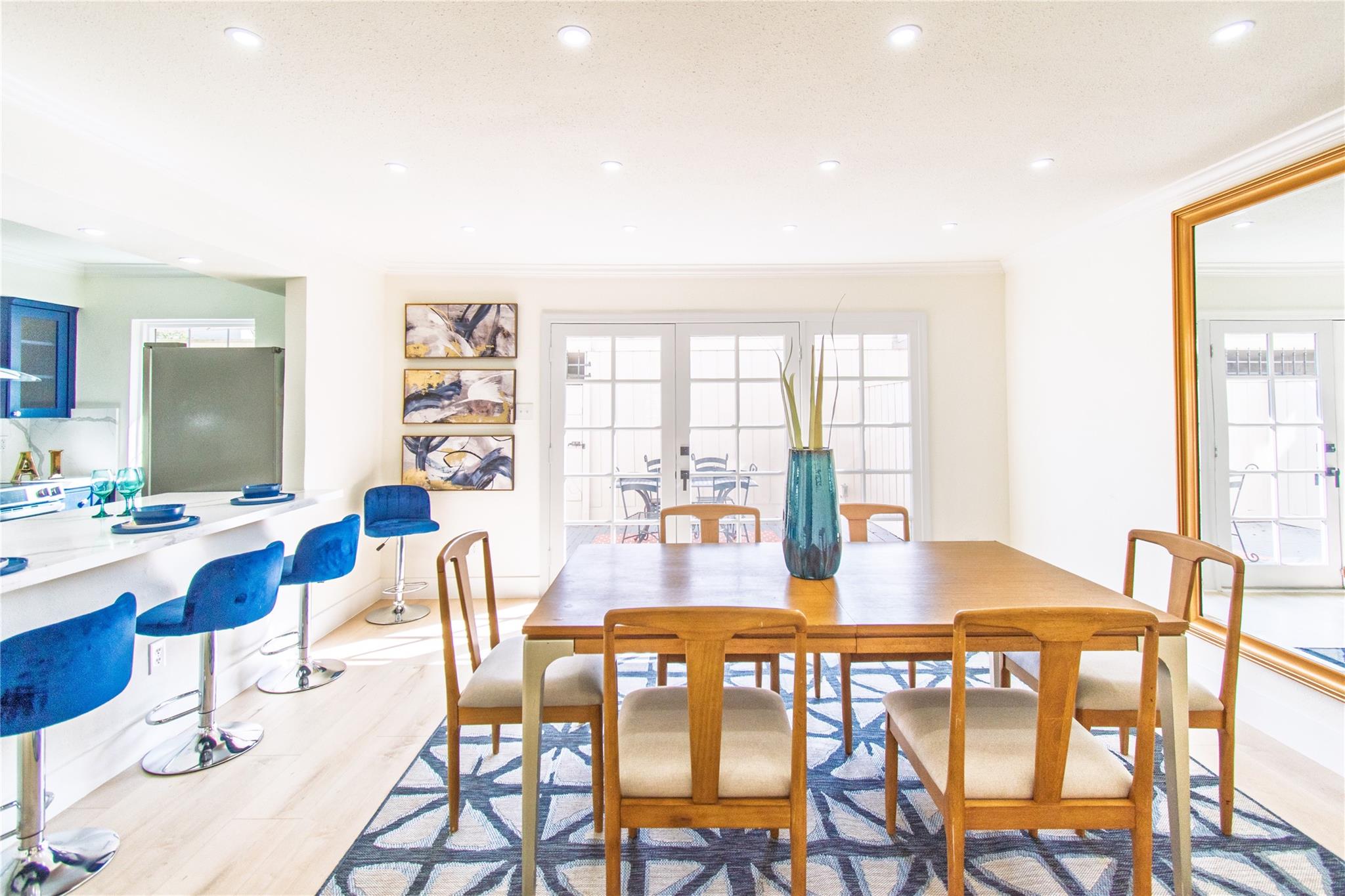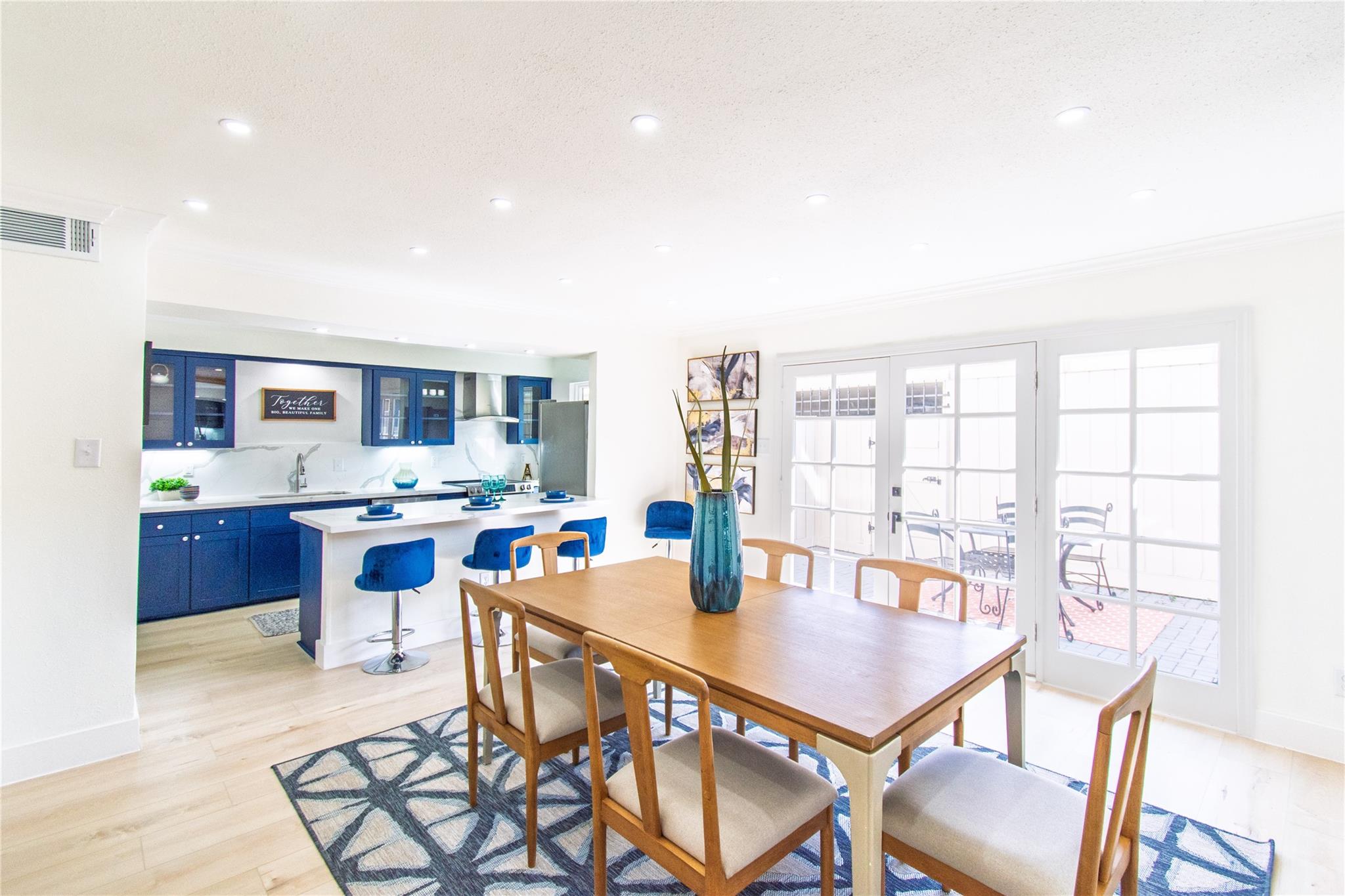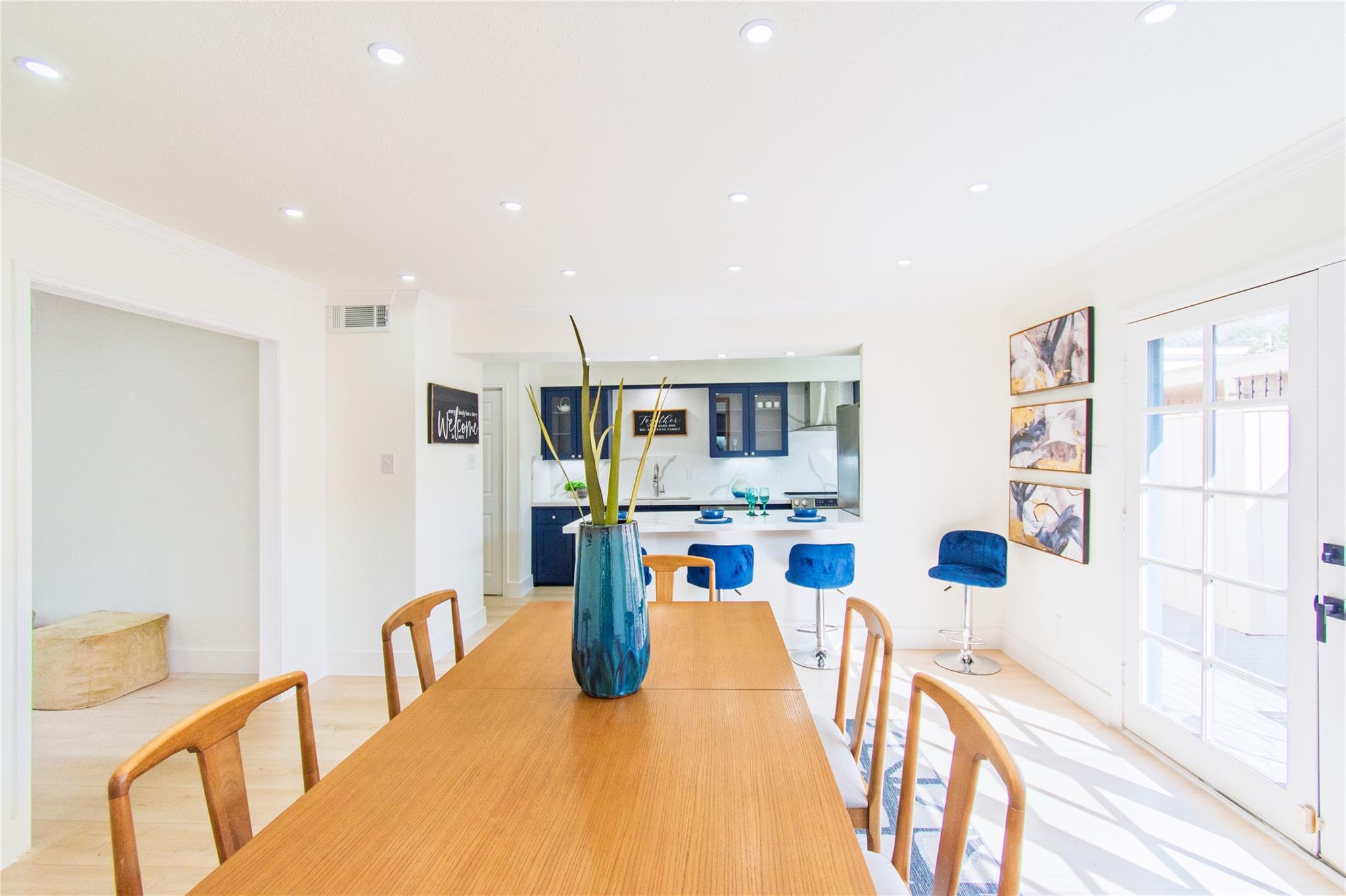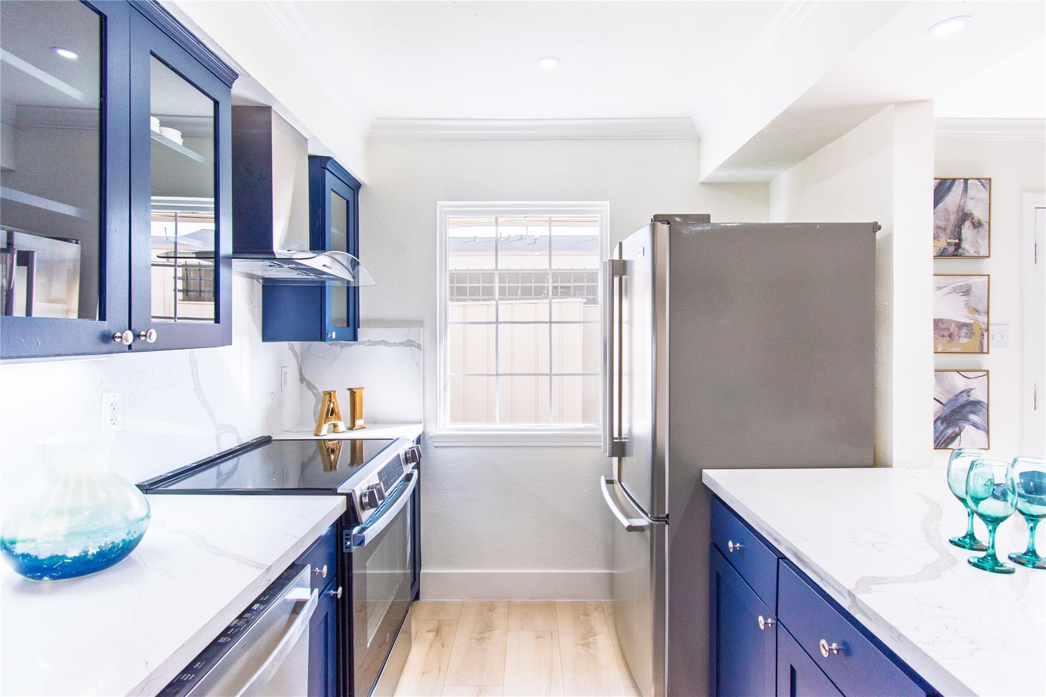Step inside and experience refined elegance as exceptional craftsmanship unfolds throughout this beautifully reimagined residence. Wide-plank luxury flooring leads you through bright, expansive living spaces enhanced by brand-new Low-E windows and soft recessed lighting that creates a warm, inviting glow. The gourmet kitchen serves as a stunning focal point, showcasing sleek quartz countertops, a dramatic full-height backsplash, premium stainless steel appliances, and an elegant peninsula ideal for entertaining. Spa-inspired bathrooms provide a serene retreat with designer finishes and modern fixtures, while fresh bespoke paint tones and striking iron stair balusters add architectural character. Recent foundation enhancements offer peace of mind, and newly installed ceiling fans ensure year-round comfort. An enclosed patio creates a private indoor-outdoor sanctuary, delivering a perfect blend of luxury, comfort, and timeless sophistication for today’s discerning homeowners.