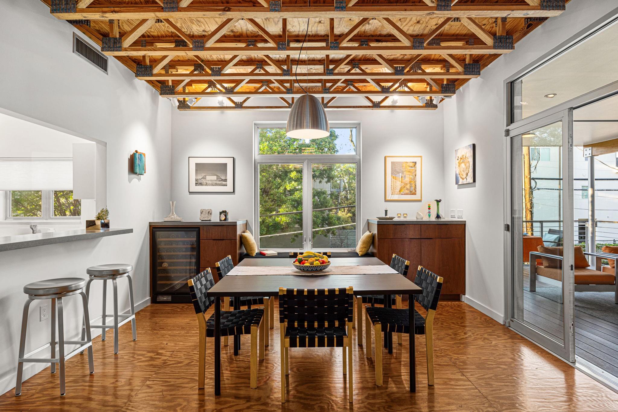 OPEN HOUSE SUN 1-5PM! Award-winning architect-designed live-work-play residence in the heart of Rice Military, minutes from Memorial Park. 2 bedroom (plus optional 3rd) + additional flex spaces on all 3 levels - flexibility for 1-2 offices, gym, music or hobby areas. Created for those who value design, creativity, and elevated everyday living. This one-of-a-kind home blends industrial minimalism with intentional craftsmanship and a focus on durable, sustainable construction materials. The main level is built for connection and entertaining, featuring seamless indoor-outdoor flow anchored by a 307 SF covered loggia—offering year-round extension of living and entertaining space. The top-floor primary suite is built to unwind, delivering a true spa-inspired retreat. No HOA. Off street parking for 4 vehicles. A rare, published home in the heart of Houston for those that value architecturally unique yet functional design, and quality over flash. Welcome home!