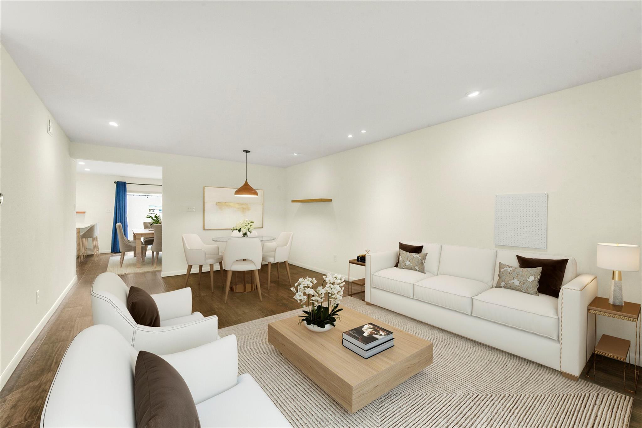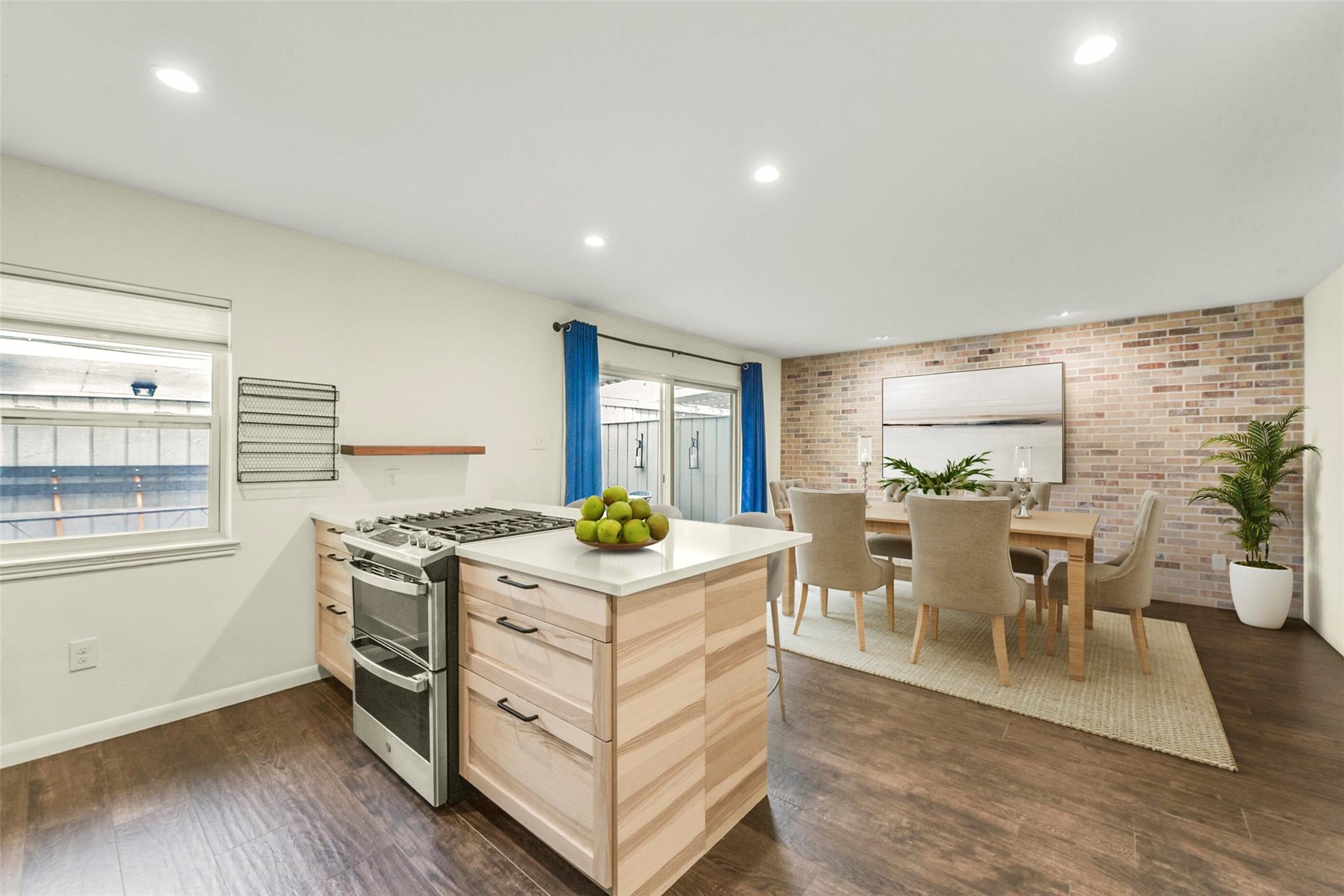 Welcome to this beautifully updated condo located in the community of Tanglewest. This charming home is move in ready with wood and tile flooring throughout. Kitchen includes quartz countertops, gas range, custom cabinetry, and a brick accent wall. Spacious living and dining areas with great natural light. Large primary suite with updated bathroom. Secondary bathrooms have also been updated. Newer double-pane windows enhance energy efficiency and comfort. Private covered patio with brick pavers and space for planters. Direct access to 1-car garage plus additional covered carport. Community amenities include pool, park, and clubhouse. Convenient location near shopping, dining, entertainment and major roadways. Make your appointment today!