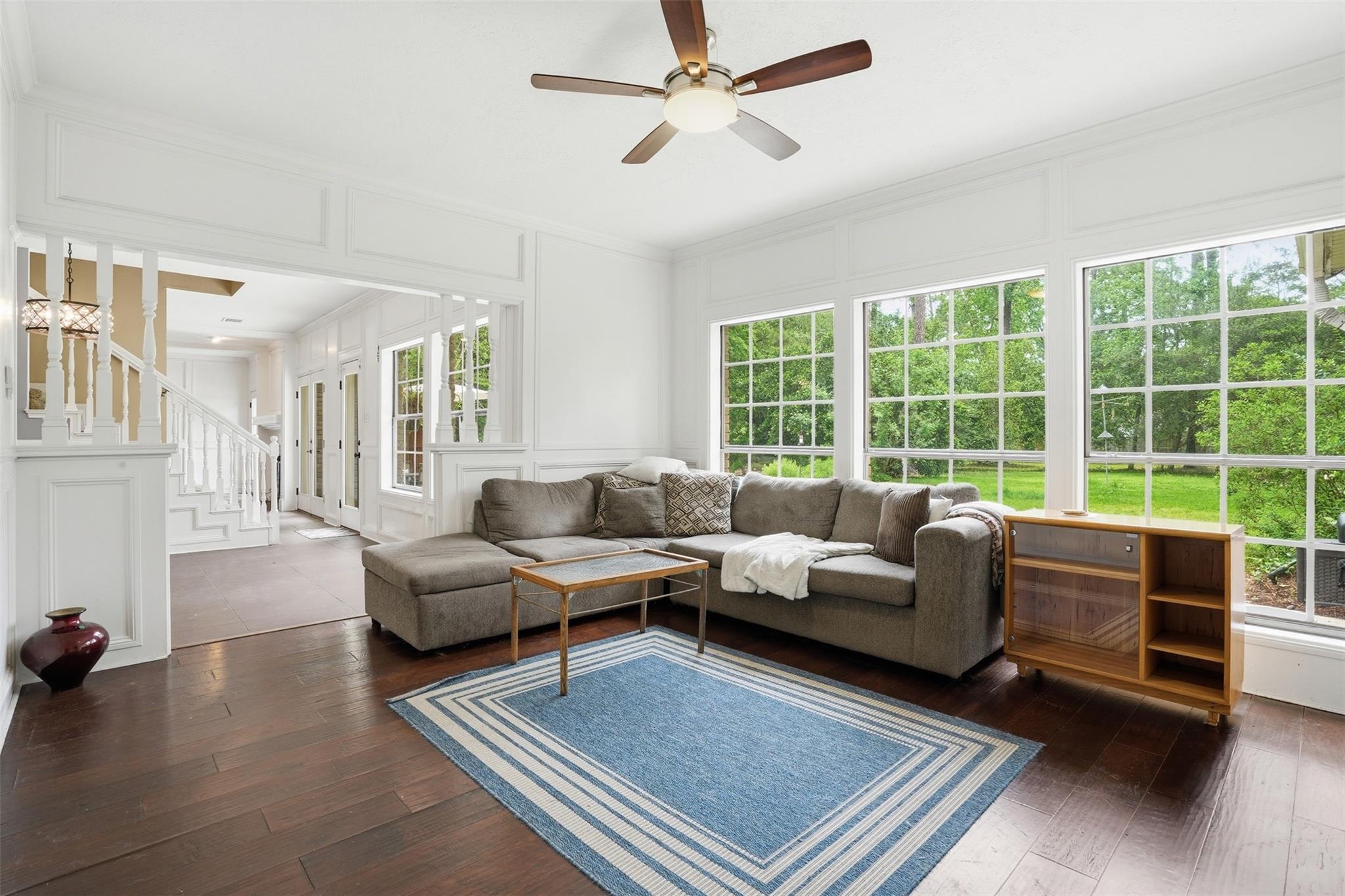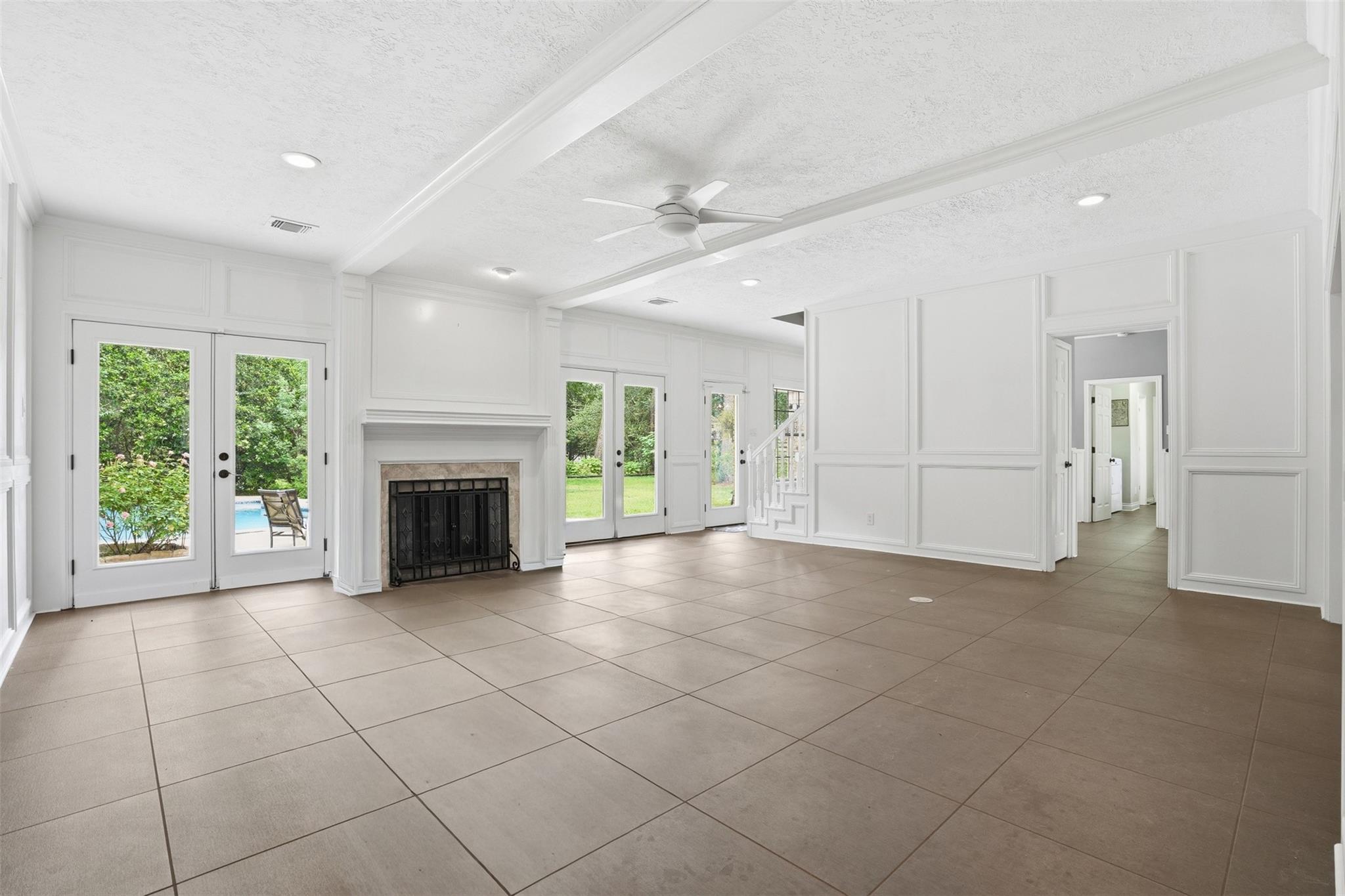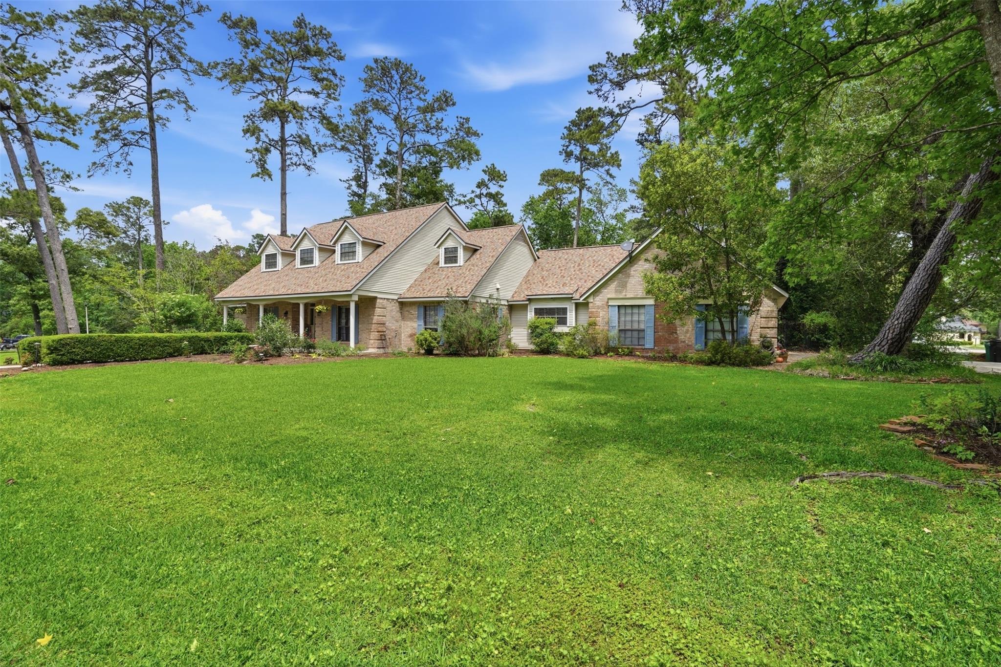 Spanning almost 3/4 acre across three combined lots, this rare River Plantation property offers exceptional space, privacy, and flexibility rarely found in the neighborhood. This 4,274 sq ft residence features 5 bedrooms, 3 full baths, and 1 half bath with a thoughtfully designed layout. The main level includes two bedrooms, two full baths, formal and informal living spaces, and a dining area. Upstairs offers three bedrooms, a full bath, and a spacious flex room ideal for a game room, media room, or additional living space. The private backyard is designed for entertaining with a heated pool, mature landscaping, and a three-person sauna. Three-car garage with built-in dog wash. Roof replaced approximately 6 months ago. Located on a quiet corner lot, high and dry, never flooded, with convenient access to I-45 and The Woodlands.