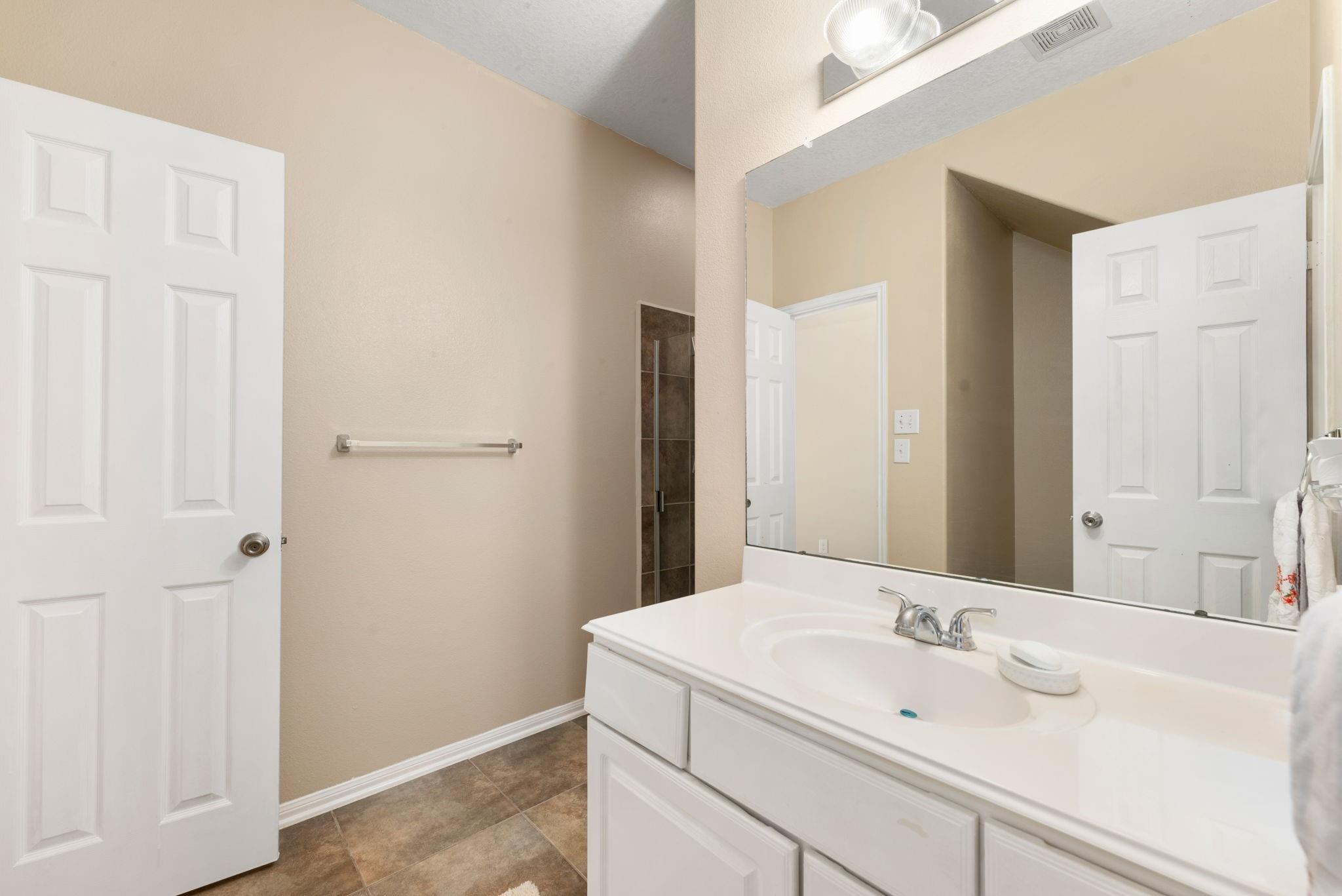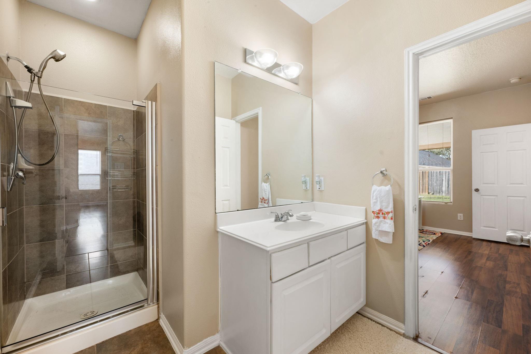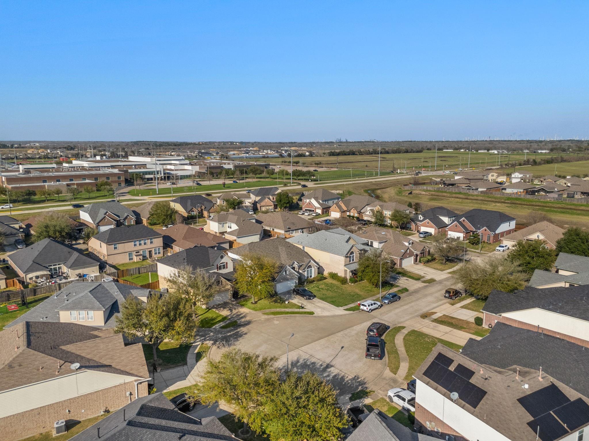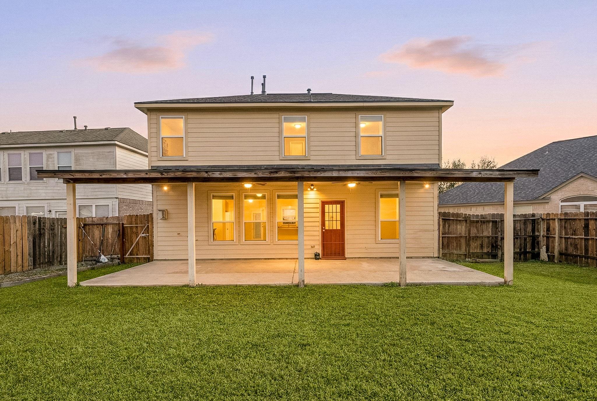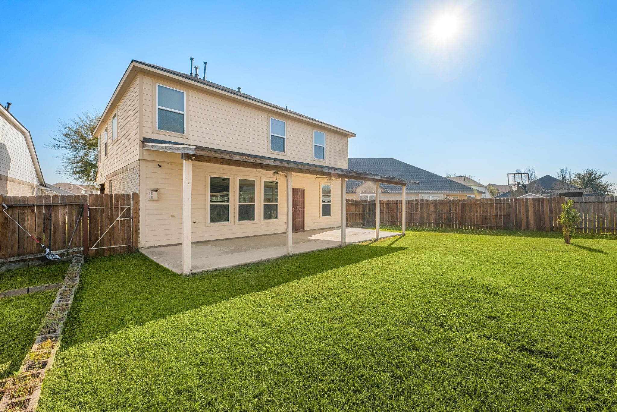 Welcome to this beautiful 4-bedroom home located in Springfield Estates on a peaceful cul-de-sac and zoned to the outstanding Goose Creek ISD. Upon entering, you notice the desirable open floor plan that allows for flexibility.The warm and welcoming kitchen is furnished with Quartz countertops, 42" cabinets,breakfast bar tile backsplash. The breakfast room flows into the spacious Den which showcases a corner fireplace with mantle with windows that allow an abundance of natural light to flow into the home and room. The bedroom located on the first floor has its own en-suite bath with seperate shower which is accented with lovely tile.An oversized Primary bedroom located on the second floor has high ceilings,built-in,walk in closet. The en-suite bath featuring dual sinks,soaking tub,seperate shower & quartz countertops. The Gameroom is located upstairs as an added bonus for all to enjoy. The large size fenced backyard is wonderful for events and features a covered patio that awaits you.