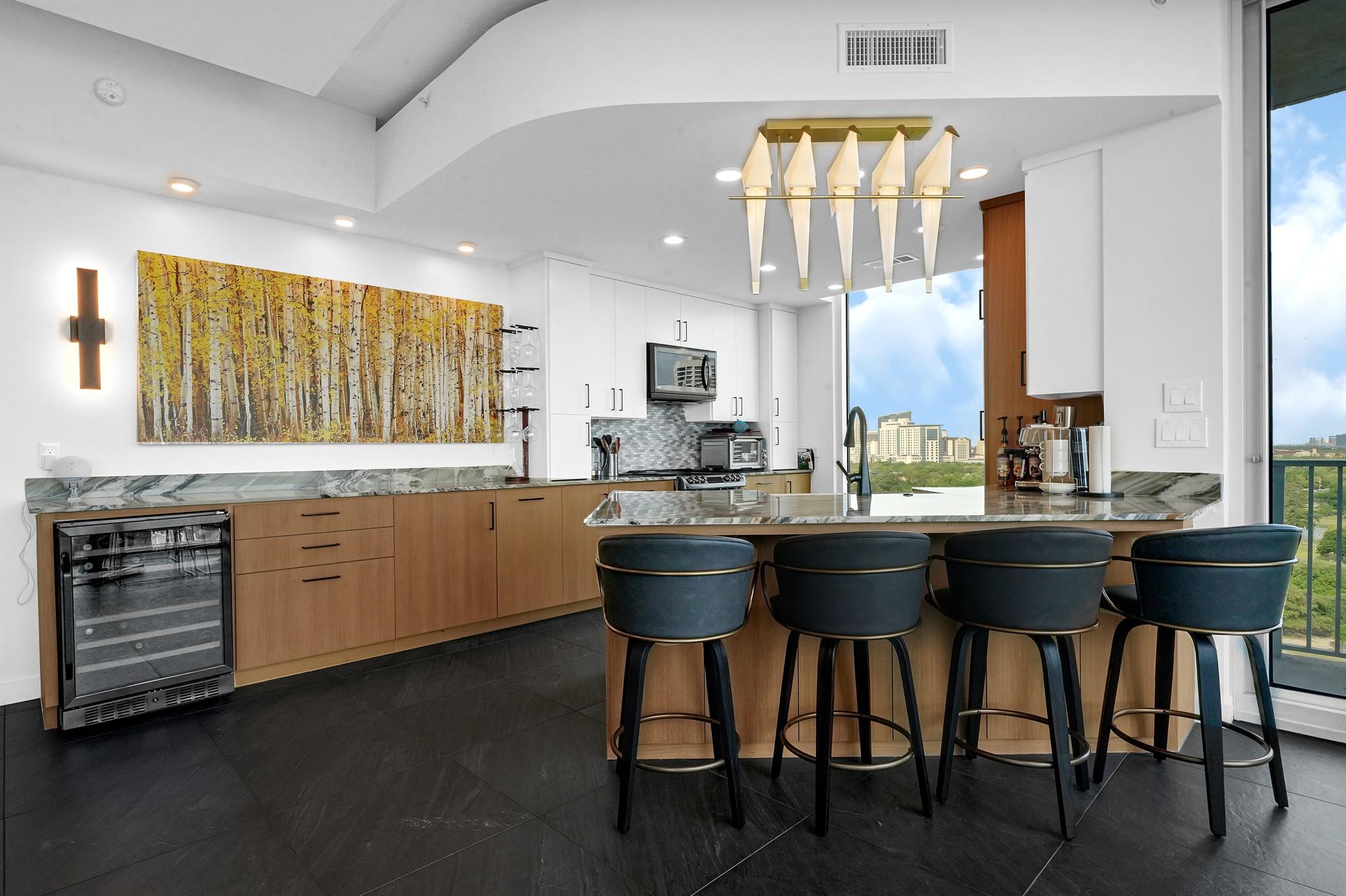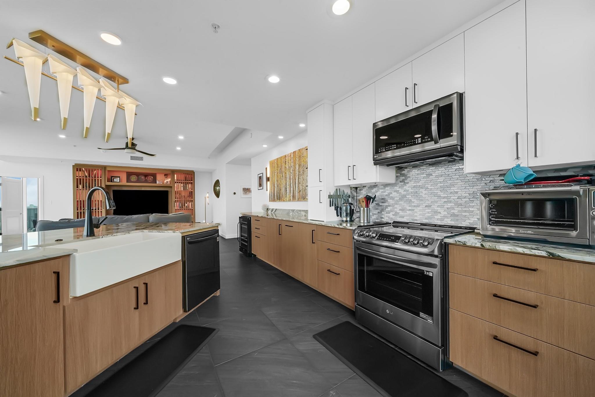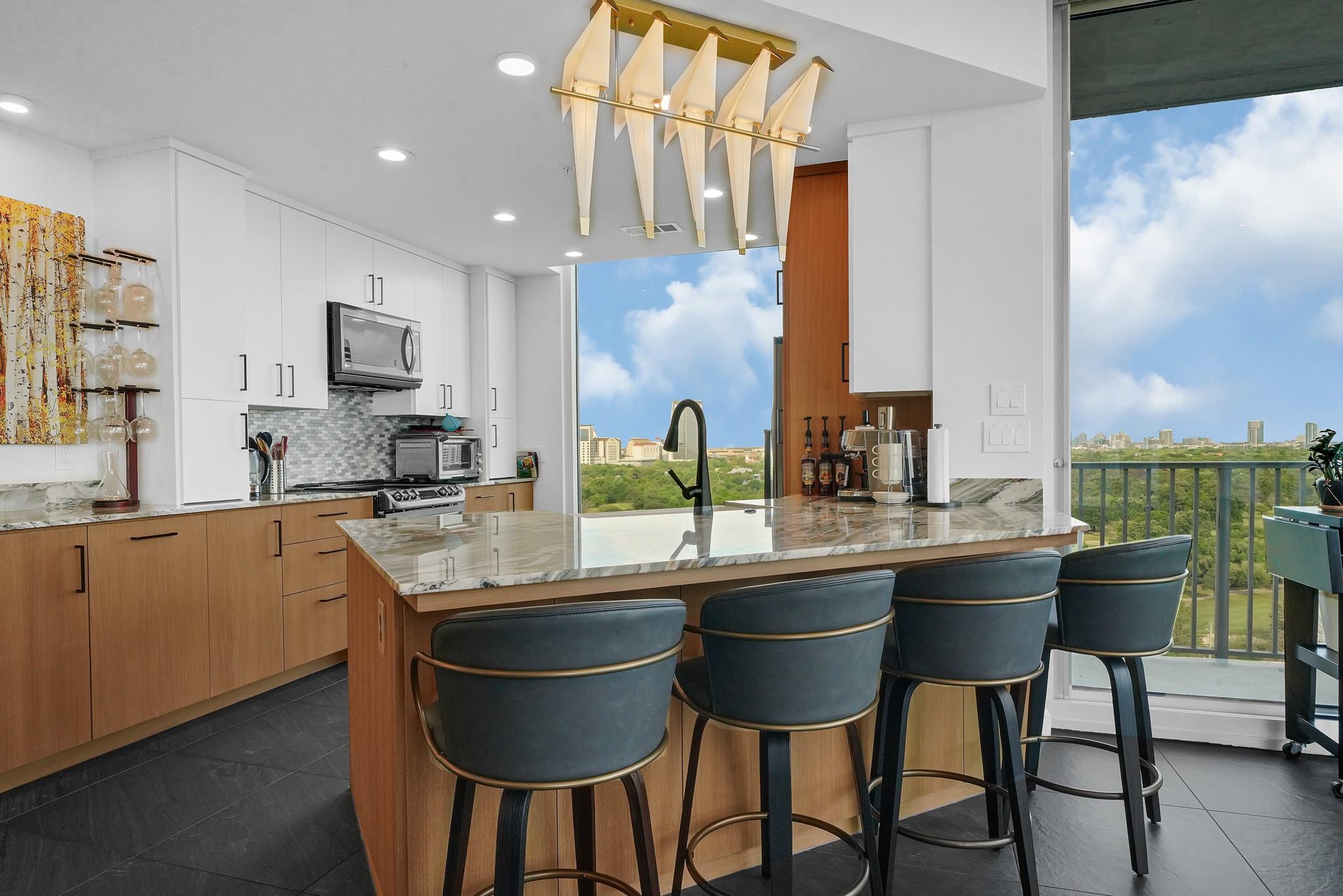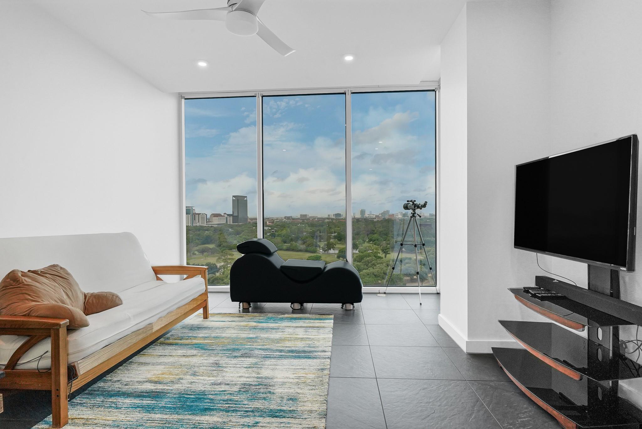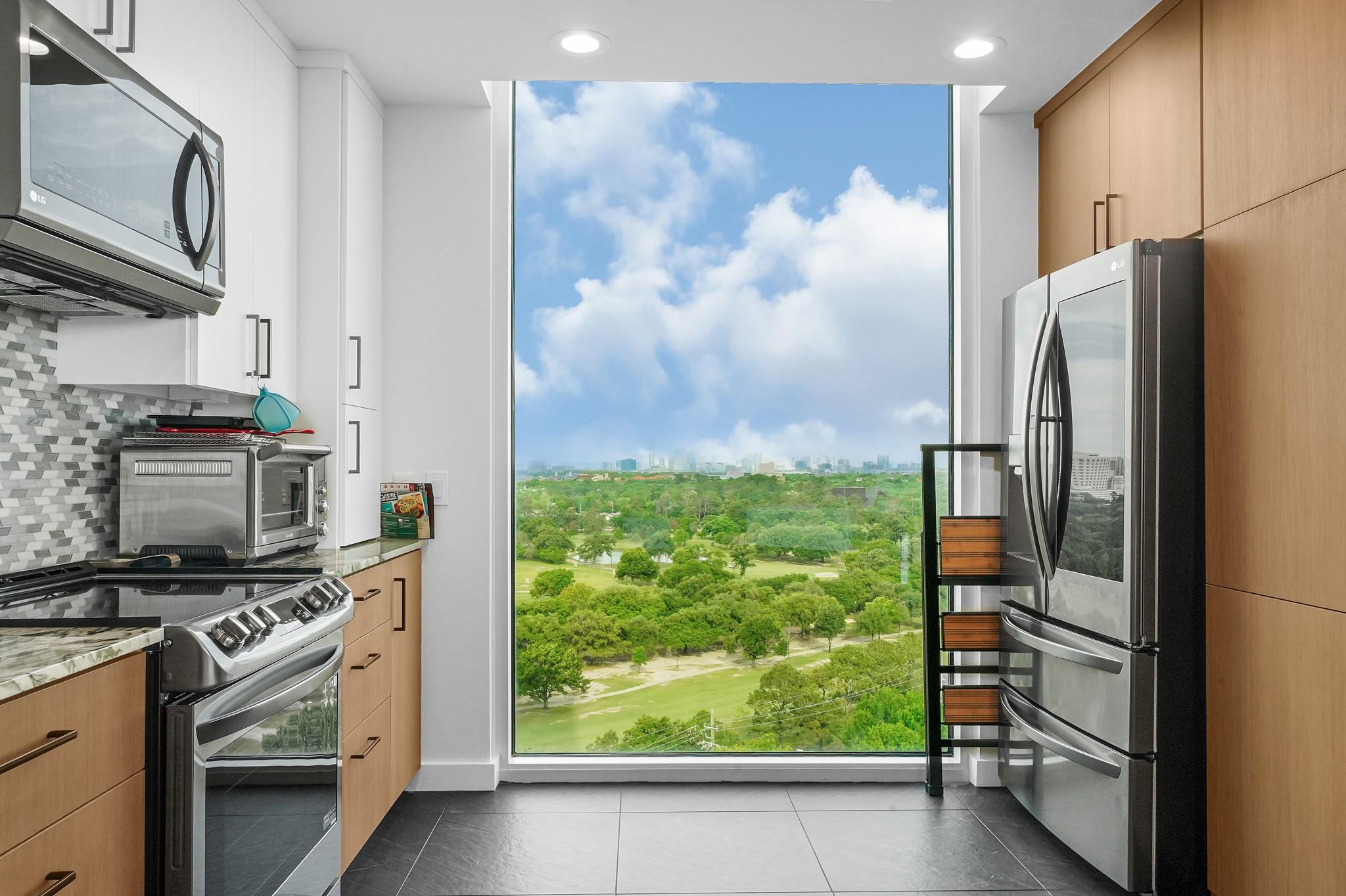 This exceptional, fully renovated corner condo showcases breathtaking views of downtown Houston, the Galleria, Hermann Park, and the Texas Medical Center. From the exquisite porcelain tile floors to the fully finished floating ceiling, the top-notch craftsmanship throughout, every detail impresses. Recent HVAC, LG Wifi-connected appliances including fridge, dishwasher, Induction oven, microwave, wine fridge and leak detection system. Luxurious primary bathroom features a whirlpool tub, enlarged shower, and Toto Bidet. Redesigned second bedroom and bathroom giving views of Hermann park and the Galleria. Custom kitchen cabinetry, motorized shades, &App-controlled lights, shades, lock, and ceiling fan. Mosaic offers valet, 24 hour Concierge, 6000 sq ft pool deck. The Fitness Center includes a boxing gym, hydromassage chair, steam room & dry sauna. There is a 6000 sq ft Social Lounge w/ pool table/ping pong. Don't miss this unique opportunity to own a piece of luxury living in Houston.
