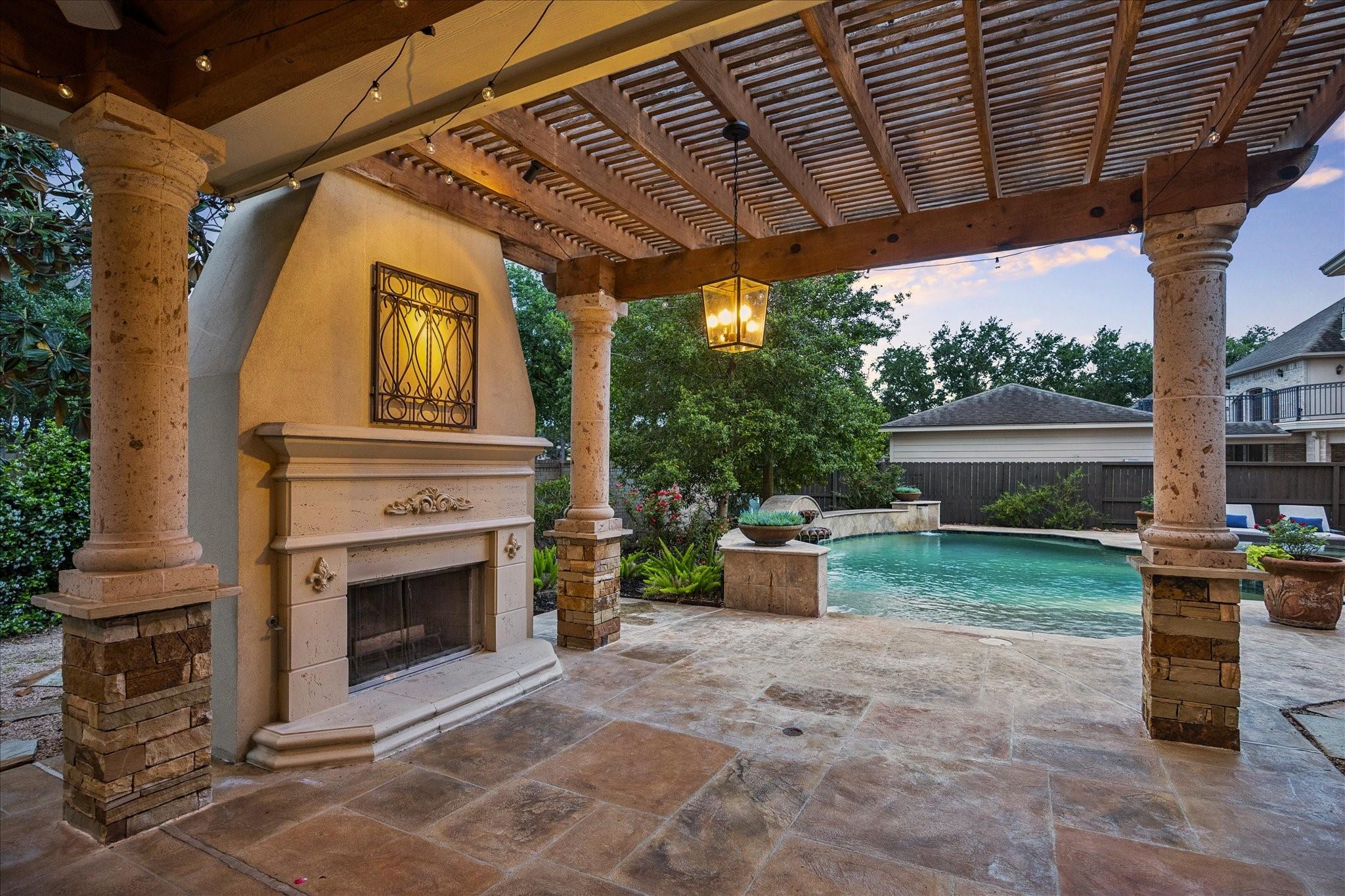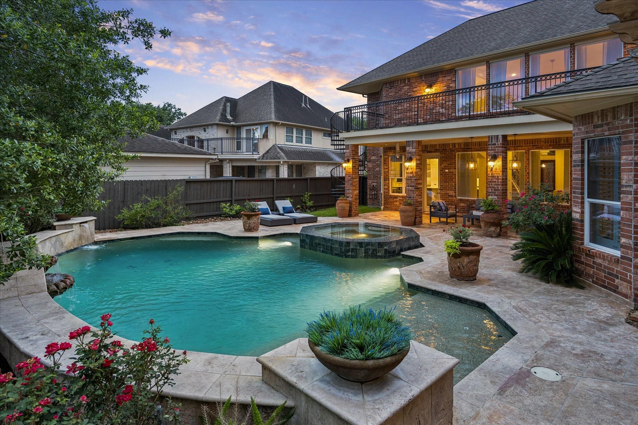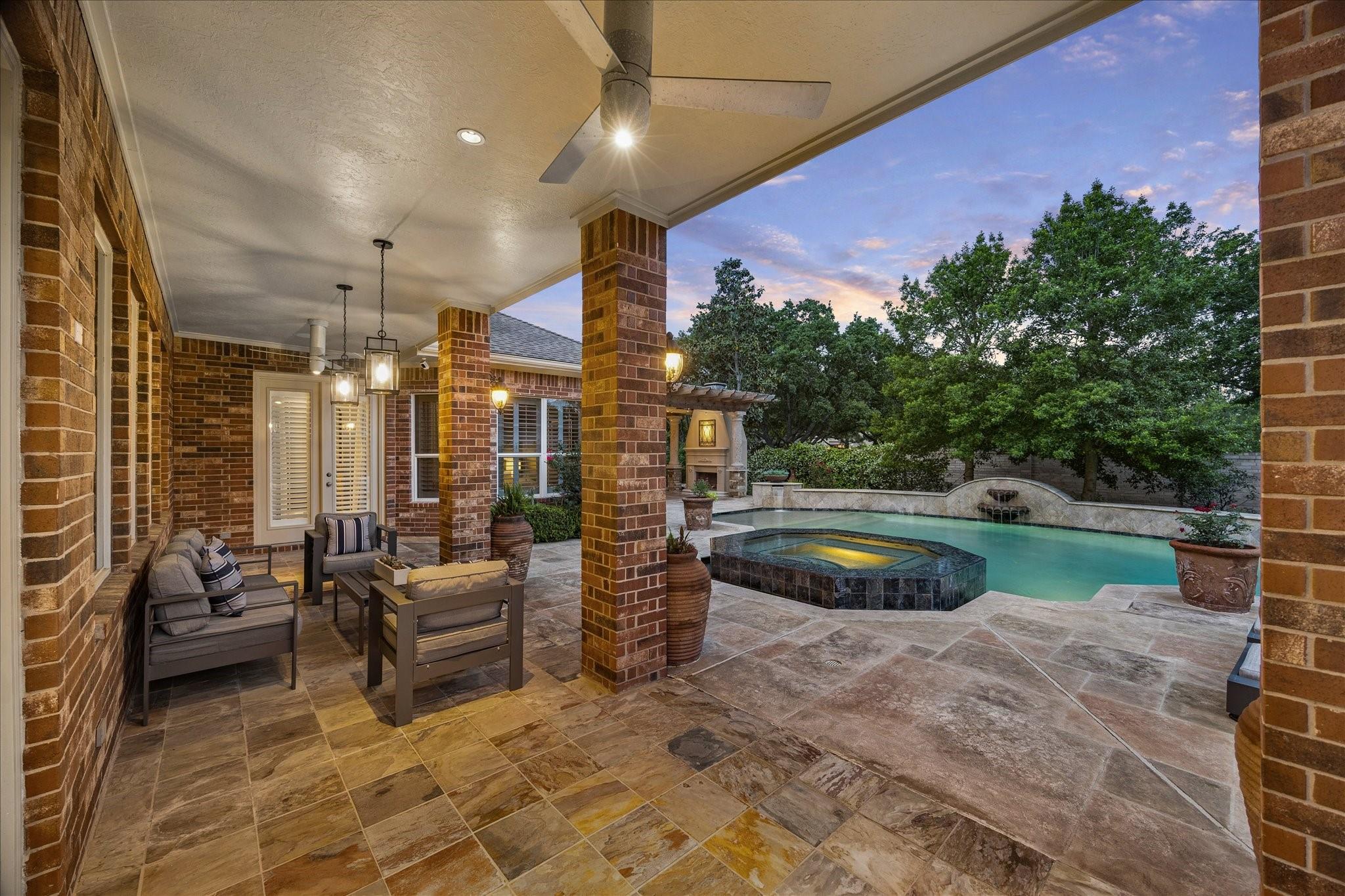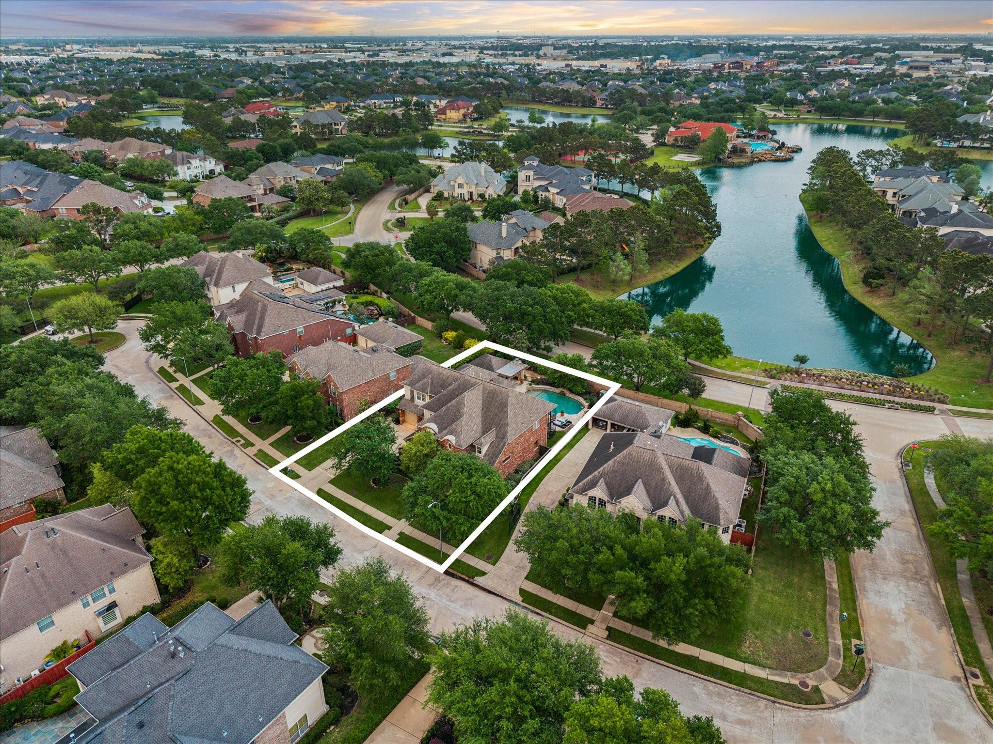 Experience luxury living in a manned-gated community. This home features soaring ceilings and a two-story foyer, dining, and family room that flood the interior with natural light. Designed for the ultimate host, the home boasts a custom wine grotto and a spectacular media room complete with a projector w/ screen and dry bar, offering direct access to a balcony with serene lake views. The primary suite and kitchen provide additional access points to the backyard for seamless indoor-outdoor flow. The resort-style oasis features two covered patios, an outdoor fireplace, and a pool with an attached spa. The summer kitchen with fully equipped outdoor kitchen is an entertainer's dream with a built-in BBQ, kegerator, ice maker, fridge, and sink. Recent updates include Arhaus chandeliers, 4 renovated baths, updated kitchen, replaced HVAC (2025), and 3-car garage w/ epoxy floors and built-ins. Enjoy community amenities and trails. Bus service available to Awty, British, and Village Schools.