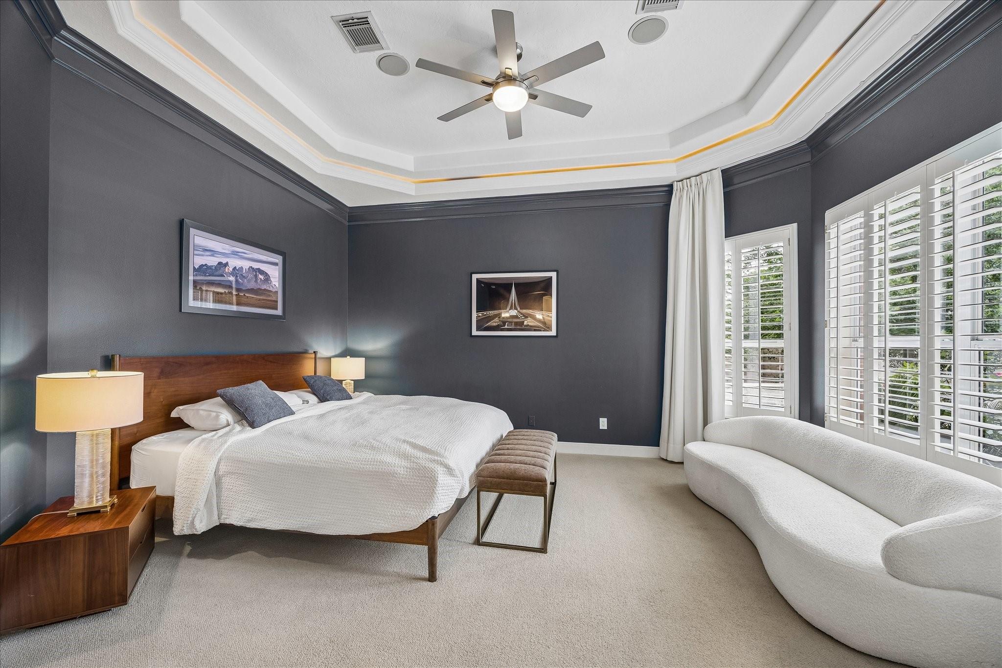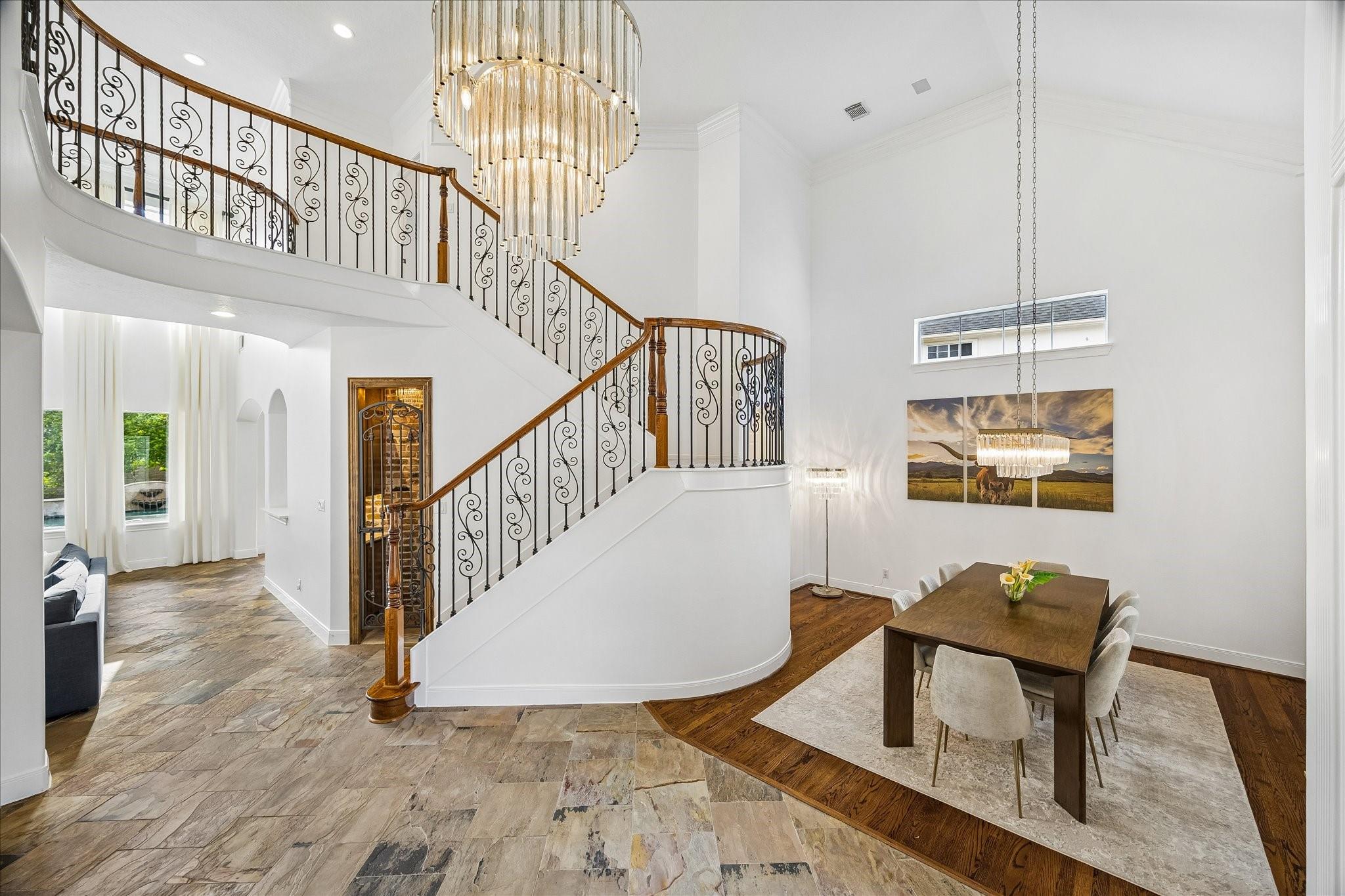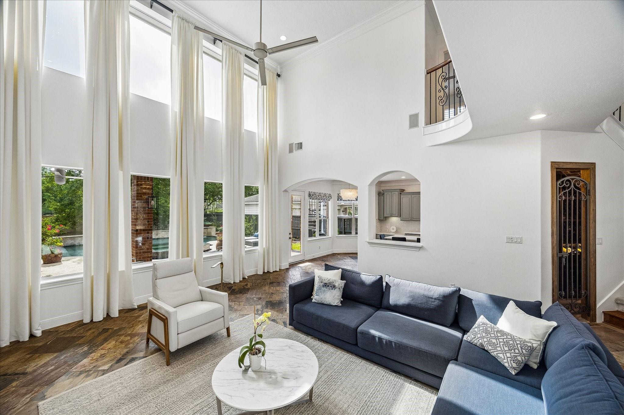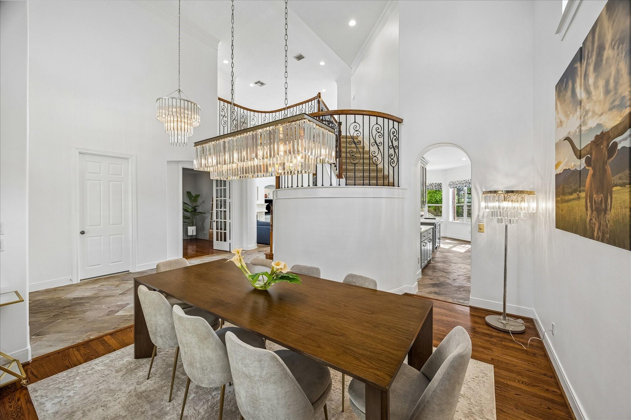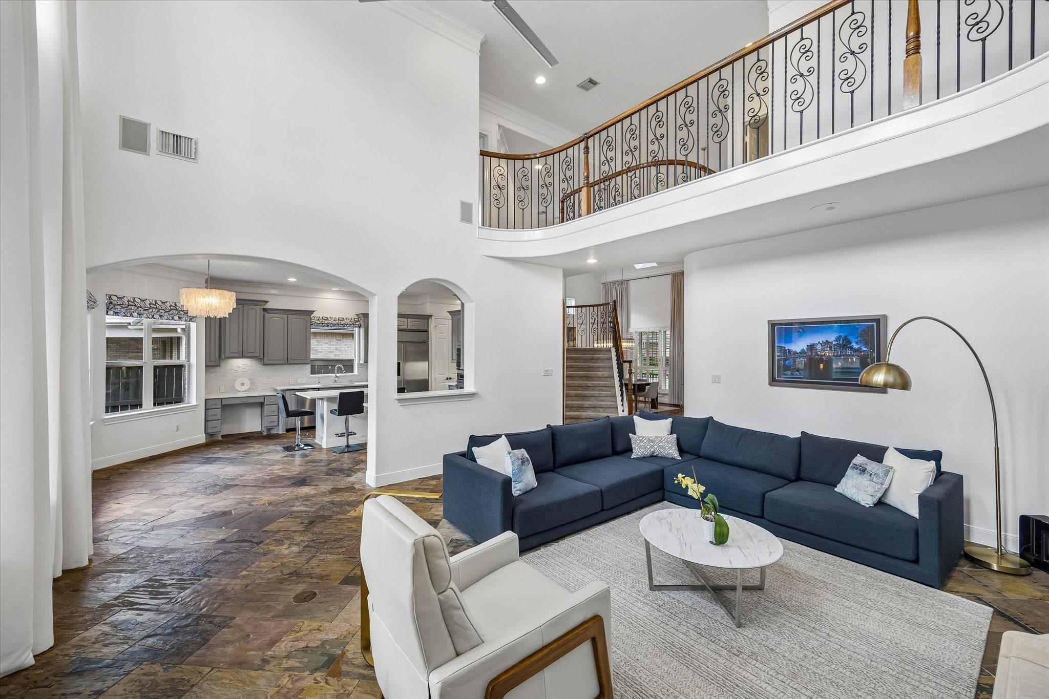 Experience luxury living in a manned-gated community. This home features soaring ceilings and a two-story foyer, dining, and family room that flood the interior with natural light. Designed for the ultimate host, the home boasts a custom wine grotto and a spectacular media room complete with a projector w/ screen and dry bar, offering direct access to a balcony with serene lake views. The primary suite and kitchen provide additional access points to the backyard for seamless indoor-outdoor flow. The resort-style oasis features two covered patios, an outdoor fireplace, and a pool with an attached spa. The summer kitchen with fully equipped outdoor kitchen is an entertainer's dream with a built-in BBQ, kegerator, ice maker, fridge, and sink. Recent updates include Arhaus chandeliers, 4 renovated baths, updated kitchen, replaced HVAC (2025), and 3-car garage w/ epoxy floors and built-ins. Enjoy community amenities and trails. Bus service available to Awty, British, and Village Schools.
