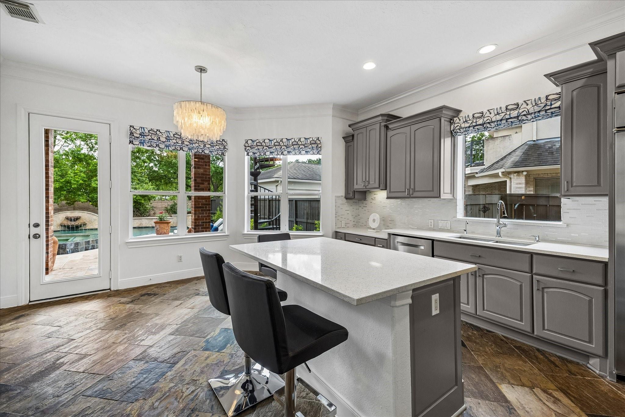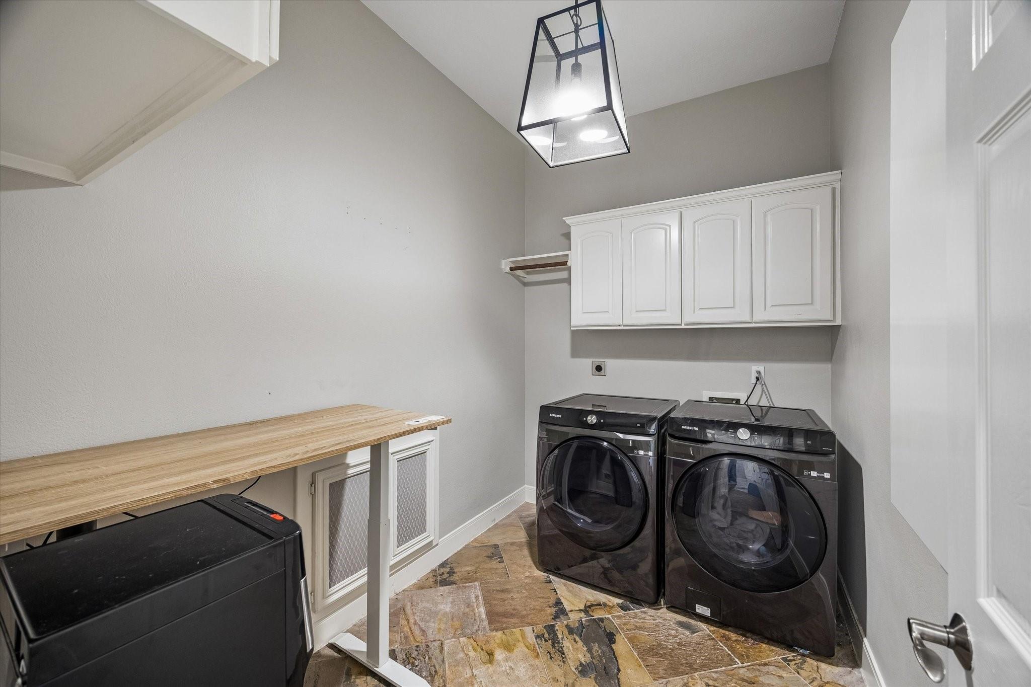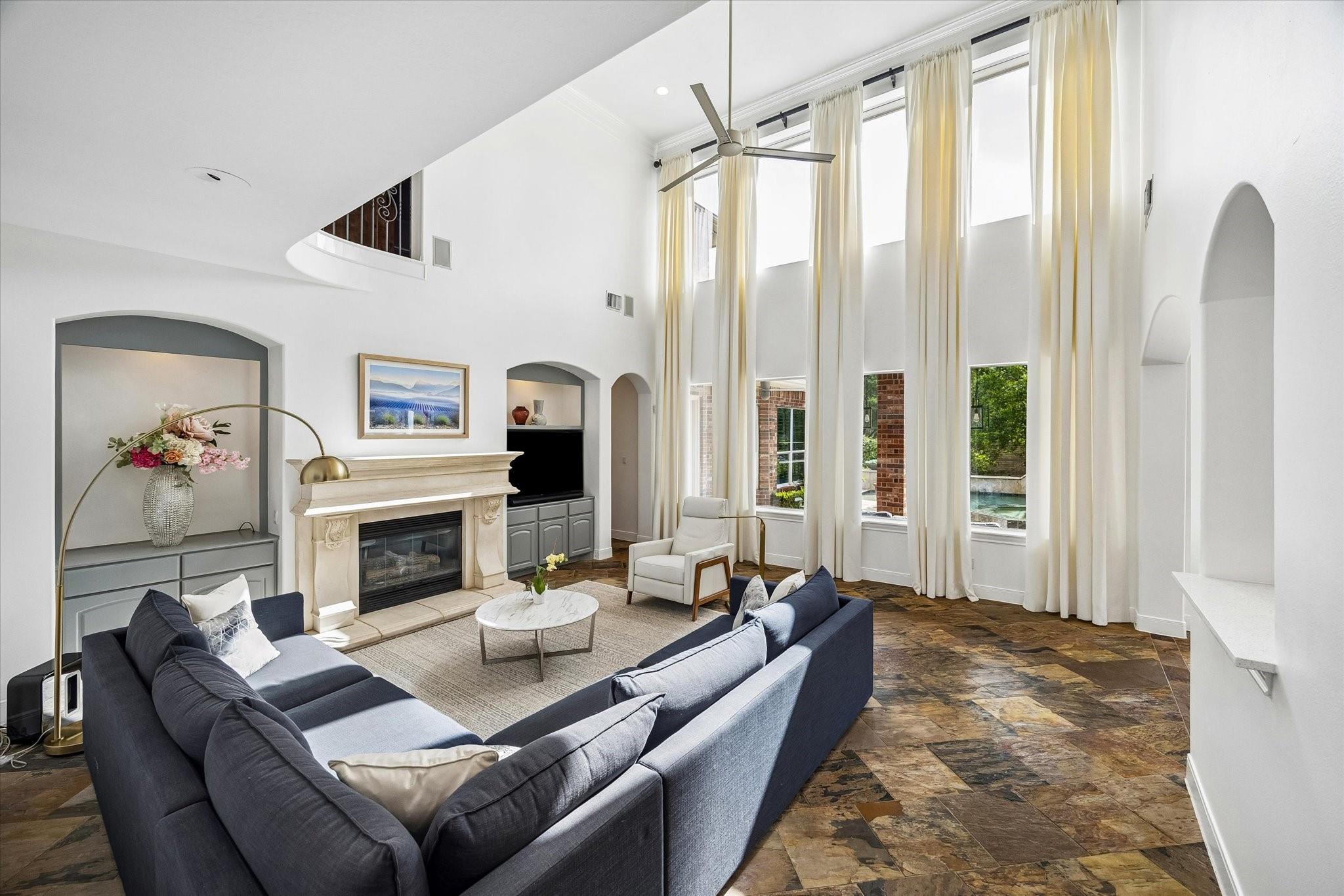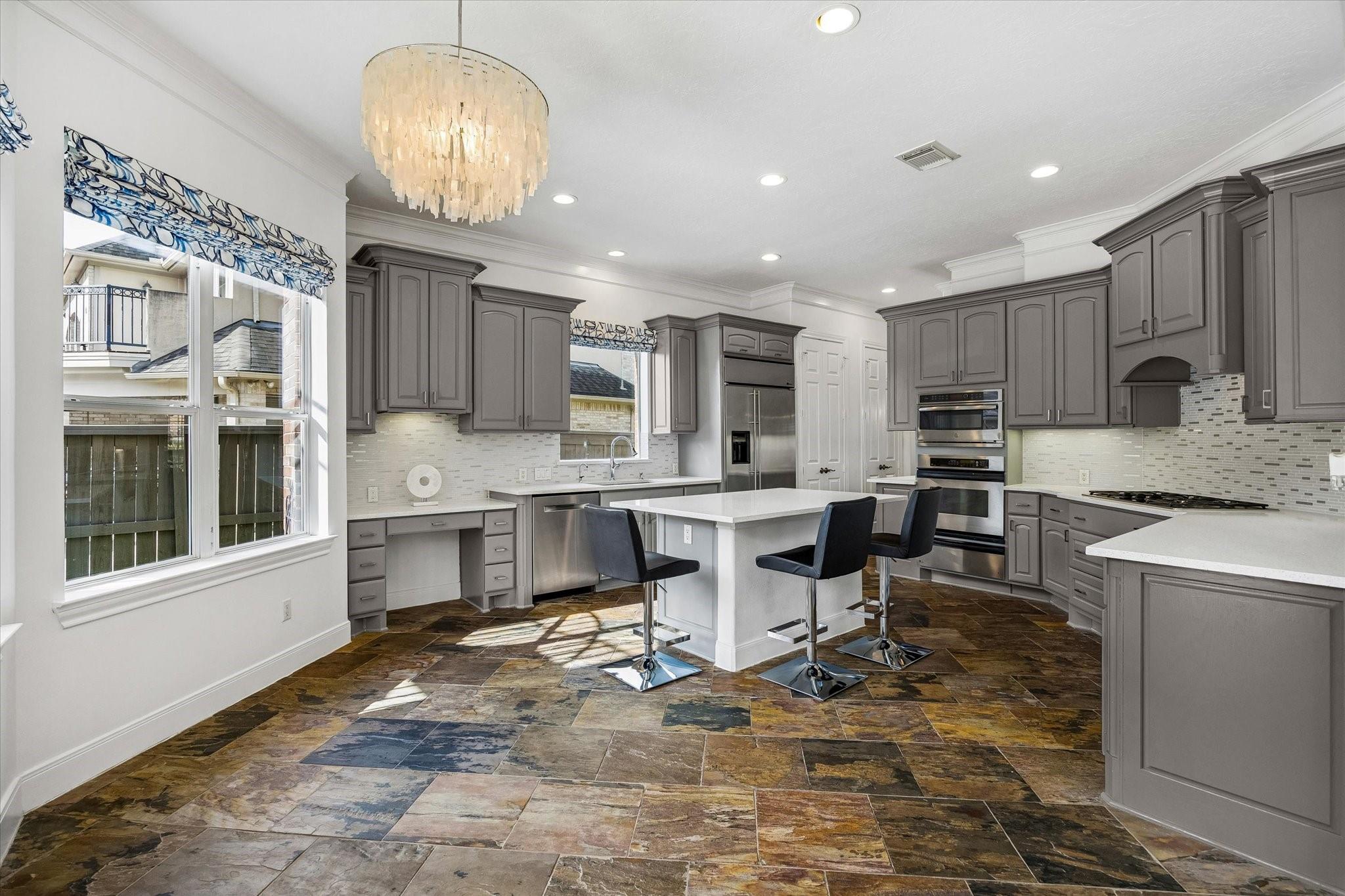 InteriorFireplace:1/Gaslog FireplaceFloors:Carpet,Engineered Wood,Slate,TileCountertop:QuartzBathroom Description:Half Bath,Primary Bath: Double Sinks,Primary Bath: Jetted Tub,Primary Bath: Separate Shower,Secondary Bath(s): Tub/Shower Combo,Vanity AreaBedroom Desc:En-Suite Bath,Primary Bed - 1st Floor,Walk-In ClosetKitchen Desc:Breakfast Bar,Island w/o Cooktop,Kitchen open to Family Room,Pantry,Walk-in PantryRoom Description:Breakfast Room,Entry,Family Room,Formal Dining,Gameroom Up,Home Office/Study,Living Area - 1st Floor,Utility Room in HouseHeating:Central GasCooling:Central ElectricConnections:Washer ConnectionsDishwasher:YesDisposal:YesMicrowave:YesRange:Gas CooktopOven:Single OvenIce Maker:NoEnergy Feature:Ceiling Fans,Digital Program Thermostat,Energy Star/CFL/LED Lights,High-Efficiency HVAC,Insulated/Low-E windowsInterior:Alarm System - Owned,Central Vacuum,Fire/Smoke Alarm,Formal Entry/Foyer,High Ceiling,Refrigerator Included,Spa/Hot Tub,Water Softener - Owned,Wet Bar,Window Coverings,Wine/Beverage Fridge,Wired for Sound