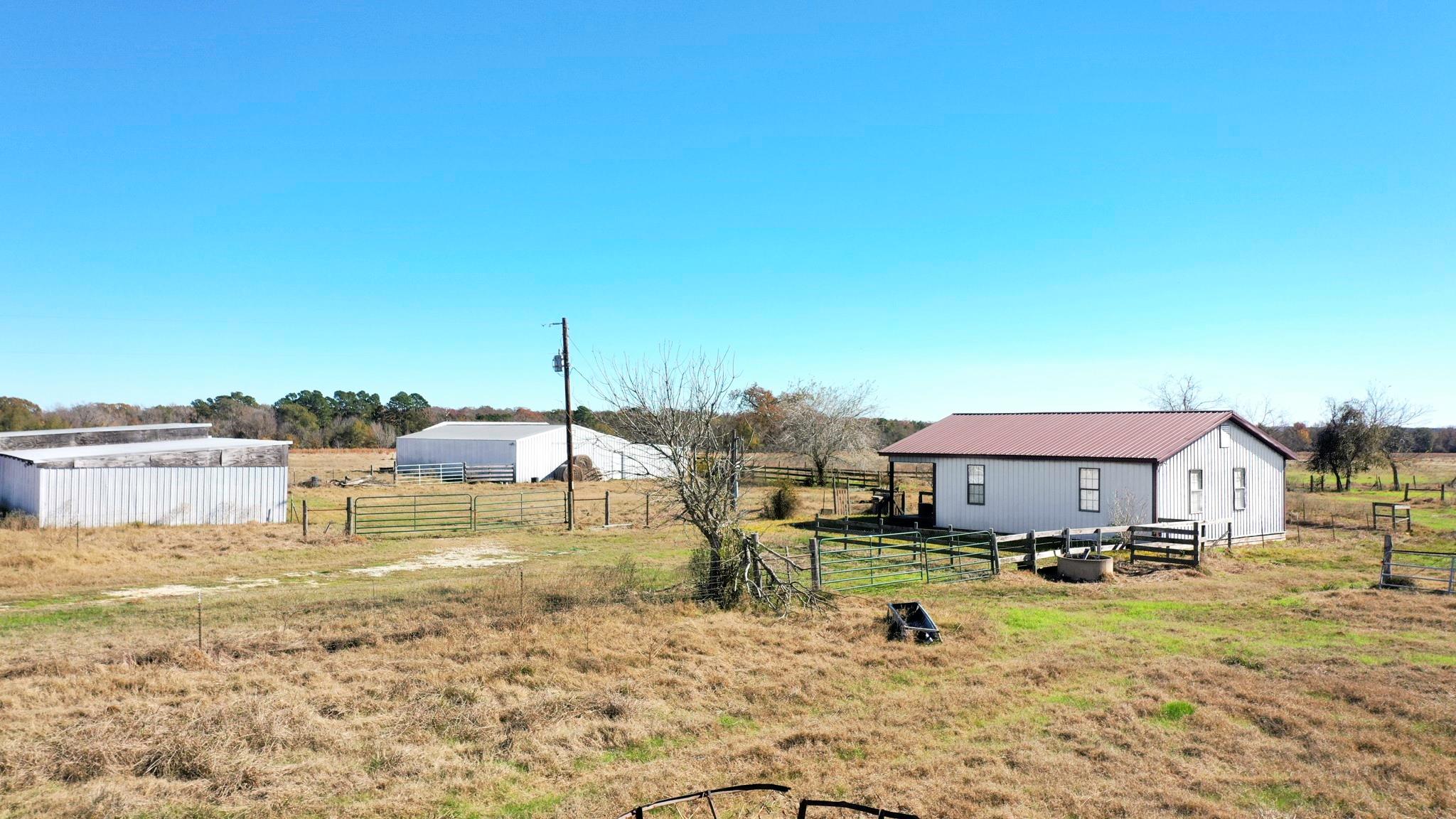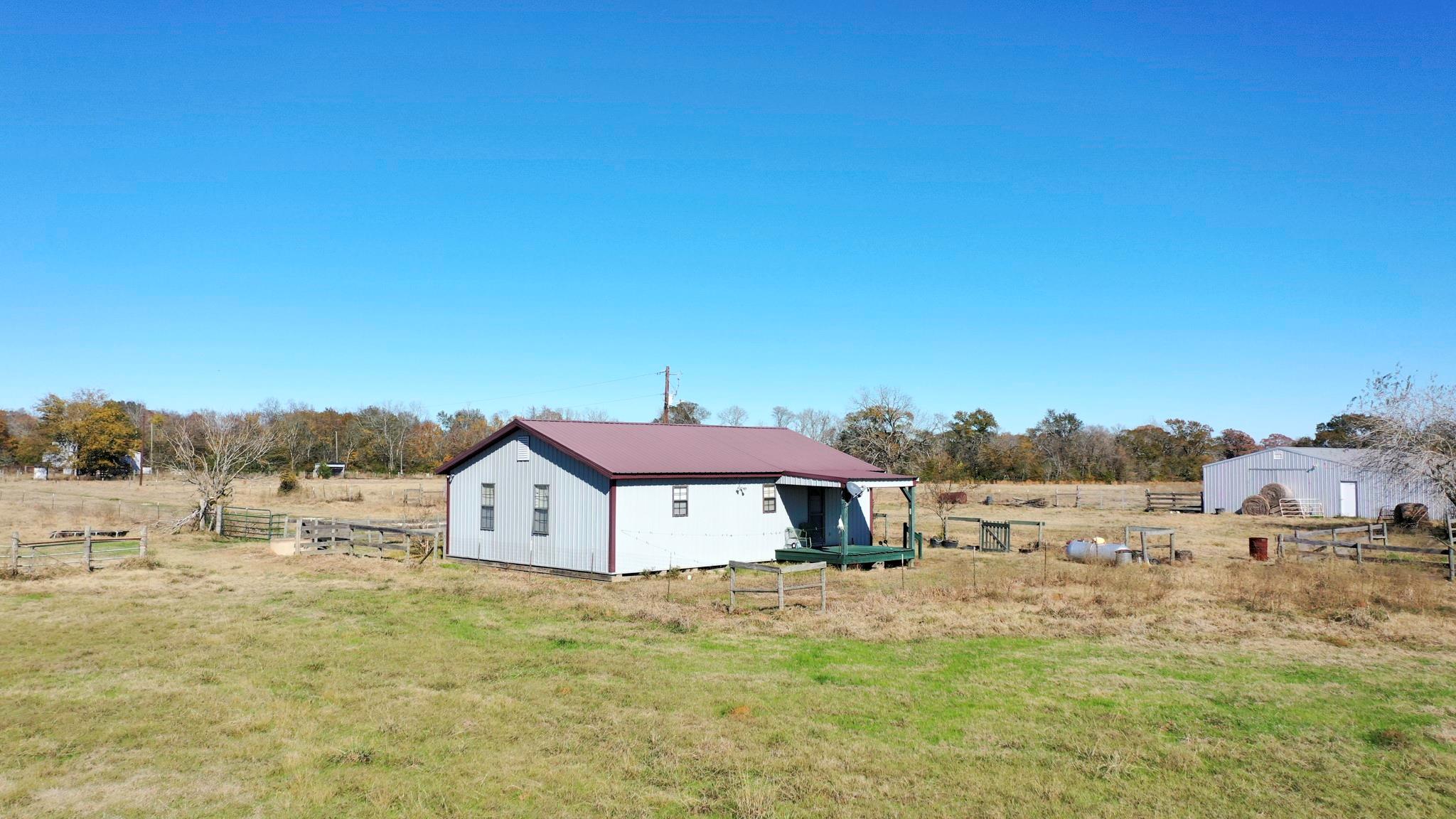 Spanning 186.95+/- Acres, the lost Pines Ranch is fully cattle-ready and thoughtfully improved for efficient livestock operations and country living. Make yourself at home full or part time with this 1104 SF (CAD) Metal Home with utilities in place offering 1 Bedroom, 1 Full Bathroom, kitchen, and living room. Outdoors there is a large barn and implement shed that provides ample space for equipment, hay and livestock needs. Presenting approximately 90% open, and 10% wooded with native trees, the grass is a coastal mix, and the acreage is mostly level. The property features secure perimeter fencing with cross-fencing to support rotational grazing. A creek crosses the property, and two ponds offer reliable water sources for cattle and wildlife. Well suited for ranching, recreation, or agriculture investment, this versatile property boasts functionality and long-term value.