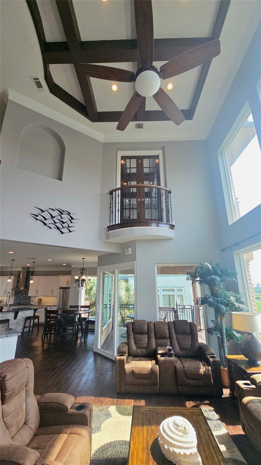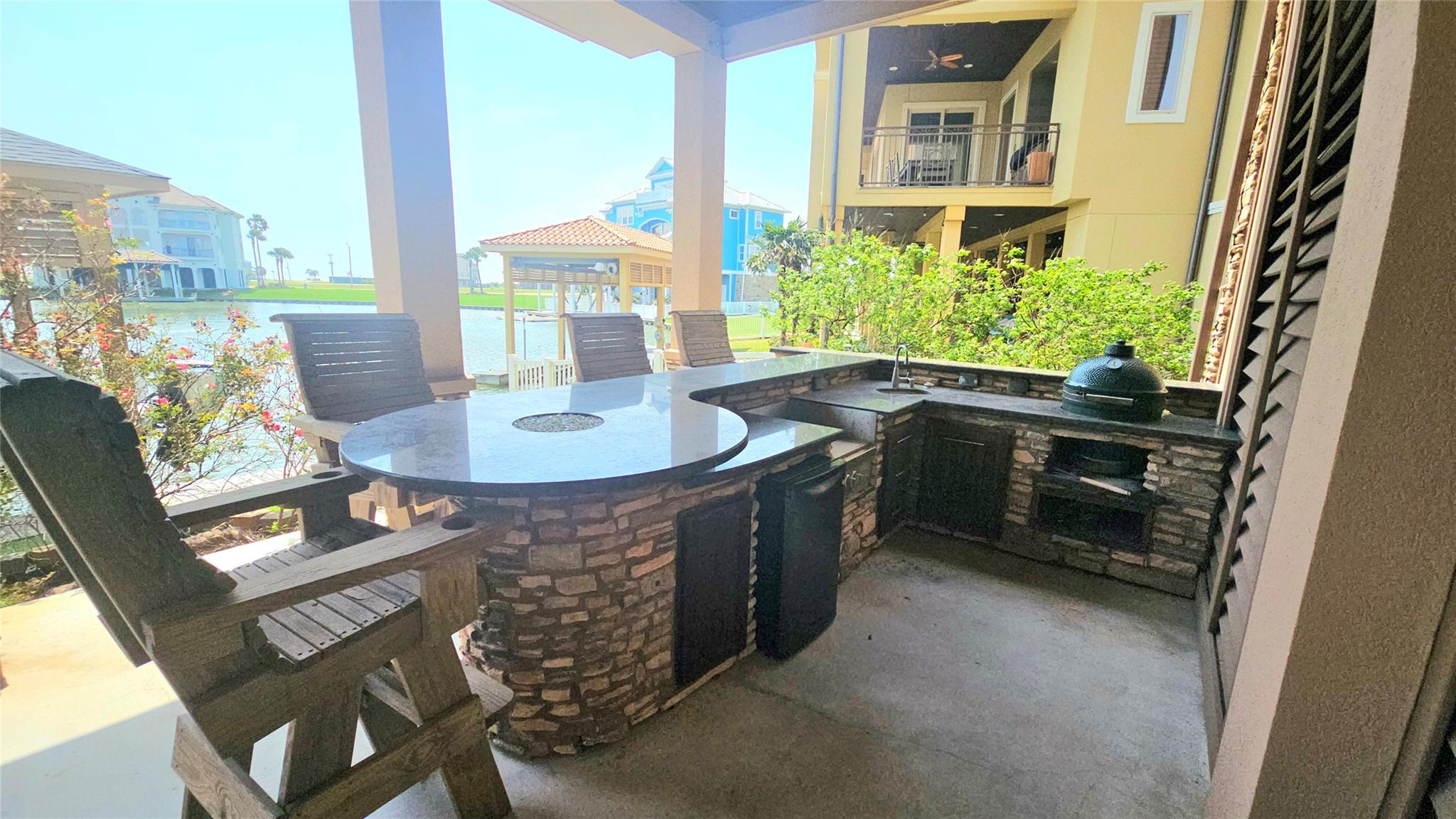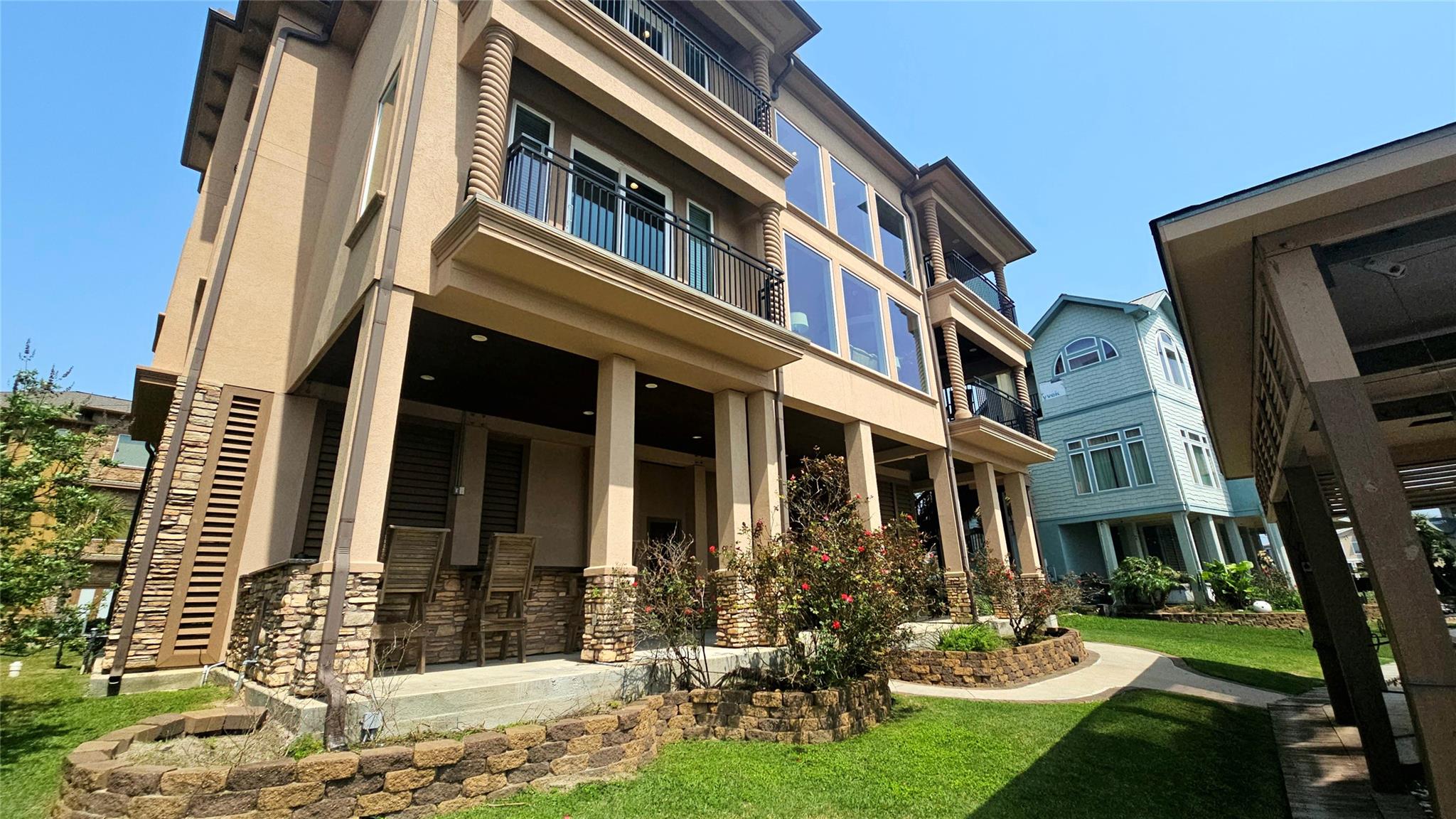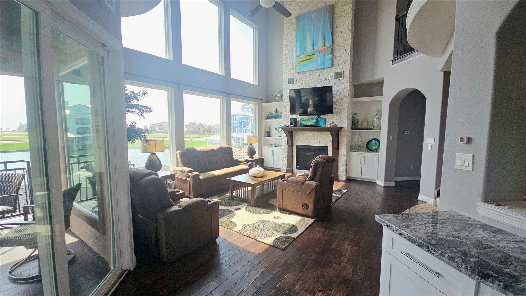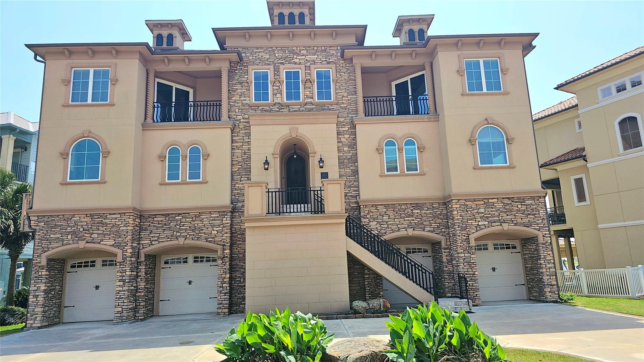 Commanding a premier position in Harborwalk, this 4-bedroom, 4.5-bathroom home offers an unparalleled blend of luxury, privacy, and coastal elegance. This striking stucco and stone home features panoramic water views. At the heart of the home lies a gourmet kitchen—complete with an oversized island, custom cabinetry, and double ovens—designed to inspire culinary creativity and effortless entertaining. Each of the four spacious bedrooms is a private suite, featuring its own full bathroom and exclusive balcony, allowing guests to savor breathtaking views and gentle coastal breezes. The primary suite is a true retreat, offering spa-inspired amenities with soaker tub, huge walk-in shower. Featuring expansive covered terraces with outdoor kitchen invite year-round enjoyment of the coastal setting with direct access to Galveston bay, great for fishing, or sunset cruises. This is more than a home—it's a lifestyle of distinction on the Texas Gulf Coast.