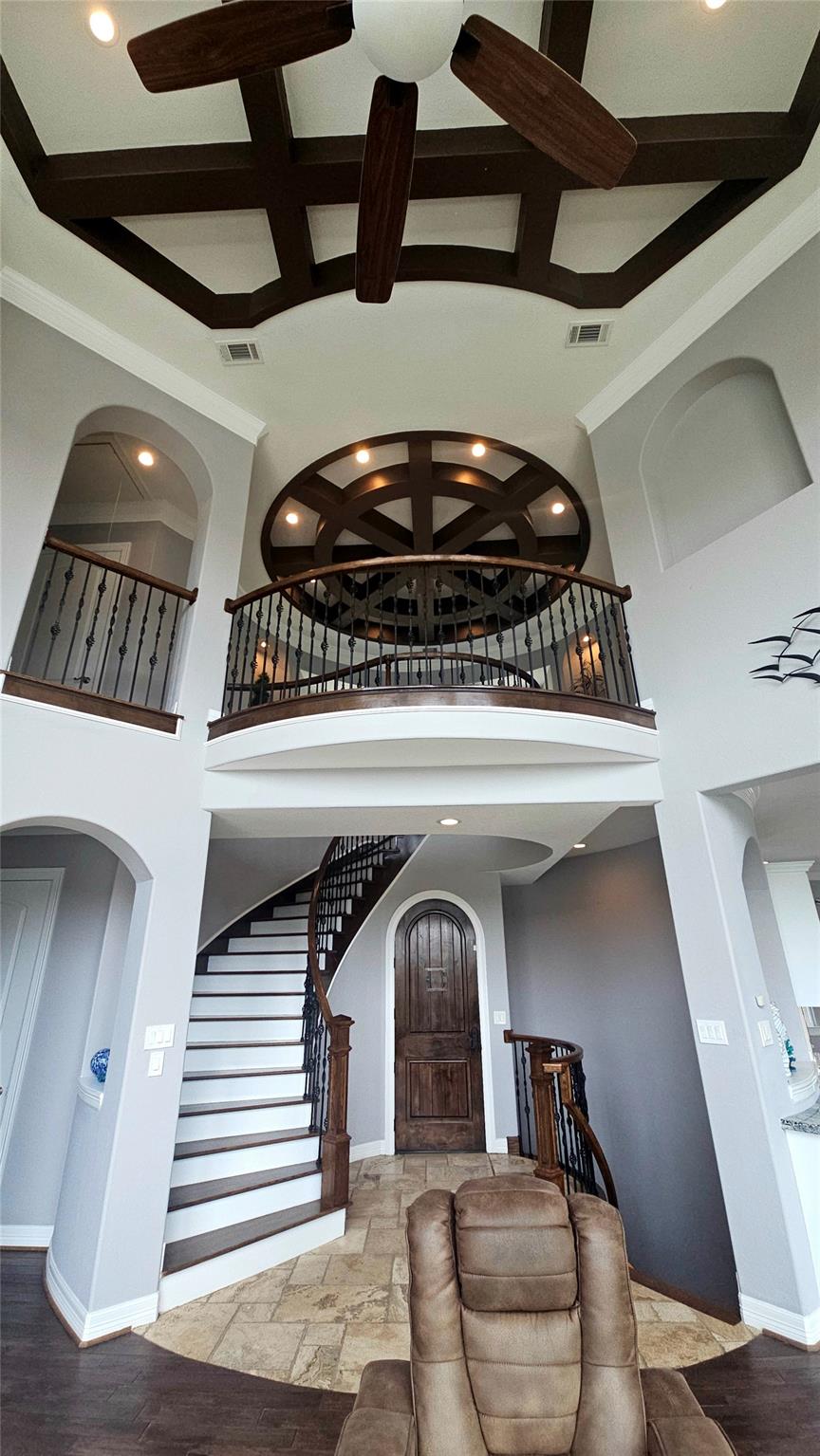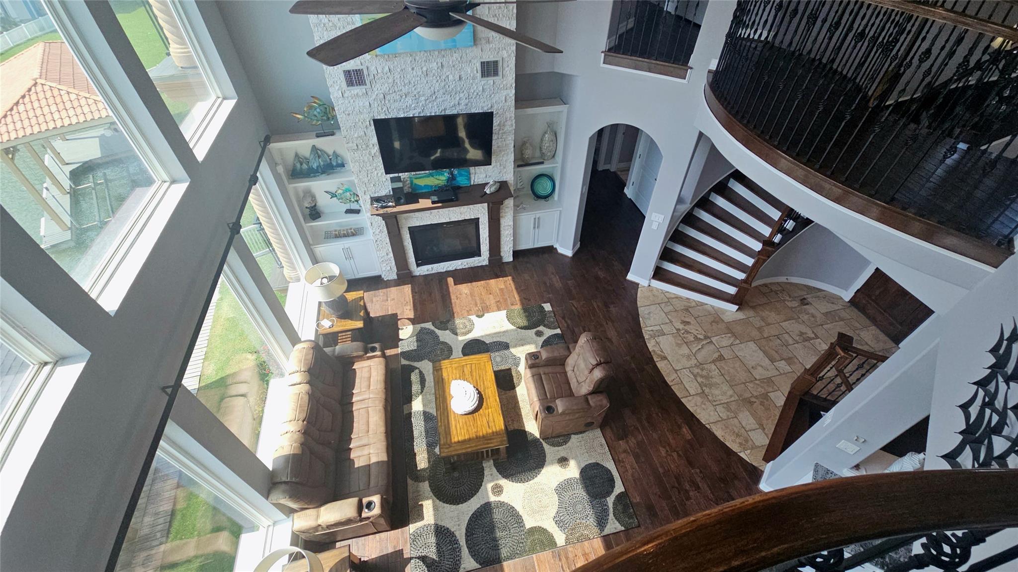 InteriorFireplace:1Floors:Engineered Wood,Stone,TravertineHeating:Central GasCooling:Central ElectricConnections:Gas Dryer Connections,Washer ConnectionsDishwasher:YesDisposal:YesMicrowave:YesRange:Gas CooktopOven:Convection Oven,Double Oven,Gas OvenEnergy Feature:Attic Fan,Attic Vents,Ceiling Fans,Digital Program Thermostat,Energy Star/CFL/LED Lights,Energy Star/Reflective Roof,High-Efficiency HVAC,Insulated/Low-E windows,Insulation - Blown FiberglassInterior:2 Staircases,Alarm System - Leased,Balcony,Crown Molding,Dryer Included,Fire/Smoke Alarm,Formal Entry/Foyer,High Ceiling,Refrigerator Included,Washer Included