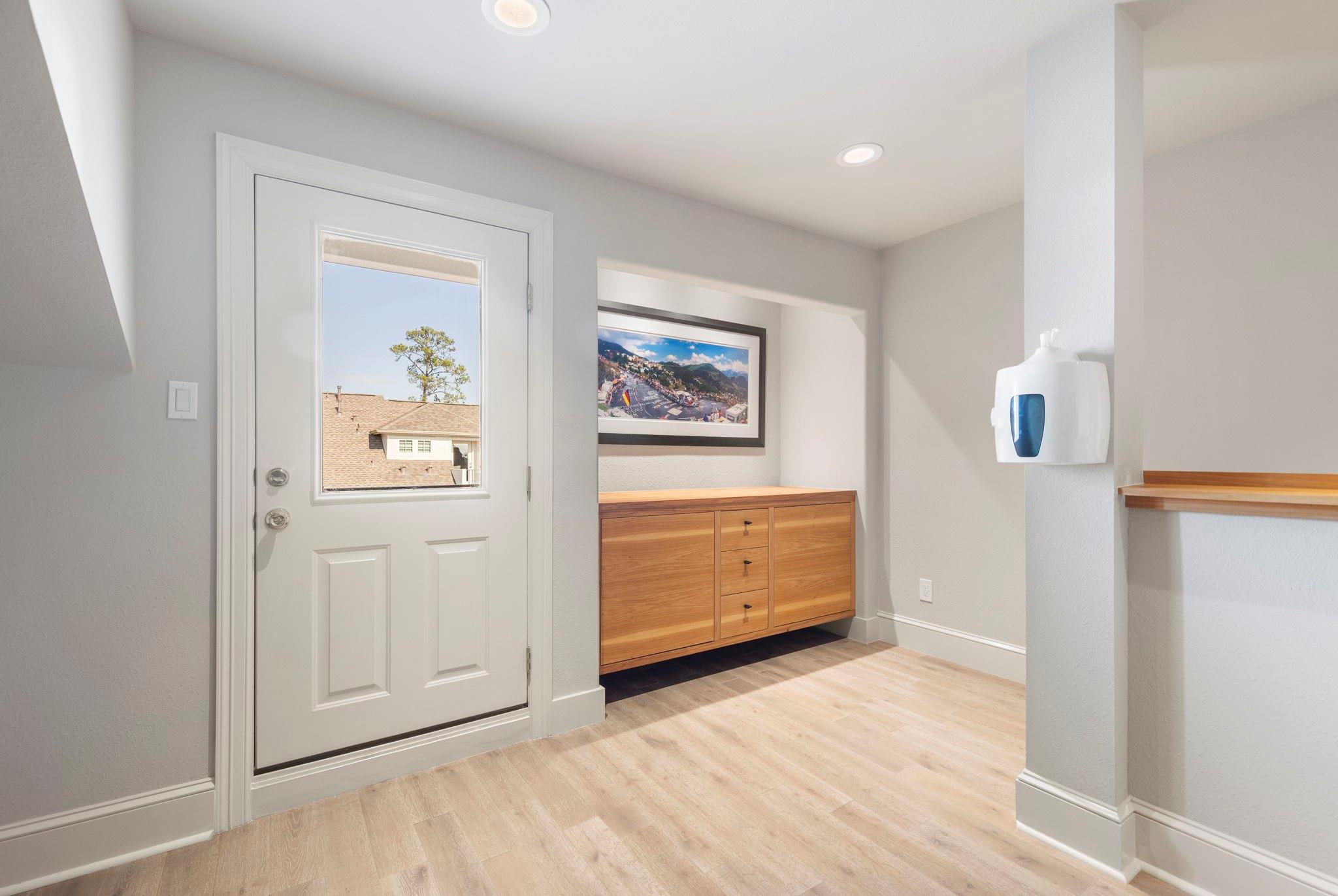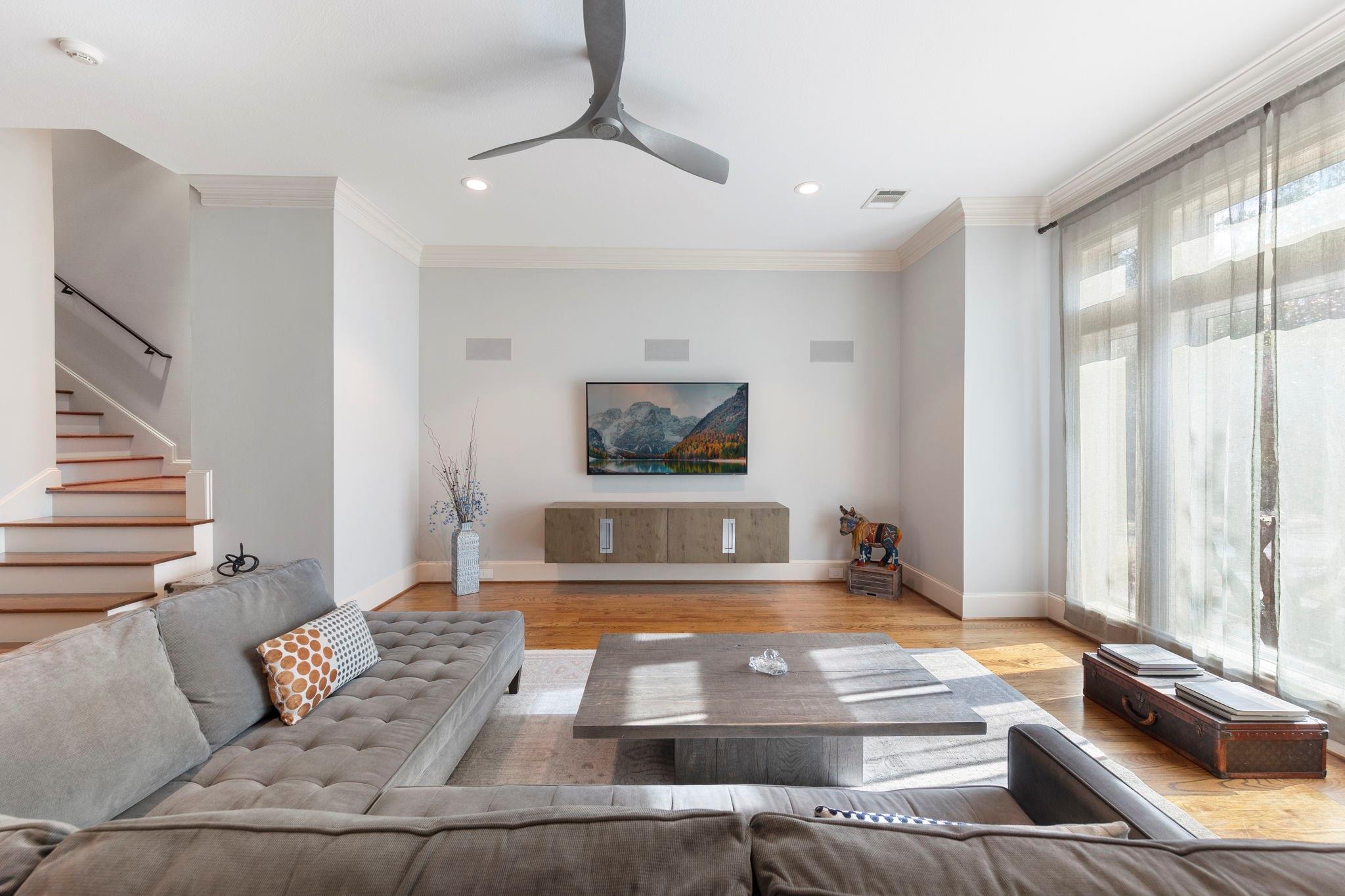 Experience elevated East Shore living in The Woodlands in this stunning 4-story brownstone. Offering 3 bedrooms + 3.5 baths, home features gated garage access + first-floor guest suite w/full bath. Plantation shutters + recent interior paint enhance the light-filled spaces. Main floor dining/bar area w/custom built-ins w/85-bottle Sub-Zero wine refrigerator. Updated kitchen w/limestone counters, modern cabinetry, Asko dishwasher, and 6-burner Wolf gas cooktop. Third-floor owner’s retreat offers balcony access, renovated fourth floor impresses as a gym, game room, or home office. Notable updates include new roof (2025), new A/C (2022), updated LED lighting + black steel handrails. Numerous non-realty items convey w/property. Enjoy a walkable, low-maintenance lifestyle—walk to Market Street, dining, shopping, and entertainment, w/ quick access to Town Center and trails. East Shore residents enjoy a private clubhouse, fitness center, pool, parks, and scenic paths along Lake Woodlands