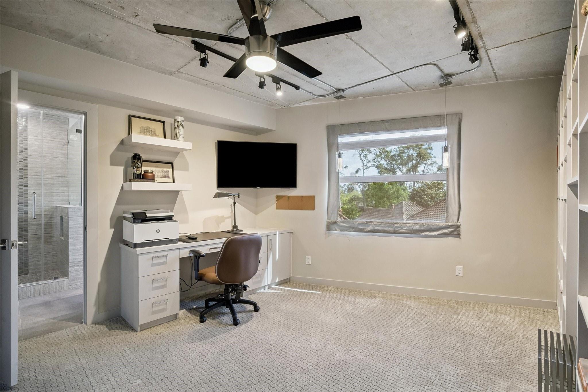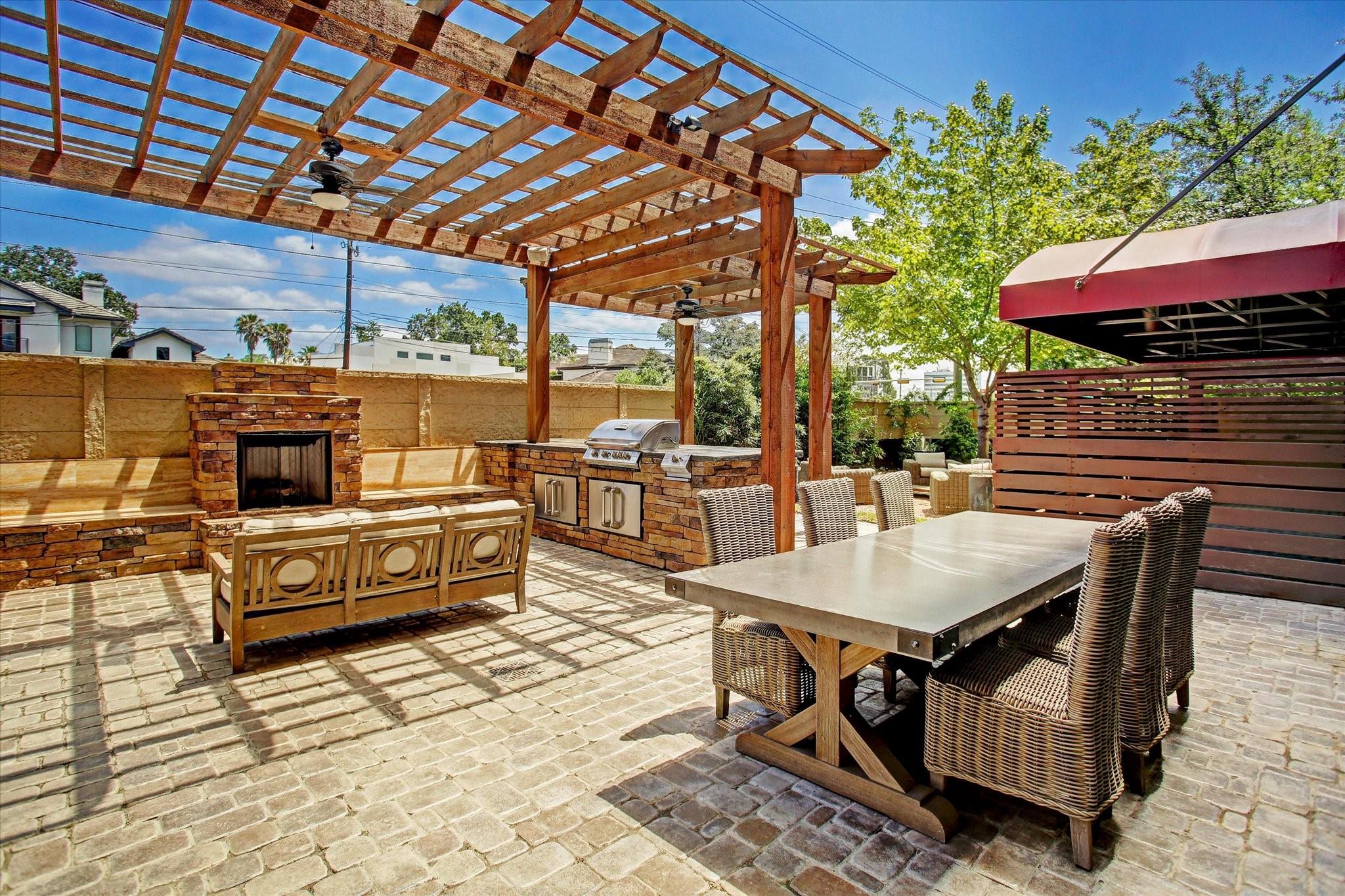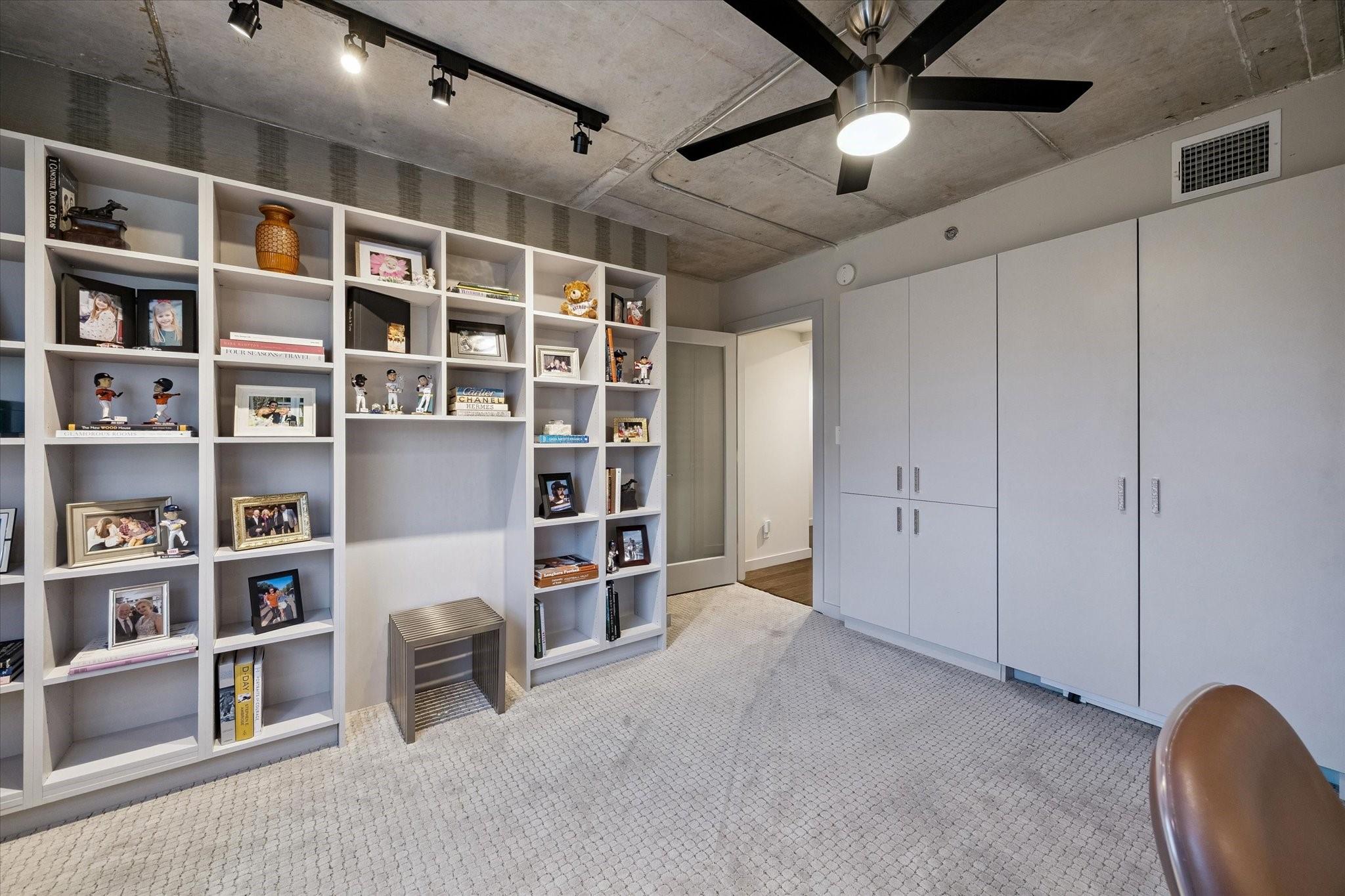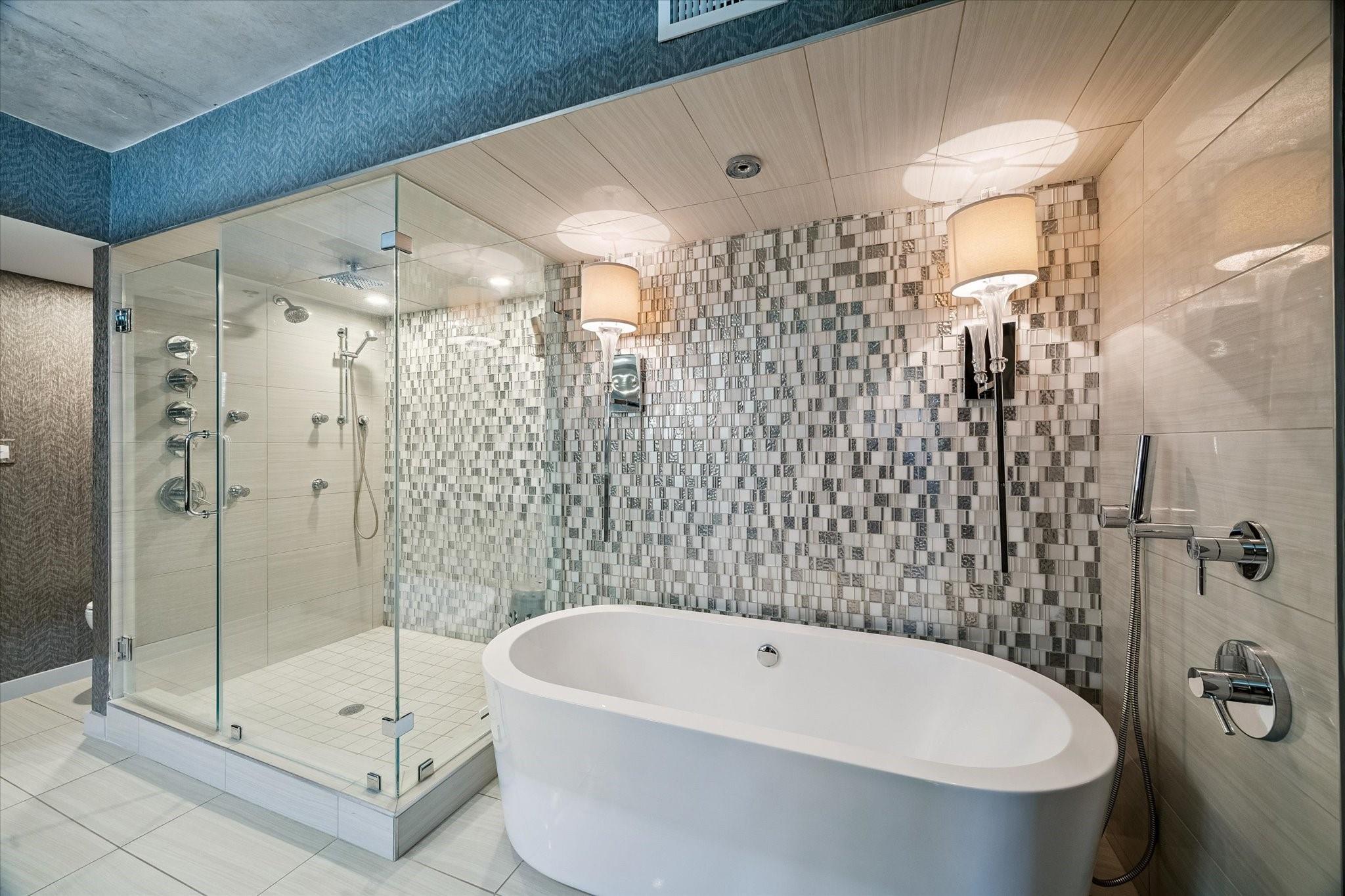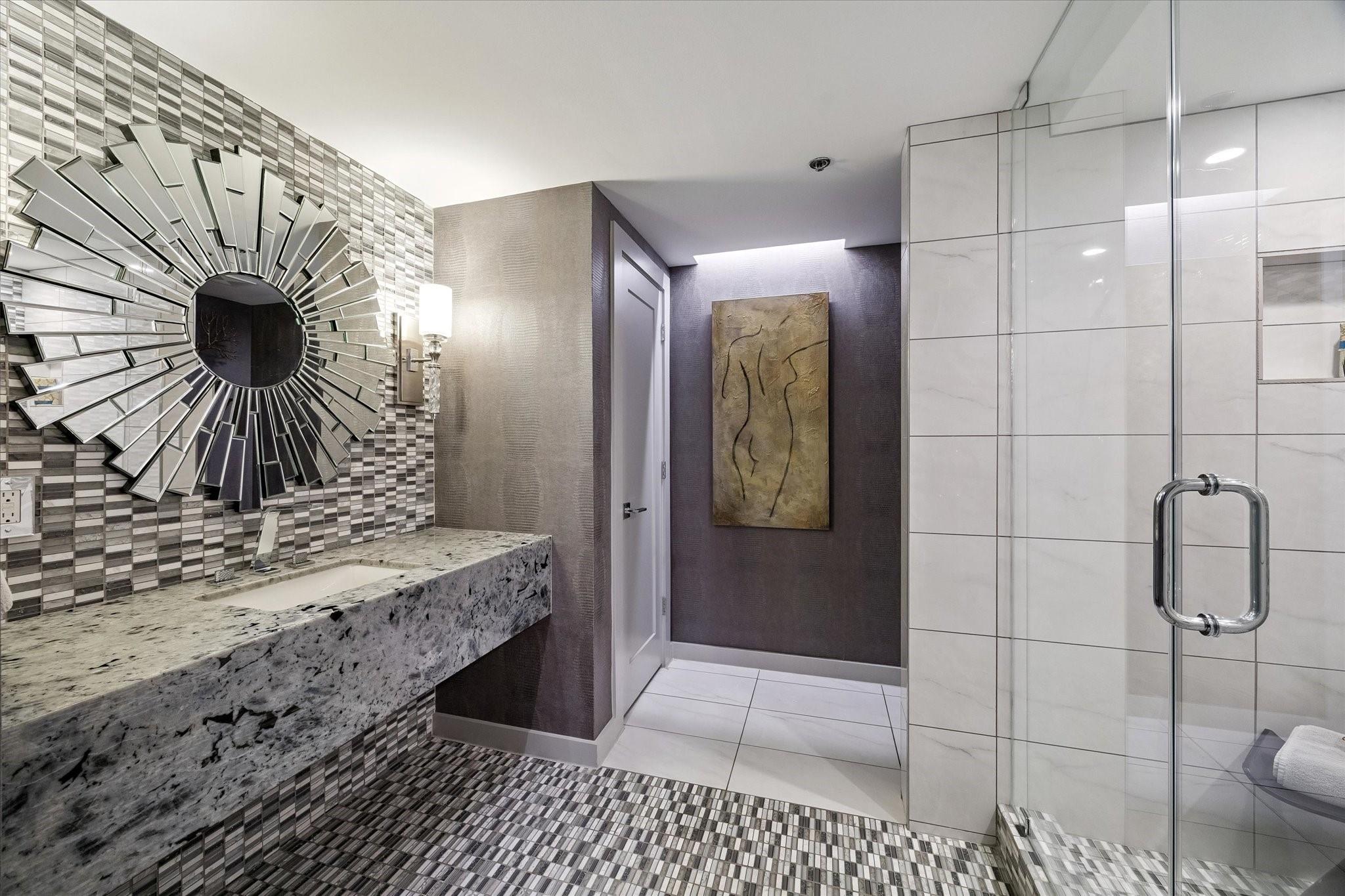 Beautifully designed residence in a prime location near Memorial Park, dining, and entertainment. Open-concept living, dining, and kitchen feature modern finishes, abundant light, and a spacious bar area, with a private balcony extending the living space outdoors. A dedicated wine room with seating offers a sophisticated entertaining space, while a separate cozy media area shares a fireplace that extends from the main living room. The main level includes a full bath. Upstairs, the primary suite features a sitting area, interior windows with motorized blackout shades, and a spa-like bath with dual vanities, walk-in shower, soaking tub, coffee bar, beverage refrigerator, and included TV. All bedrooms are en suite. Home automation controls lights, sound, televisions, motorized shades, and climate, complemented by an integrated sound system. Controlled-access building with two assigned parking spaces and a private EV charger.