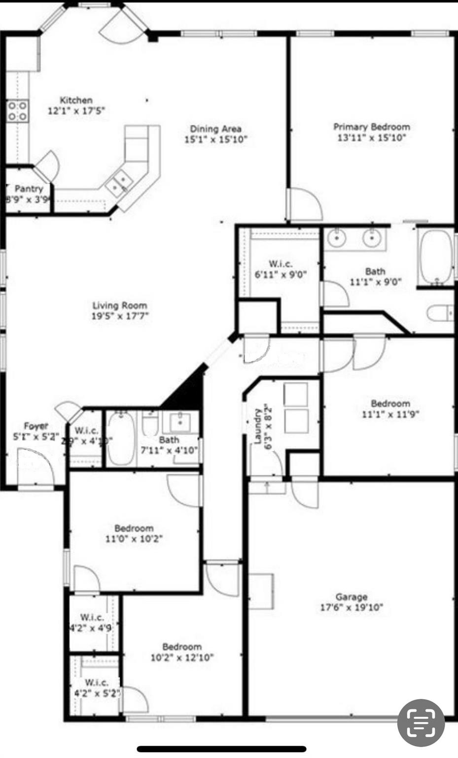 First FloorLiving:19'5" x 17'7"Dining:15'1" x 15'10"Kitchen:12'1" x 17'5"Primary Bedroom:15'10" x 13'11"Bedroom:11'1" x 11'9"Bedroom 2:10'2" x 12'10"Bedroom 3:11'0" x 10'2"Primary Bath:11'1" x 9'0"Utility Room:6'3" x 8'2"