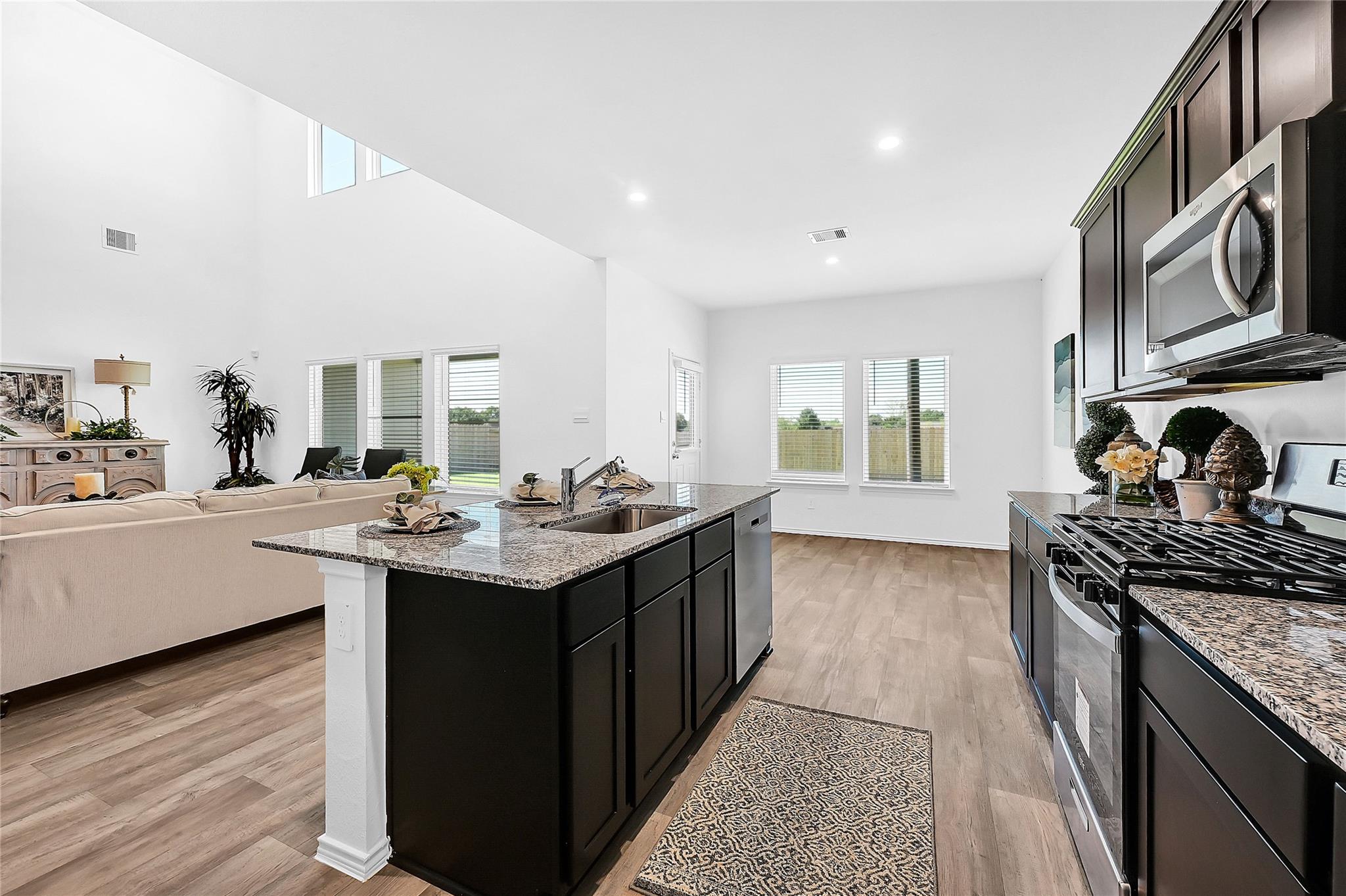 MOVE IN READY. Welcome to the Lancaster floor plan by D.R. Horton, located in the sought-after Evergreen community. This spacious two-story home offers approximately 3,188 sq. ft., with 5 bedrooms, a study, and a game room. The open-concept layout features soaring ceilings, a bright living area, and a kitchen with stylish countertops and stainless steel appliances. Two bedrooms are located downstairs, with two more and a game room upstairs. Luxury vinyl flooring adds durability and style throughout. A covered patio and classic brick-and-stone exterior complete the home. Enjoy Evergreen’s amenity center with pool, playground, lakes, walking trails & pickleball courts. Close to shopping and dining at Brazos Town Center. Zoned to top-rated LCISD schools.
