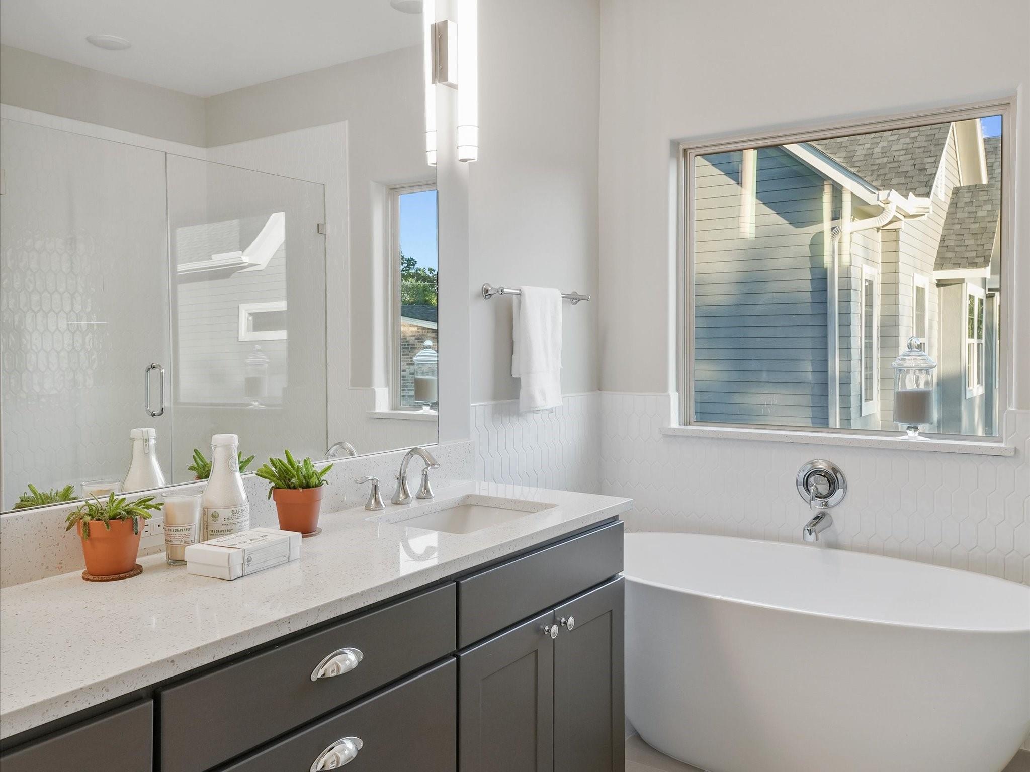 The very last home remaining in community! Tucked away just north of Oak Forest in the gated enclave of Highland Heights by renowned 4th generation builder Farb Homes, this freestanding residence offers elevated design and craftsmanship rarely seen! Featuring 3 bedrooms, 2.5 baths and desirable first-floor living, the home welcomes you with soaring ceilings and a light-filled Great Room that opens to an oversized private fenced yard. The island kitchen is appointed with quartz countertops, stainless steel appliances, soft-close cabinetry and designer finishes curated for both style and function. Upstairs, the Owners Suite impresses with a massive walk-in closet complete with built-ins and a spa-inspired bath with dual separate vanities, an elongated soaking tub and frameless glass shower. 2 spacious guest rooms, a full bath & utility room complete the level. Clean architectural lines, quality construction and a thoughtful layout create a home that stands apart. Move-In Ready!