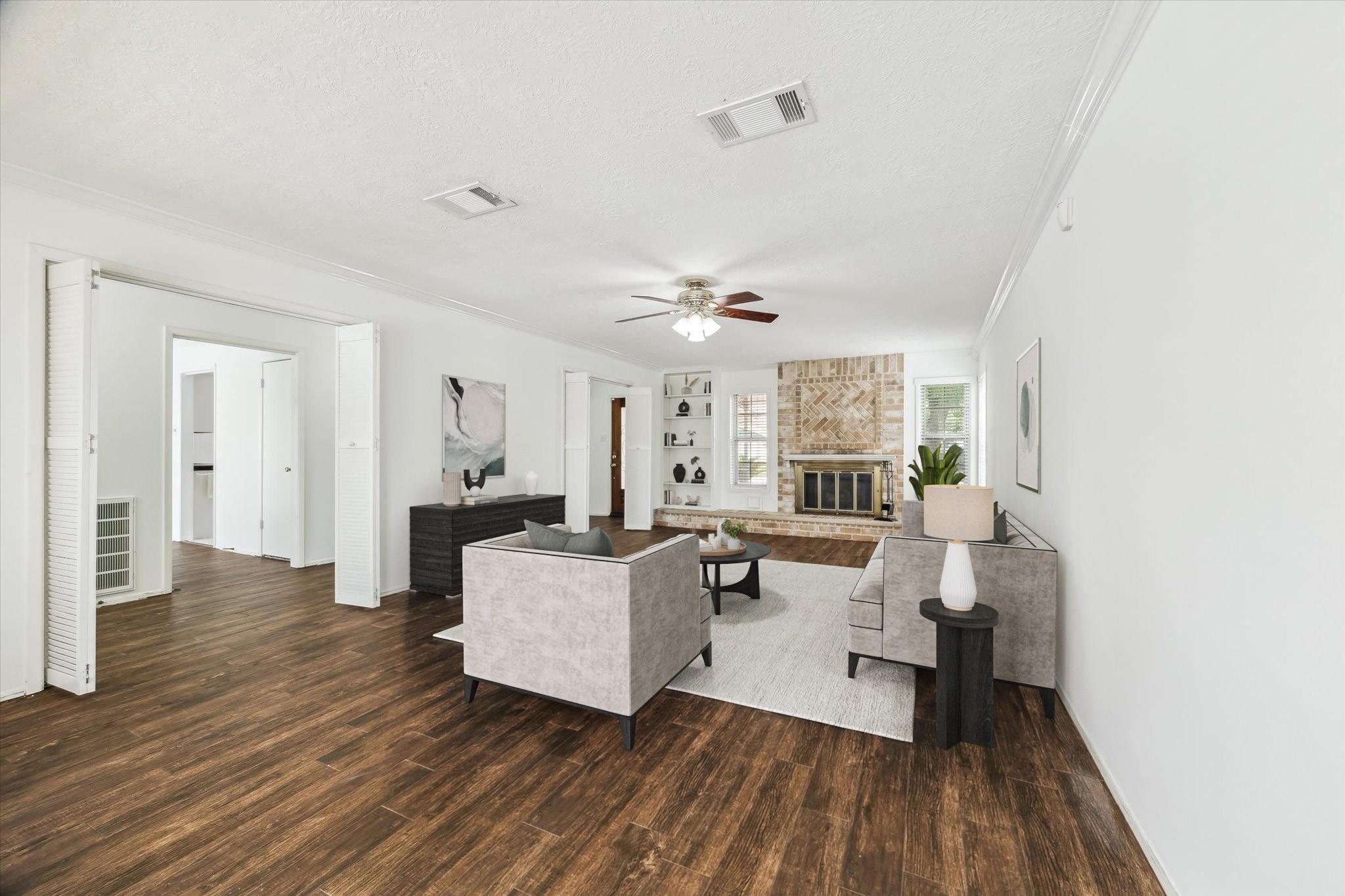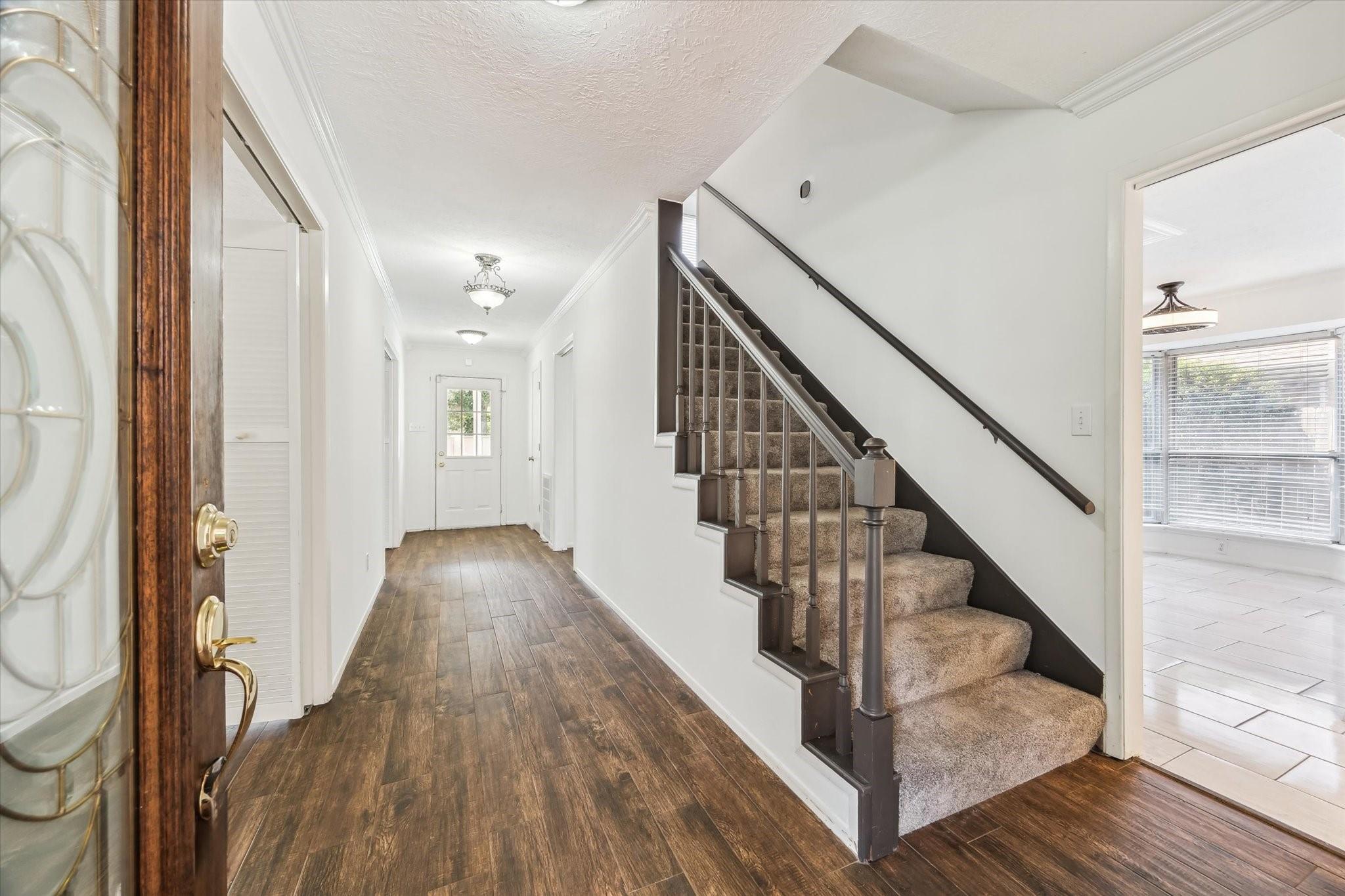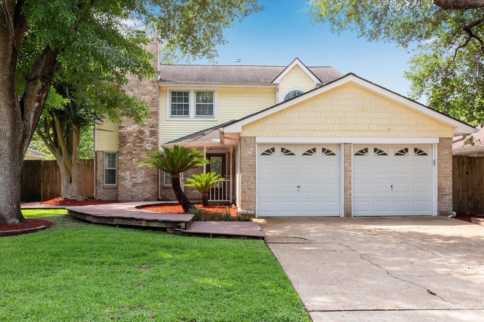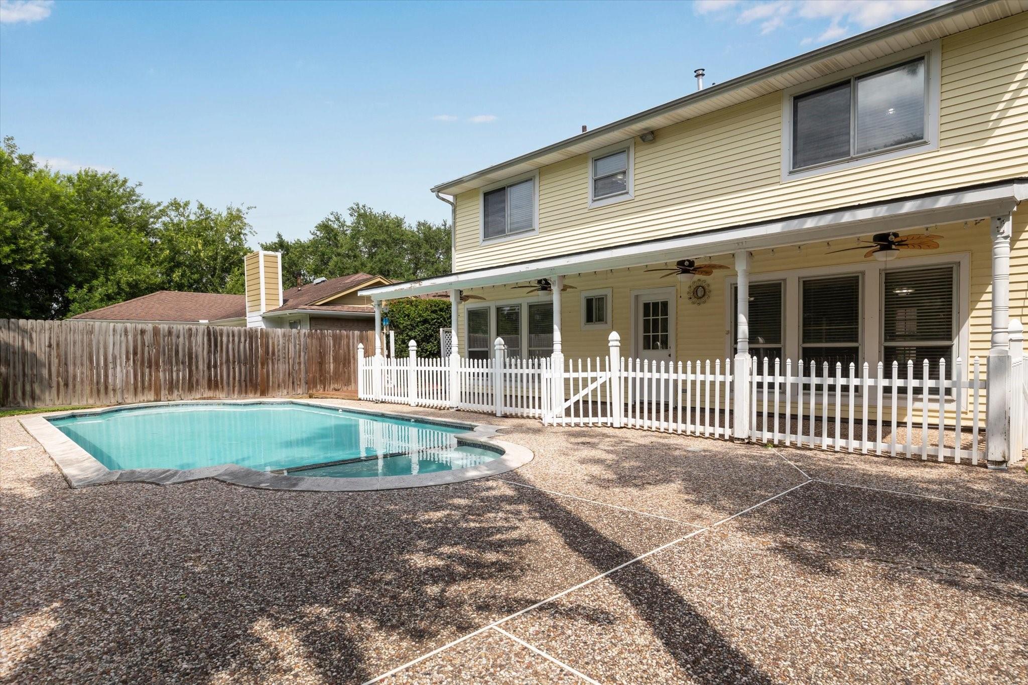 Welcome to your oasis in Meadow Green, nestled in the heart of Clear Lake City! This spacious 4-bedroom, 2.5-bathroom home offers the perfect blend of comfort, functionality, and outdoor enjoyment. Located near Hwy 3 with easy access to Beltway 8 and I-45, commuting is a breeze while still enjoying a peaceful neighborhood setting. Step inside to discover a thoughtfully designed layout featuring formal living and dining areas, a cozy gas log fireplace, and a sunny breakfast area just off the kitchen. Upstairs, you’ll find warm wood flooring throughout and cedar-lined closets in the guest bedrooms. The spacious primary suite boasts two walk-in closets and an ensuite bath with double sinks for added convenience. Enjoy Texas summers in your private in-ground pool, with a covered back porch and multiple ceiling fans making outdoor entertaining easy and comfortable. The 2-car garage offers ample storage, and Krueger Park is just a short walk away for even more outdoor fun.