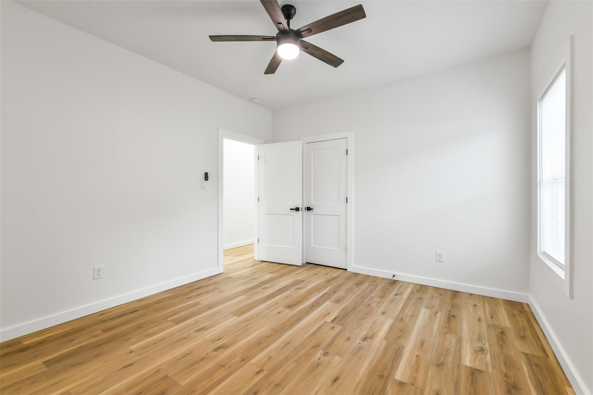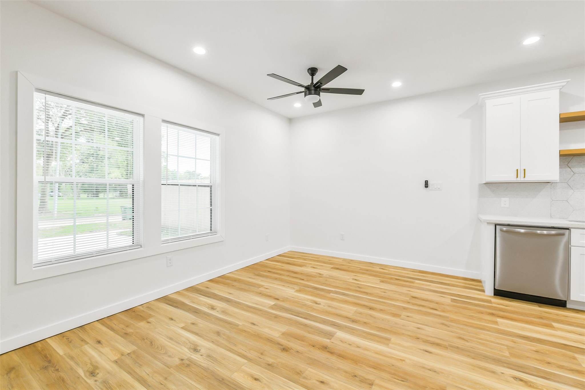 Newly remodeled duplex featuring 3 bedrooms and 2 baths per unit - Unit 1 offers approximately 1,376 sq. ft. and Unit 2 offers 1,365 sq. ft. Each unit features spacious open-concept layout with recessed lighting, plank flooring, and large glass windows. The modern kitchen features granite countertops, backsplash, and updated fixtures. Each of the three bedrooms includes its own walk-in closet. The primary suite offers an en-suite bath with dual sinks and vanity, an enclosed tiled shower area, and elegant fixtures and hardware. Each unit also has its own laundry area and access to a fully fenced backyard. This is a great opportunity for owner-occupants or investors seeking rental income. Schedule your showing now!