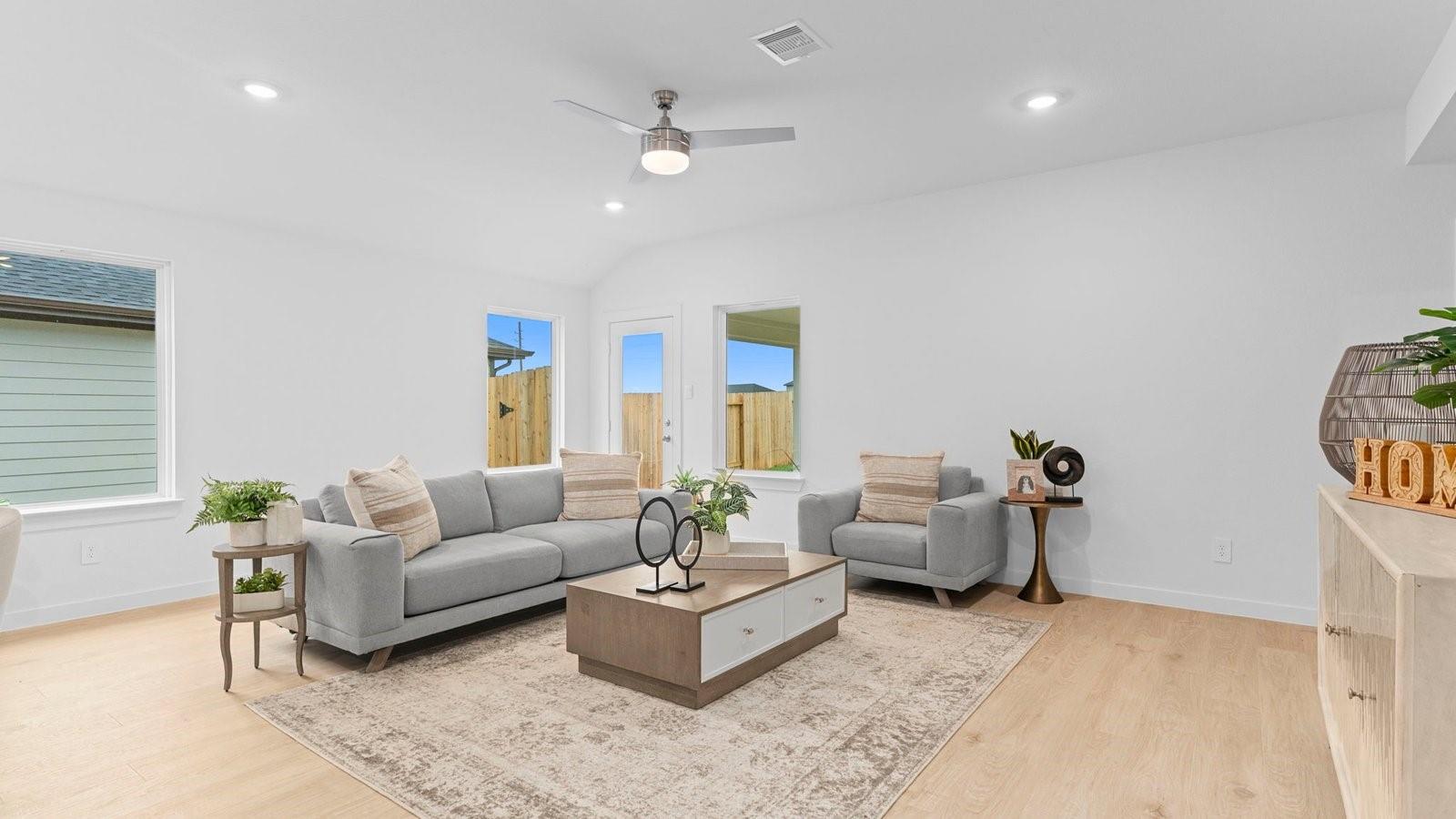 EST. COMPLETION DATE APRIL 2026. Welcome to the Lakeway, one-story home featuring 4 bedrooms, a study room, 3 bathrooms, and a 2-car garage. The foyer opens to a guest bedroom with a full bath, a private study. The open-concept kitchen offers a large breakfast bar, beautiful countertops, and stainless-steel appliances, flowing seamlessly into the family and dining area. 2 additional bedrooms and a shared bathroom are located off the main living area. The primary suite includes a stylish bath with dual vanities, standing shower and a spacious walk-in closet. Vinyl flooring is featured throughout the main living areas. Step outside to enjoy the covered patio just off the family room. Enjoy Emberly, a master-planned community featuring The Haven Amenity Village, that includes a clubhouse with fitness center, outdoor courtyard, resort-style pool, water park with splash pad, event lawn, playground, pickleball court, sand volleyball court, dog park, hike/bike trails, and more!