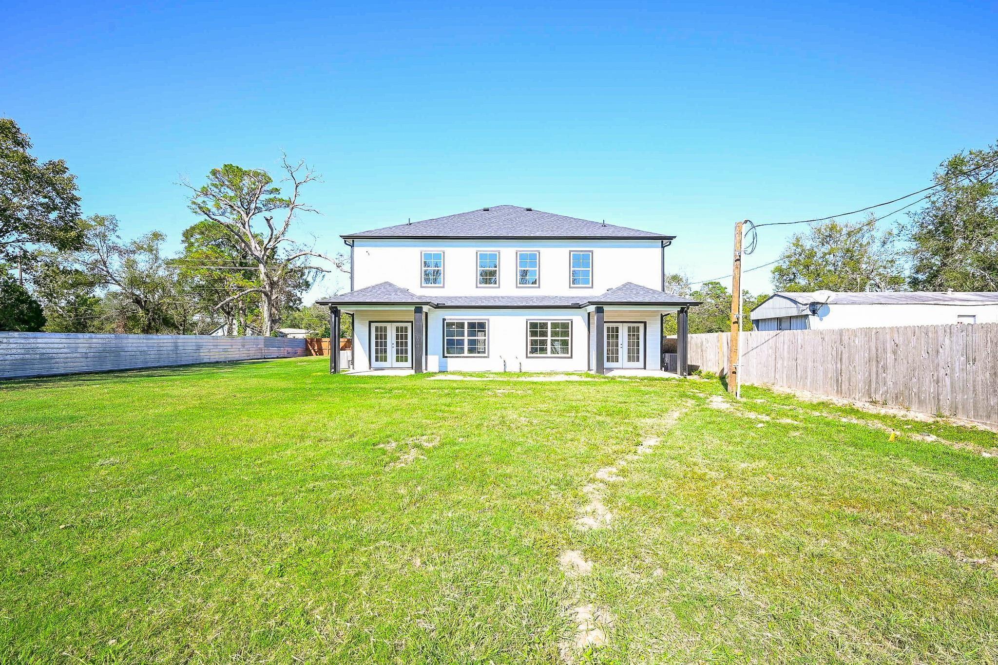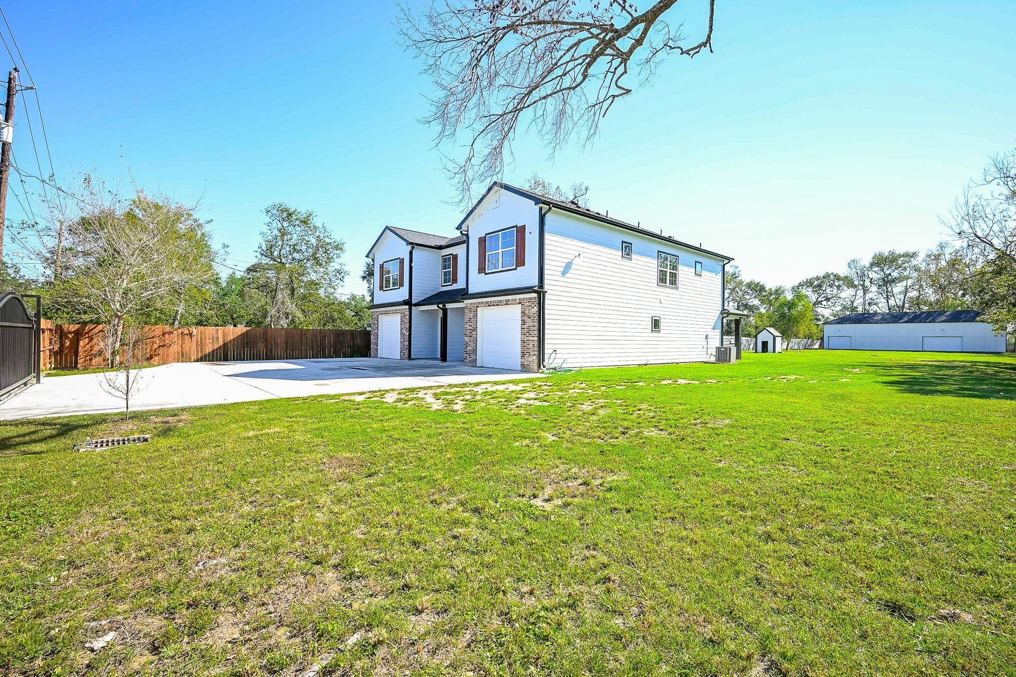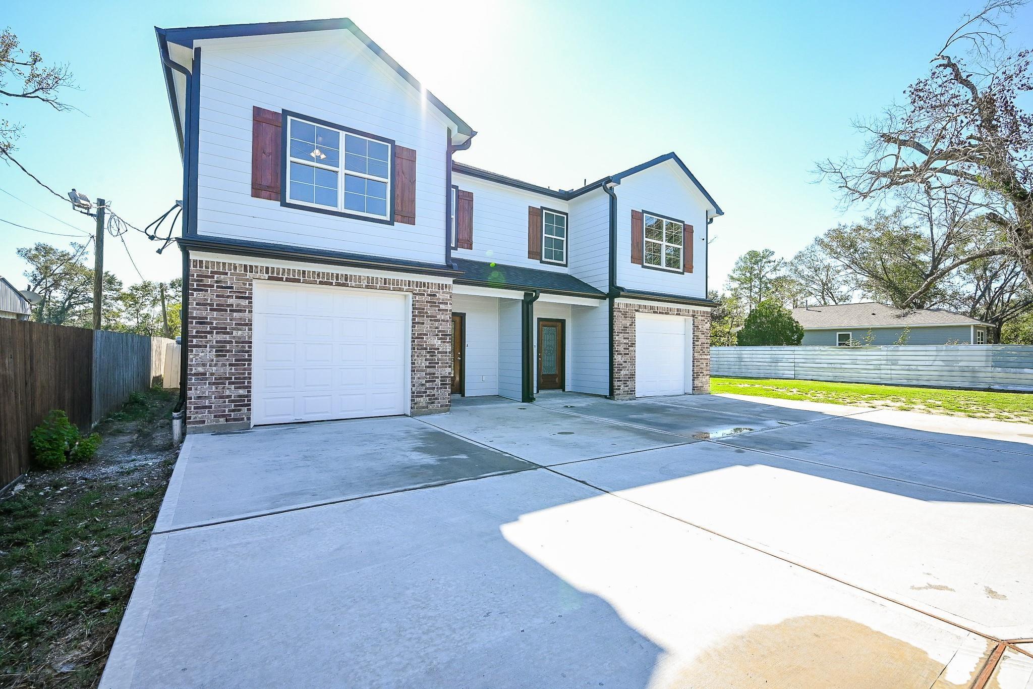 Welcome to this newly constructed duplex, offering the perfect blend of classic charm & contemporary living. Each unit is 2,229 sqft with 3 bedrooms & 2 1/2 bathrooms. Both units offer modern kitchens adorned with sleek granite countertops, backsplash, beautiful island with breakfast room, stainless steel appliances, modern cabinets & a walk-in pantry. Open concept with french doors overlooking the covered patio for family gatherings. Tile & laminate flooring, recessed lighting, lots of natural light throughout. Upstairs you will find the master bedroom featuring an en-suite bathroom with double sinks, a glass door shower, & a walk-in closet. 2-spacious rooms with a jack & jill bathroom, all rooms feature ceiling fans. This versatile property is situated on an oversized lot that comes with a 4,000 sqft metal storage building that could serve as a storage facility, a work shop or for various purposes. Perfect for living in one unit and renting out the other, or as a complete investment.