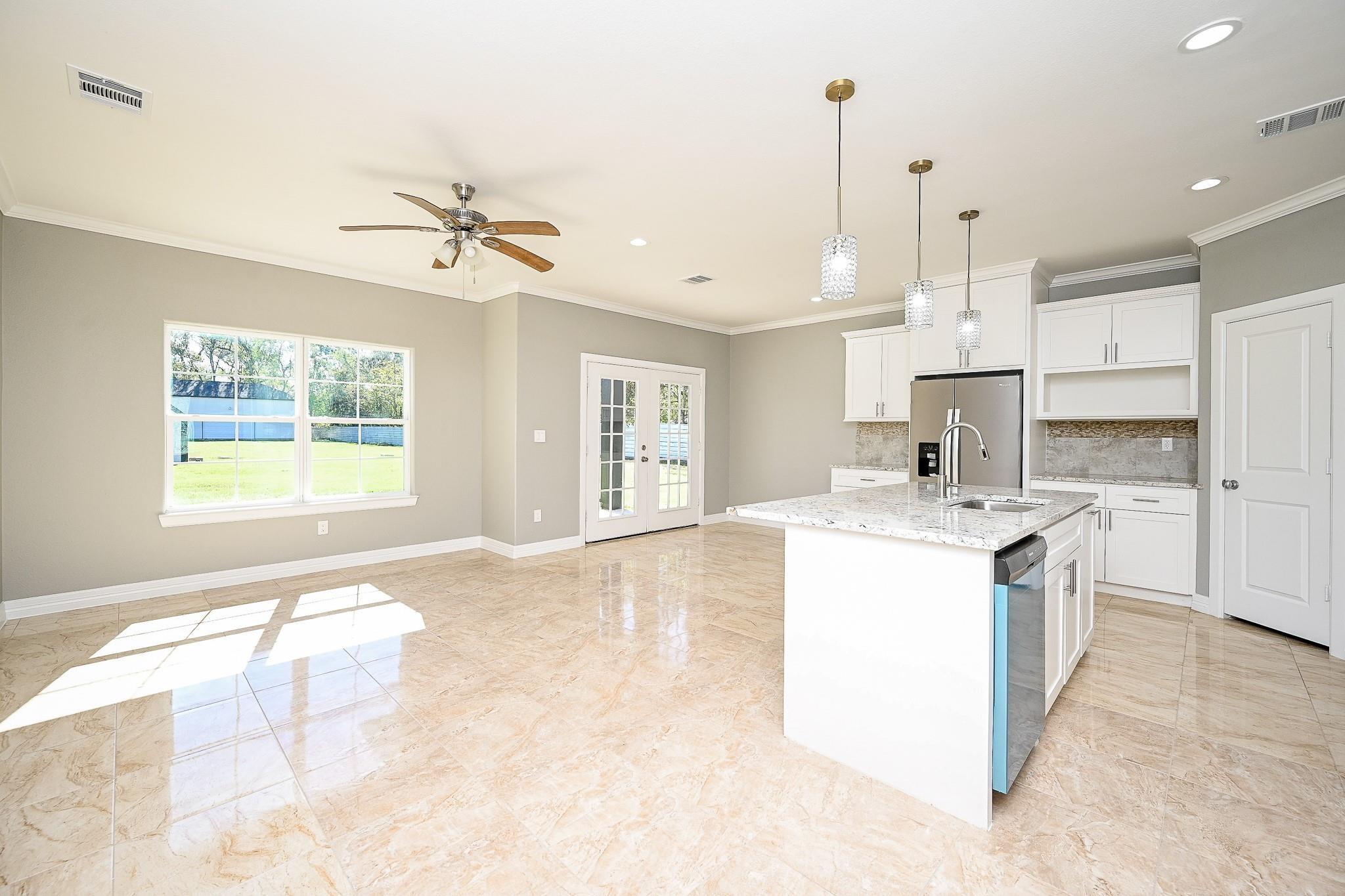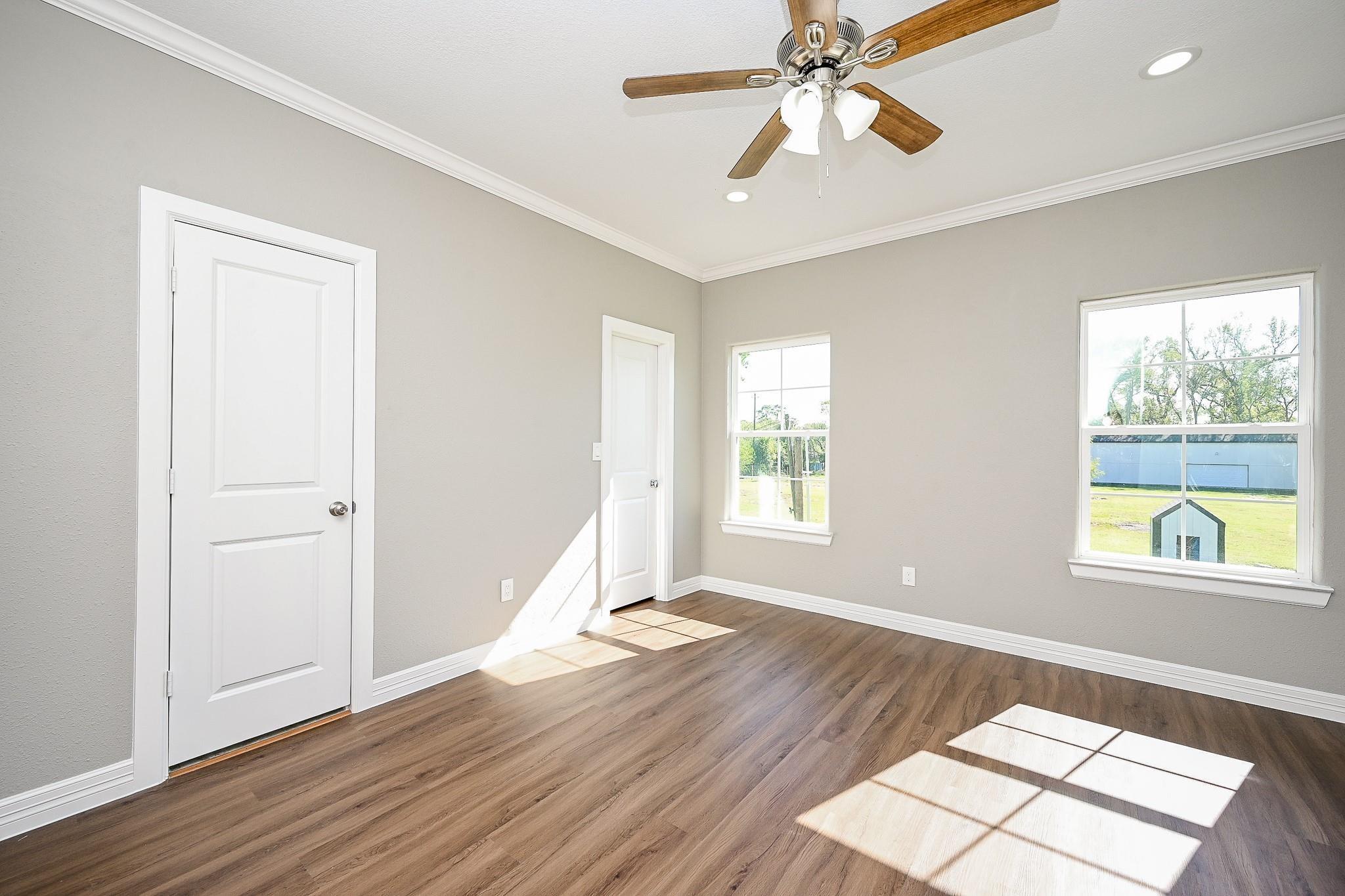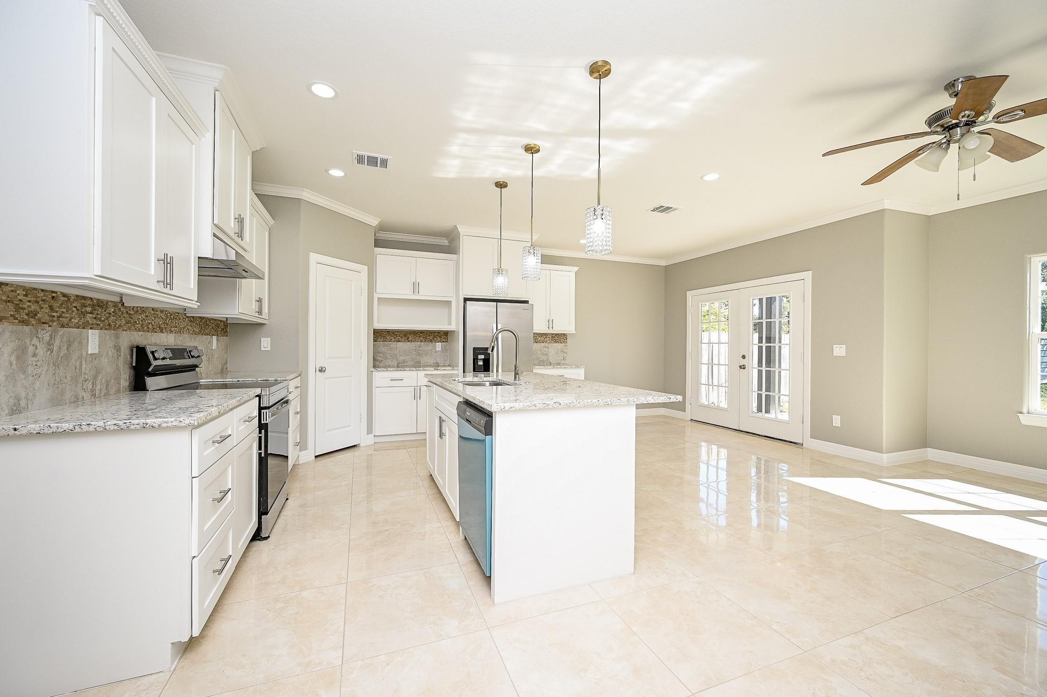 Welcome to this newly constructed duplex, offering the perfect blend of classic charm & contemporary living. Each unit is 2,229 sqft with 3 bedrooms & 2 1/2 bathrooms. Both units offer modern kitchens adorned with sleek granite countertops, backsplash, beautiful island with breakfast room, stainless steel appliances, modern cabinets & a walk-in pantry. Open concept with french doors overlooking the covered patio for family gatherings. Tile & laminate flooring, recessed lighting, lots of natural light throughout. Upstairs you will find the master bedroom featuring an en-suite bathroom with double sinks, a glass door shower, & a walk-in closet. 2-spacious rooms with a jack & jill bathroom, all rooms feature ceiling fans. This versatile property is situated on an oversized lot that comes with a 4,000 sqft metal storage building that could serve as a storage facility, a work shop or for various purposes. Perfect for living in one unit and renting out the other, or as a complete investment.
