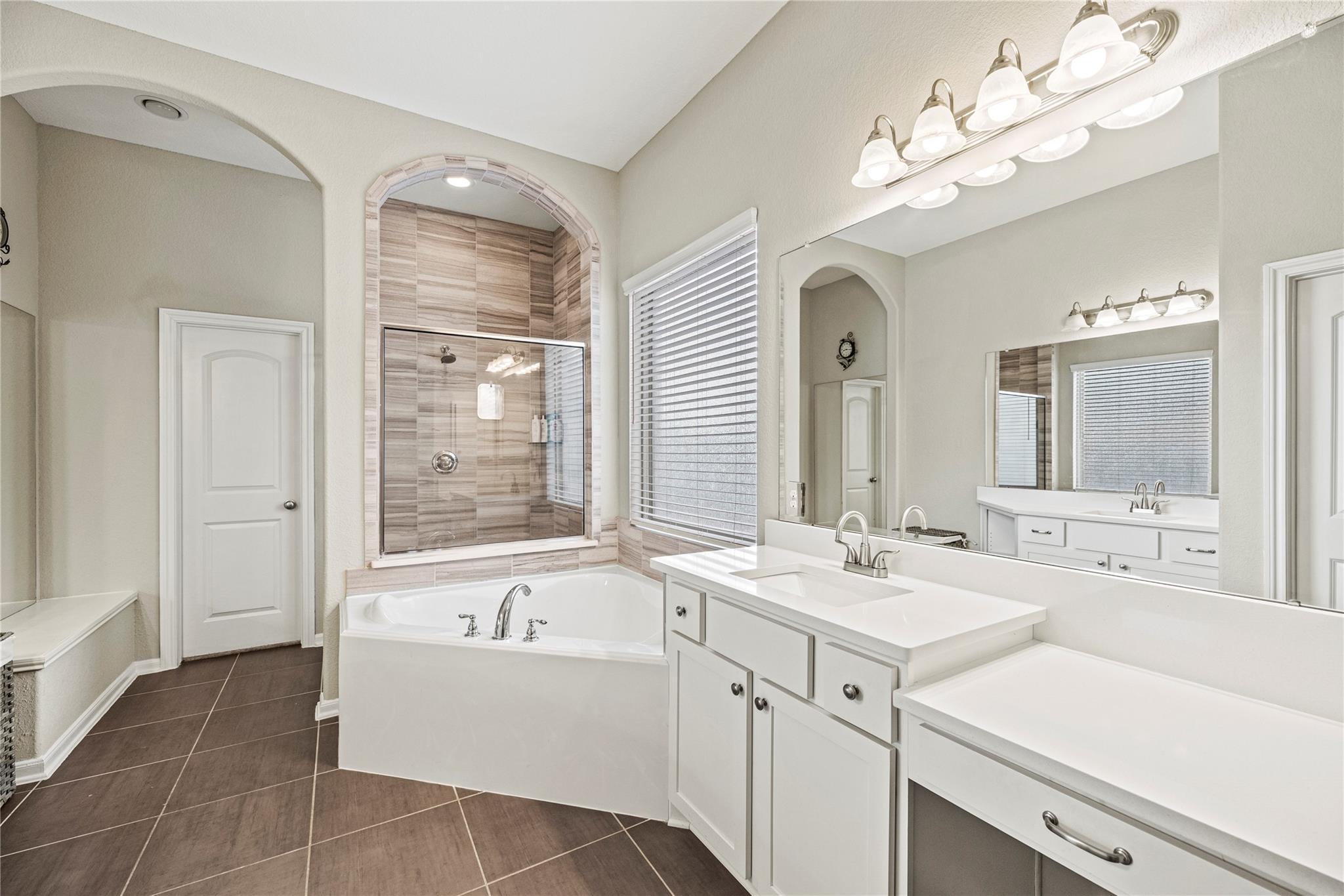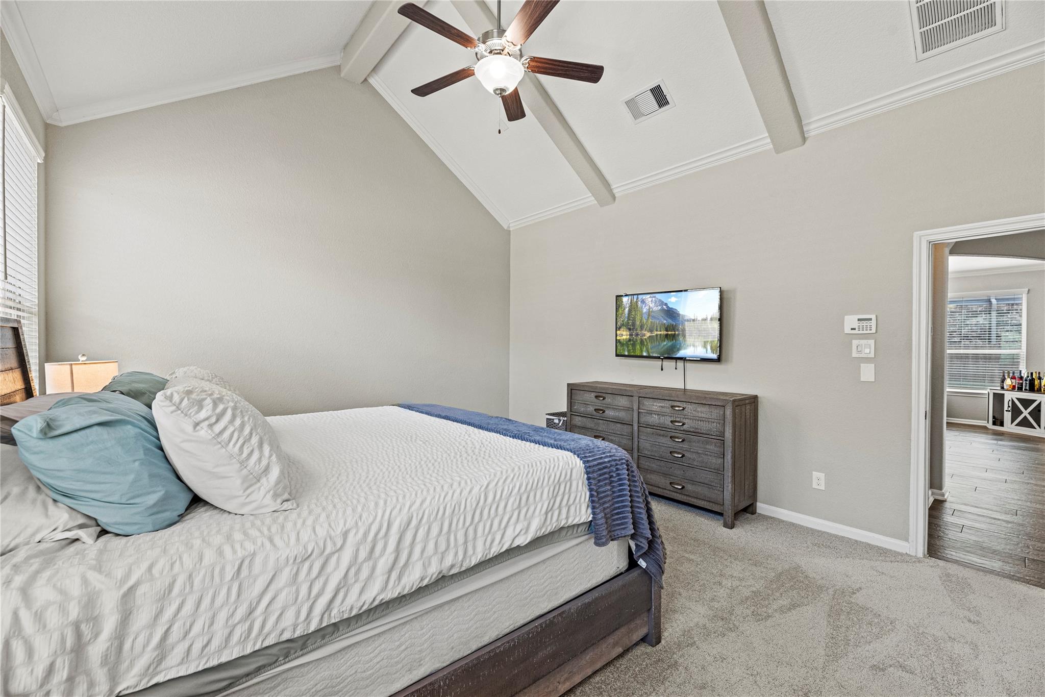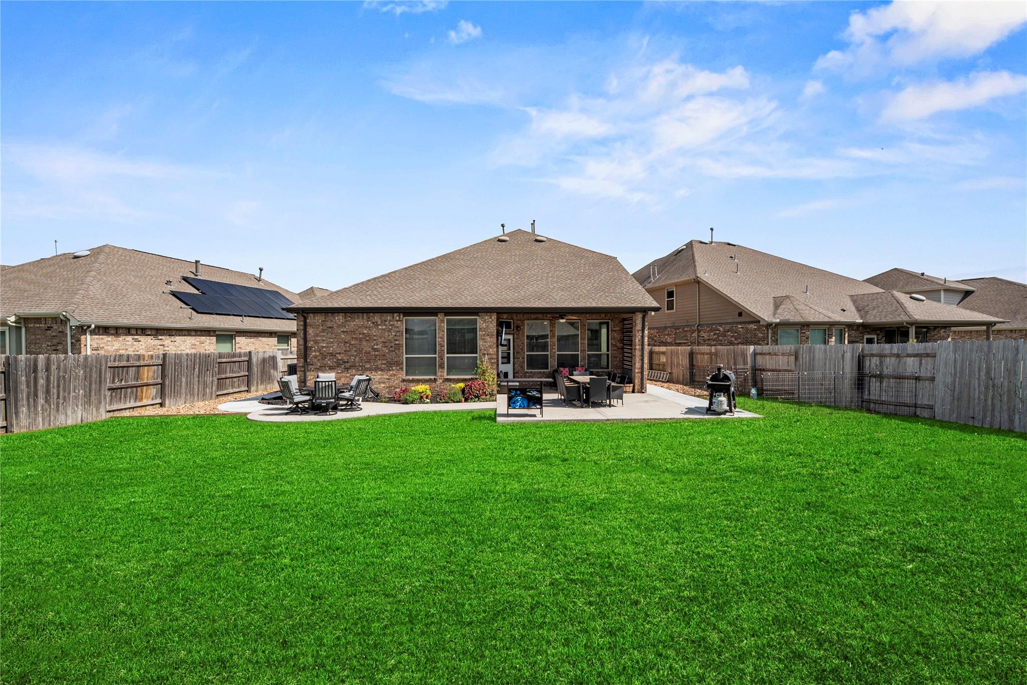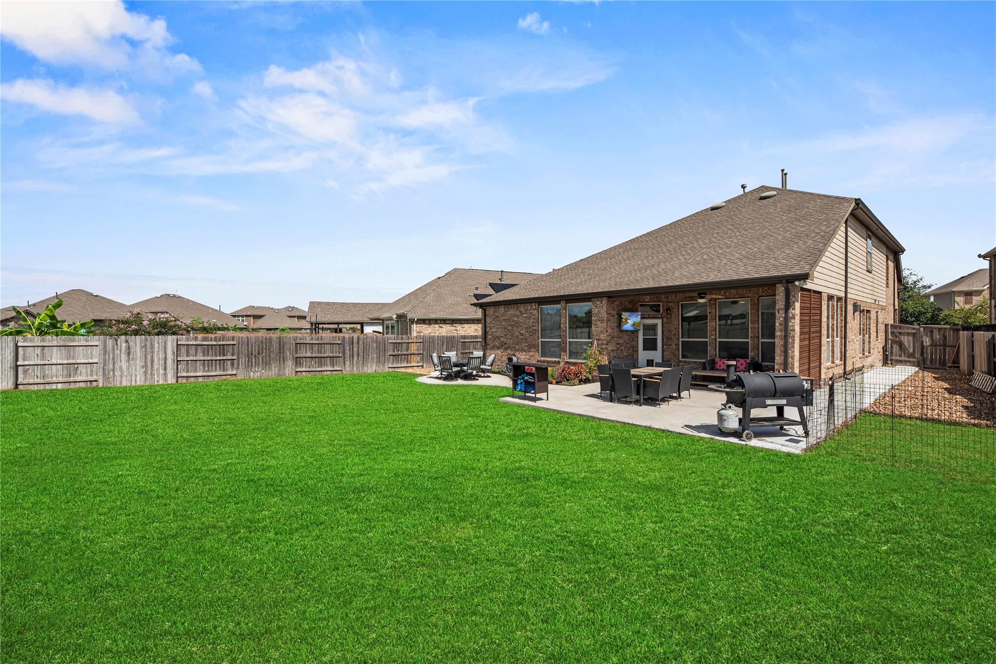 Experience refined living in this exquisite two-story residence nestled on an oversized deep lot. Boasting a coveted floor plan, this home offers 4 spacious bedrooms and 3 full baths, including a luxurious primary suite and a secondary bedroom on the main level. Upstairs, discover two additional bedrooms, a full bath, and a grand gameroom perfect for entertaining. Designer wood-look tile floors grace the lower level, complemented by brand-new plush carpet in the primary bedroom, stairs and second floor level. A striking rock fireplace anchors the elegant living space, while the outdoor covered patio invites serene outdoor gatherings. Enhanced with an extended concrete patio and walkway, mudroom nook, and under-stair storage, every detail reflects thoughtful craftsmanship. From its elevated finishes to its expansive layout, this home is a true showcase of style and sophistication—gorgeous inside and out and zoned to the coveted Katy ISD.