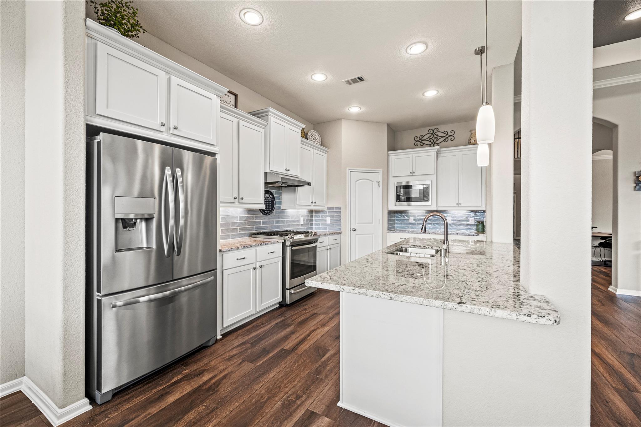 InteriorFireplace:1/Gas ConnectionsFloors:Carpet,TileBathroom Description:Full Secondary Bathroom Down,Primary Bath: Double Sinks,Primary Bath: Separate Shower,Primary Bath: Soaking TubBedroom Desc:2 Bedrooms Down,Primary Bed - 1st Floor,Walk-In ClosetKitchen Desc:Breakfast Bar,Island w/o Cooktop,Kitchen open to Family Room,Under Cabinet Lighting,Walk-in PantryRoom Description:Breakfast Room,Entry,Family Room,Formal Dining,Gameroom Up,Kitchen/Dining Combo,Living Area - 1st Floor,Utility Room in HouseHeating:Central GasCooling:Central ElectricConnections:Electric Dryer Connections,Washer ConnectionsDishwasher:YesDisposal:YesCompactor:NoMicrowave:YesRange:Gas RangeOven:Gas OvenIce Maker:NoEnergy Feature:Attic Vents,Ceiling Fans,Digital Program Thermostat,High-Efficiency HVAC,Insulated/Low-E windows,Radiant Attic BarrierInterior:Alarm System - Owned,Fire/Smoke Alarm,Formal Entry/Foyer,High Ceiling,Window Coverings