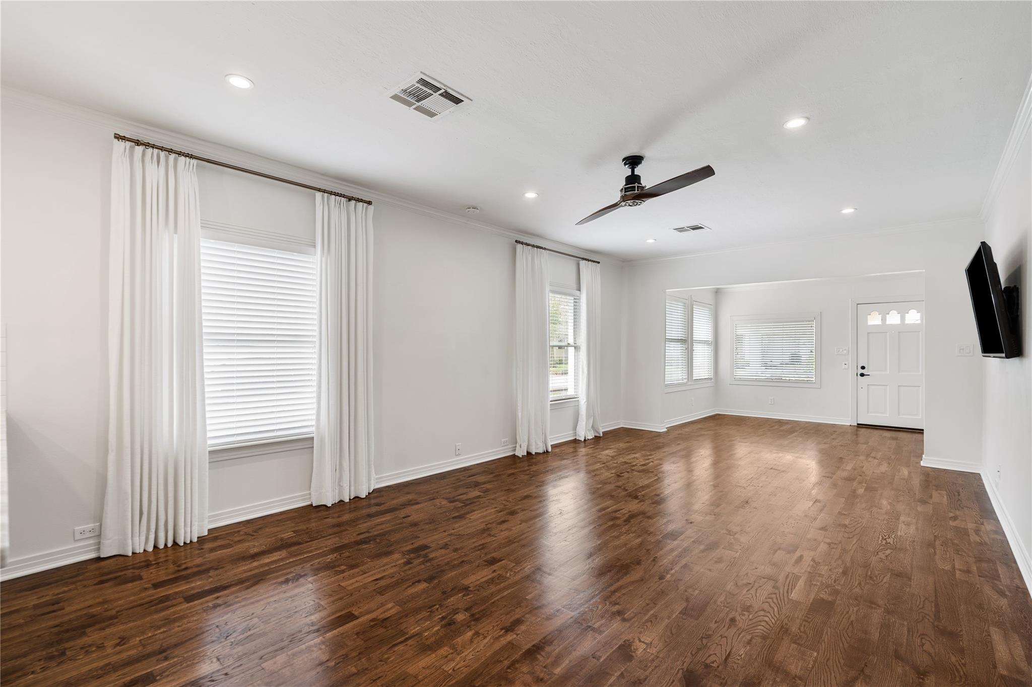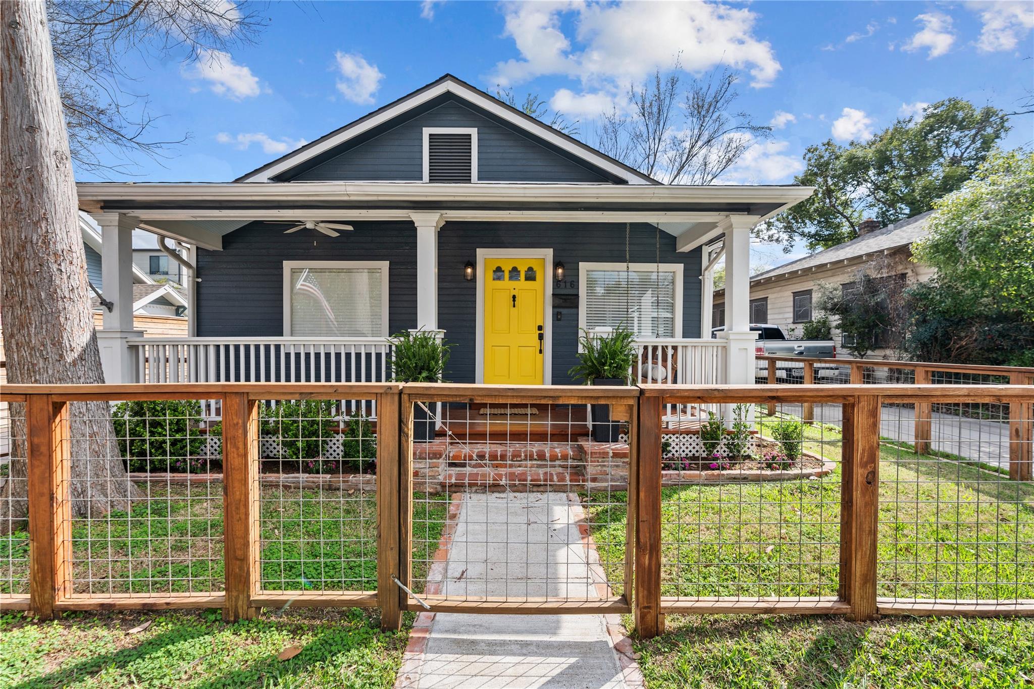 Updated Woodland Heights Bungalow with Garage Apt - Two bedrooms and two full baths PLUS a 779 sq/ft 1 bedroom garage apartment, not included in square footage! Home was completely updated in 2018. Open kitchen with quartzite counters overlooks the living and dining, perfect for entertaining. An additional bonus area can be an office or play space. Wood floors throughout, additional features include a master with en-suite bath and walk-in closet. Backyard retreat with large deck (with views of downtown skyline), ideal for Lights In the Heights parties. The garage apartment features two living areas, a separate bedroom, full kitchen, full bath, utility room, walk-in closet, and balcony! The garage apartment is perfect for visiting guests or a successful rental. HUGE garage includes storage room and a workshop. Uniquely situated in the heart of Woodland Heights, yet not bound by historic restrictions. Located near hike/bike trail, White Oak restaurants/bars PLUS zoned to Travis Elem.