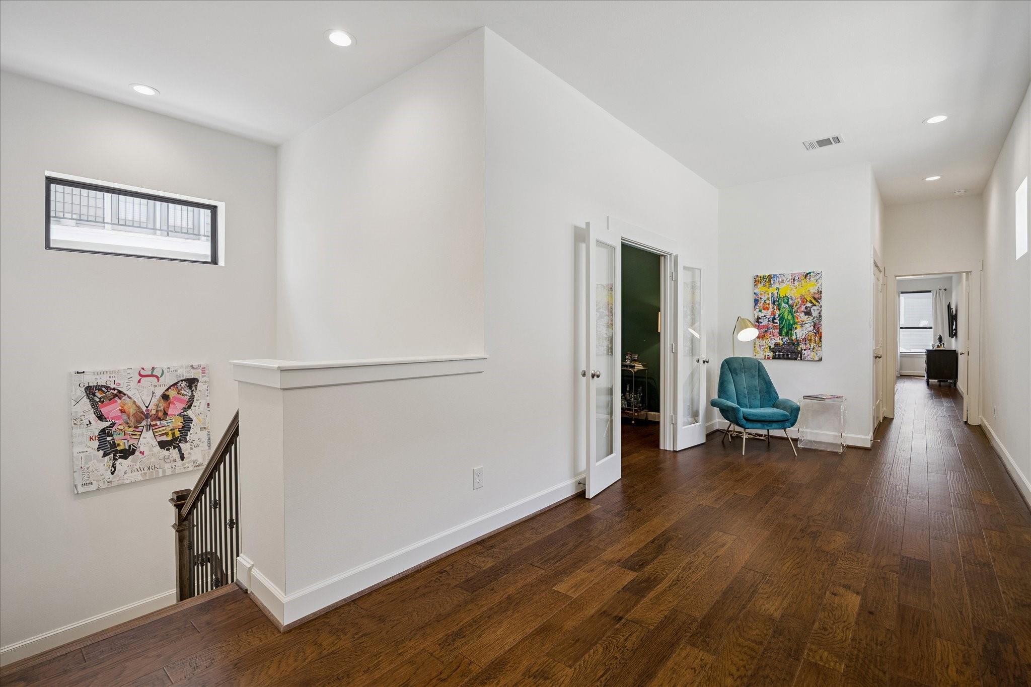 Welcome to 618 E 28th Street, a thoughtfully updated two-story home offering coveted first-floor living in the heart of the Heights. The light-filled, open-concept layout features hardwood floors, high ceilings, and seamless flow between the living, dining, and kitchen spaces. The chef’s kitchen is both stylish and functional with expanded cabinetry, a dedicated bar area, quartz island, stainless steel appliances, and dual ovens, all overlooking the private, turfed backyard. Upstairs, the primary suite is a relaxing retreat with a tray ceiling, walk-in closet, and spa-inspired bath featuring a soaking tub and glass-enclosed shower. Two secondary bedrooms share a full bath, while the former game room has been converted into a private office with custom built-ins. Additional highlights include plantation shutters, a first-floor powder bath, upstairs flex space, a low-maintenance yard, and a two-car garage—ideally located near the Heights’ popular dining, shopping, and trail systems