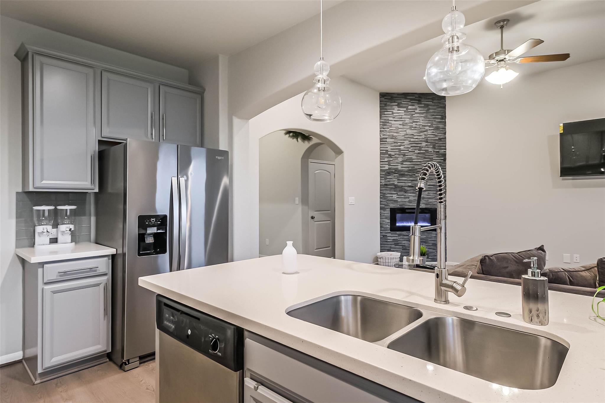 InteriorFireplace:1/Electric FireplacePets:NoSmoking Allowed:NoFloors:Carpet,Tile,Vinyl PlankCountertop:QuartzBathroom Description:Primary Bath: Double Sinks,Primary Bath: Separate ShowerBedroom Desc:All Bedrooms DownKitchen Desc:Breakfast Bar,Kitchen open to Family Room,PantryRoom Description:1 Living Area,Breakfast Room,Home Office/Study,Living Area - 1st FloorHeating:Central GasCooling:Central ElectricConnections:Electric Dryer Connections,Washer ConnectionsDishwasher:YesDisposal:YesMicrowave:YesRange:Freestanding Range,Gas RangeOven:Gas OvenIce Maker:NoAppliances:Dryer Included,Electric Dryer Connection,RefrigeratorEnergy Feature:Attic Vents,Ceiling Fans,Digital Program Thermostat,High-Efficiency HVAC,HVAC>13 SEER,Insulated/Low-E windows,Insulation - Blown Fiberglass,Radiant Attic BarrierInterior:Fire/Smoke Alarm,Refrigerator Included,Washer Included