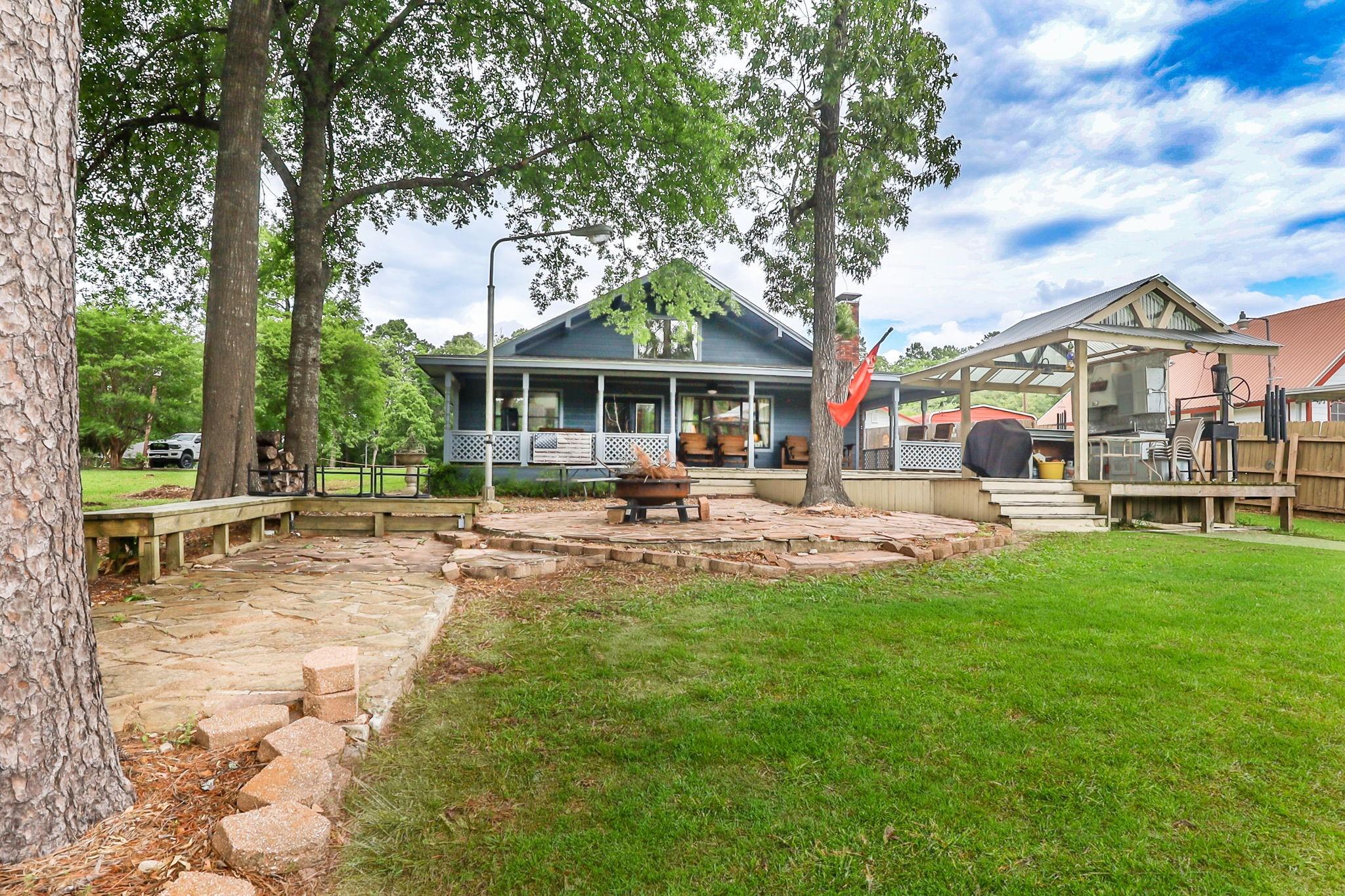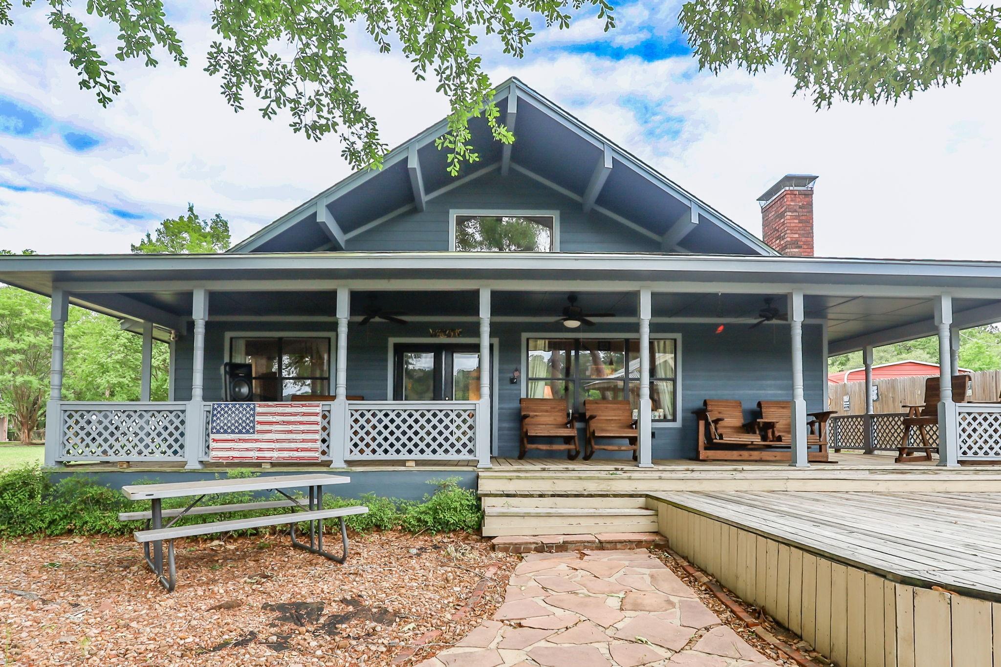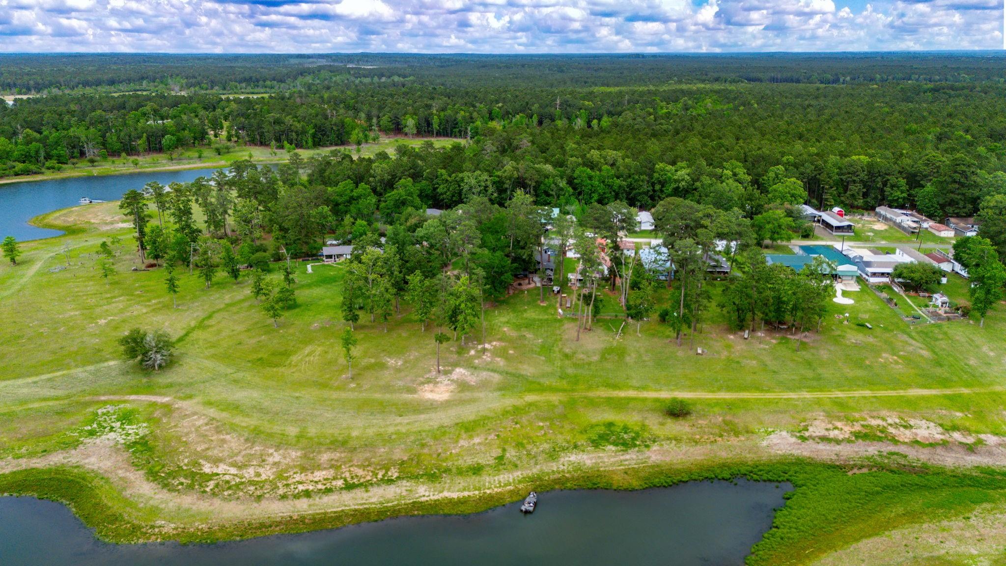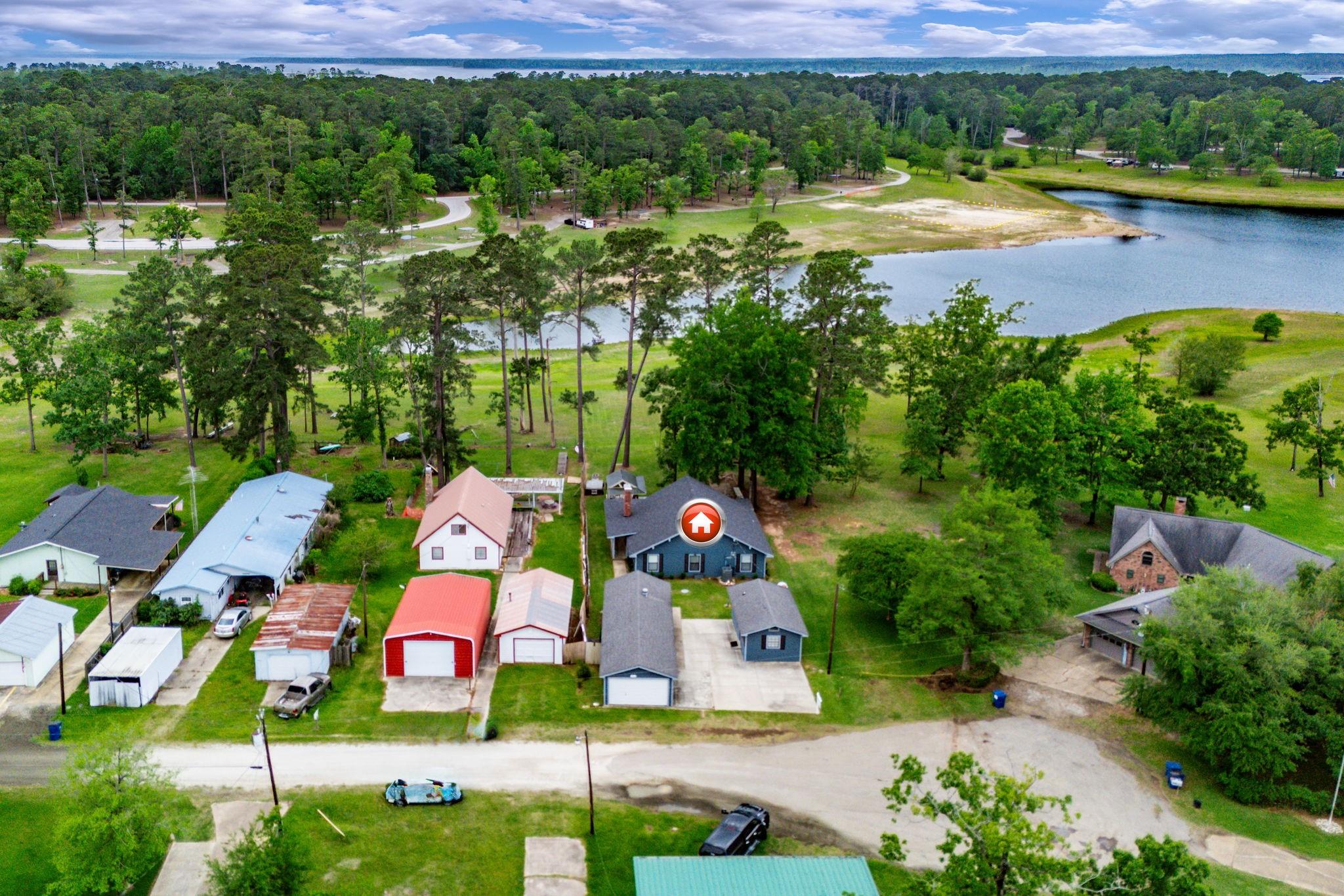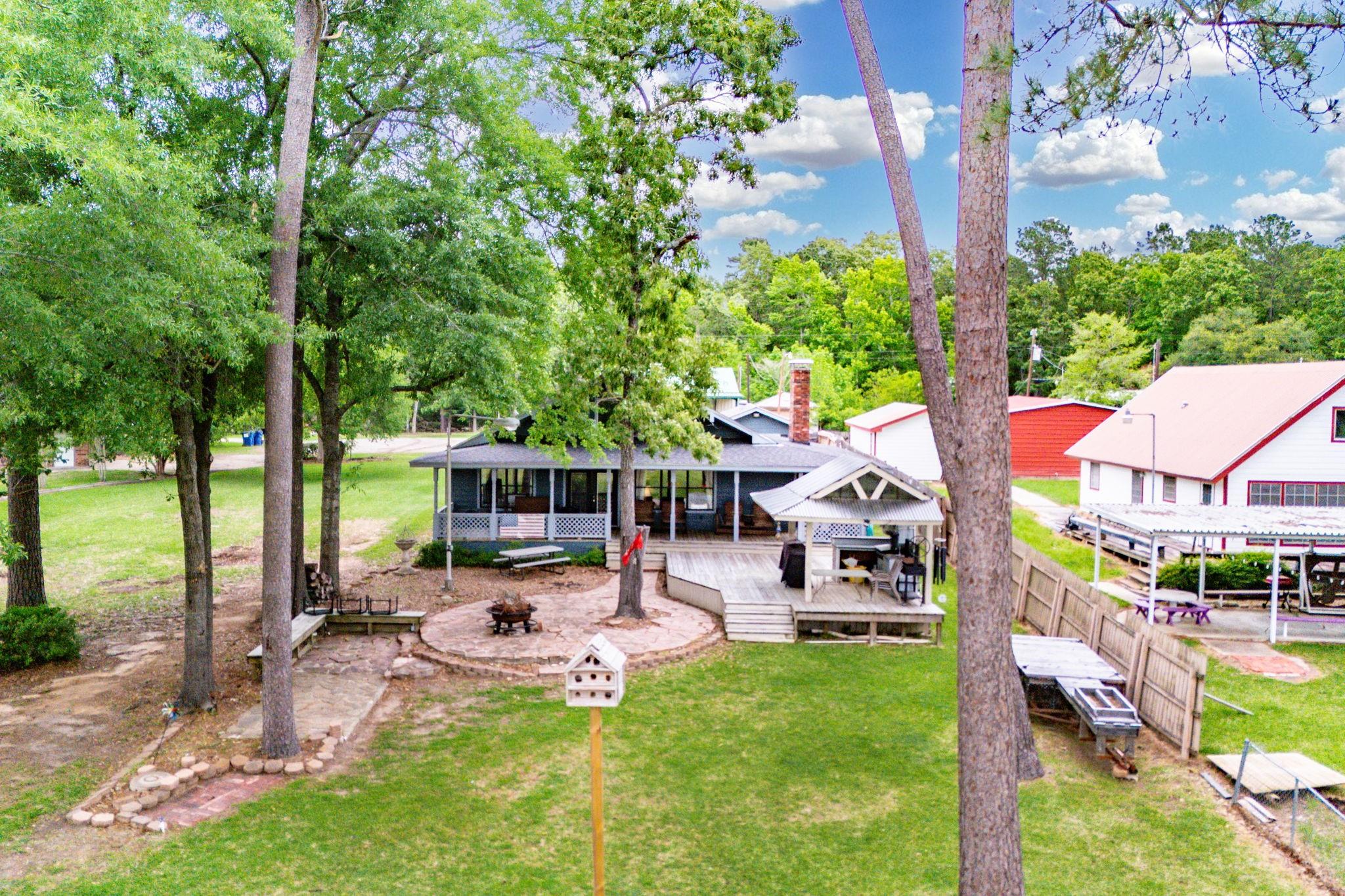 LAKEFRONT property on the shores of Lake Sam Rayburn. Stunning sunrise & sunsets! Versatile use as a weekend getaway, full-time residence, or income-producing investment. The main living area features soaring ceilings & open layout. A private guest house with full bathroom and wall Air Conditioner adds flexibility for visitors or potential rental income! Expansive Lake views from the large deck, complete with an outdoor kitchen and bar—ideal for gatherings by the water. Conveniently located around the corner from San Augustine Park, offering easy access for boat launching. This home is a must see. Check out the video! Start making memories! Removable dock stays with property & No HOA The Main home is 2,080 sq ft & Guest house is 368 sq feet... Total of 2,448 sq feet FULLY FURNISHED - Move In Ready & for a peace of mind it comes with a Generac Generator. Excluded in the sale: Outside wood patio furniture & bbq pit & Half table w/ Lamb on it & Small refrigerator in garage