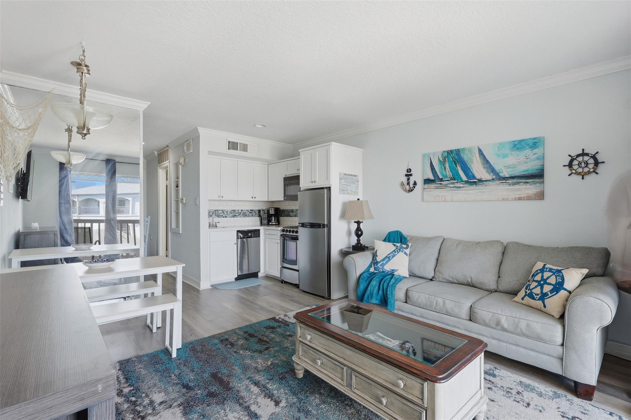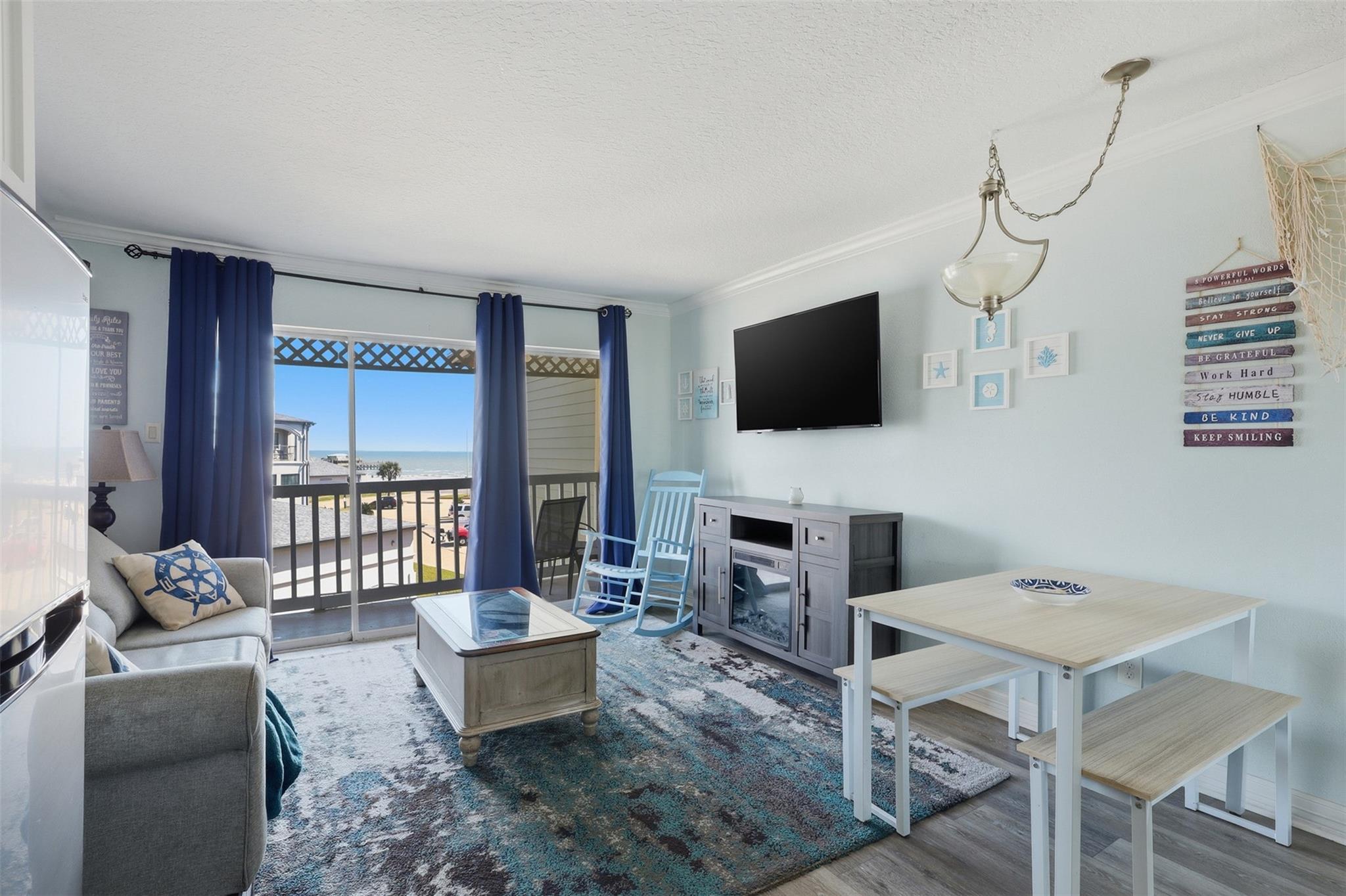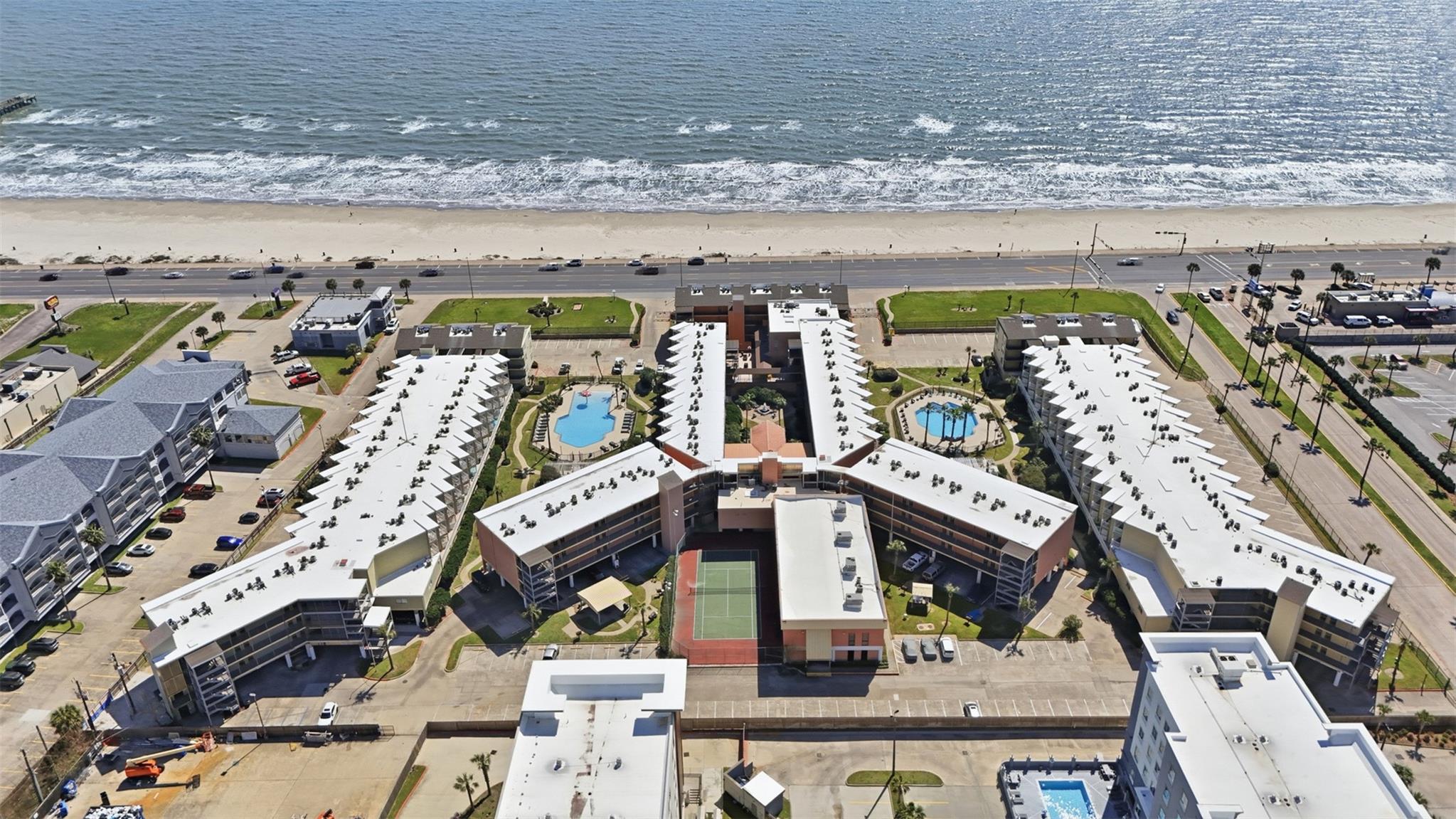 Imagine owning a charming coastal retreat on beautiful Galveston Island — a turnkey condo designed for relaxing beach escapes, weekend getaways, or lucrative vacation rentals. The private bedroom offers a peaceful retreat, while built-in bunk beds tucked into the hallway alcove provide the perfect spot for kids or extra guests. An open living area to comfortably accommodate family and friends. Step outside onto your private balcony and enjoy breathtaking Gulf views. Positioned directly across the street from the beach and overlooking the pool and hot tub, you can sip your morning coffee while watching the sunrise over the water and unwind during the day. Located along the famous Seawall corridor, this condo places you minutes from top attractions including Moody Gardens, Galveston Island Historic Pleasure Pier, fishing piers, water parks, and miles of shoreline. Restaurants, beach bars, shopping, and entertainment are all within easy reach. Furniture, appliances, and decor included.