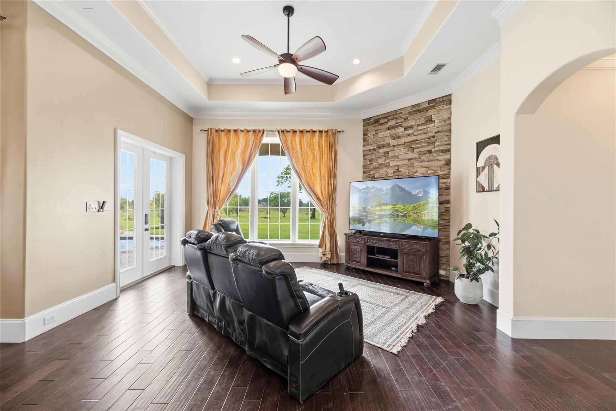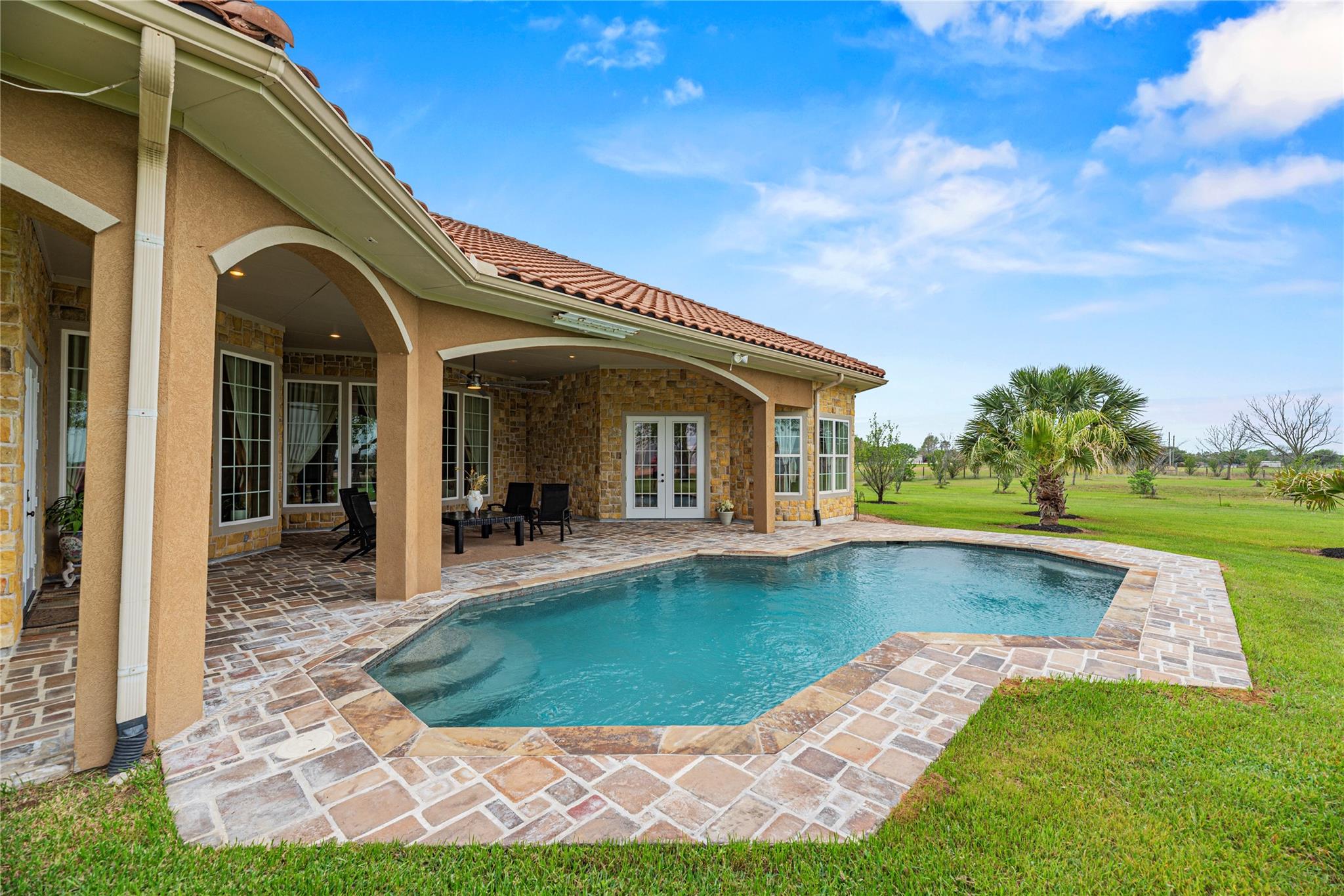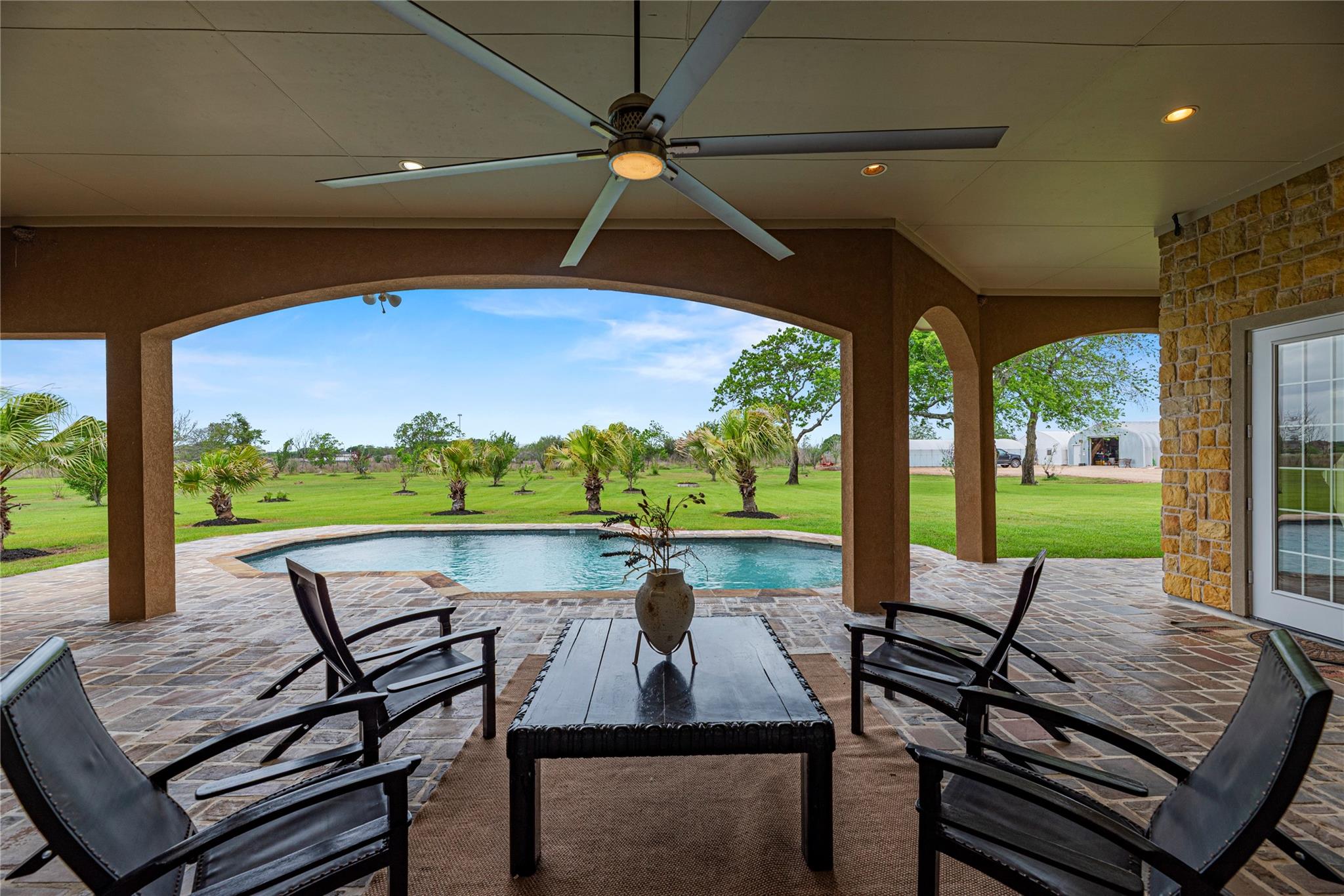 This prestigious 12.6-acre Fulshear sanctuary is where sophisticated ranch architecture meets world-class engineering. Designed for those who value both beauty and performance, this custom-built ICF fortress features R-50 equivalent insulation, 200 mph wind-rated walls, and a 50-year concrete tile roof for ultimate durability. The property is powered by a 19.2 kW solar array and a 30.5 EER geothermal HVAC system, supported by a 20 kW automatic backup generator and a 500-gallon buried propane tank. Inside, high ceilings and rich engineered wood floors flow into a gourmet kitchen with custom cabinets, granite countertops, and a spacious island. The private primary suite offers a discreet safe room and pool access. Outside, enjoy 11.6 acres of agricultural-exempt land, a 1,500 sq. ft. steel barn, 1-acre stocked pond with a pier, and a resort style gunite pool. Complete with a 4-car garage, this estate is an unrivaled masterclass in luxury, security, and sustainable living.