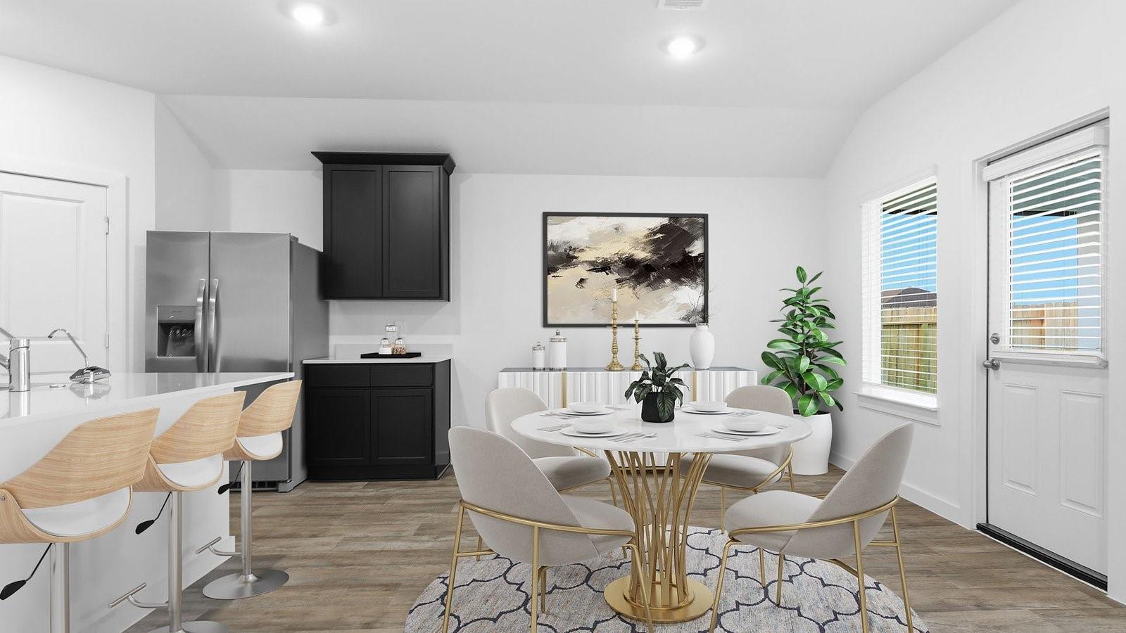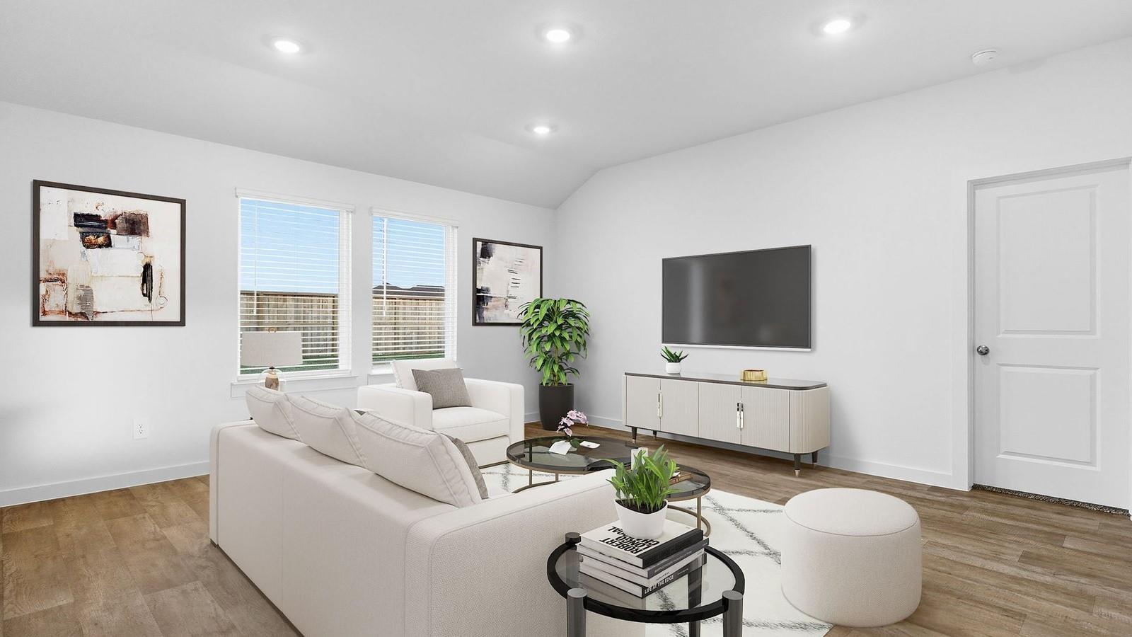 MOVE IN READY. The Cali plan is a thoughtfully designed one-story home offering 4 bedrooms, 2 bathrooms, and a 2-car garage. The gourmet kitchen features granite countertops, stainless steel appliances, and flows seamlessly into the breakfast nook and spacious family room, creating an open-concept layout perfect for everyday living and entertaining. The private primary suite includes a generous walk-in closet and a well-appointed bathroom, with the option for a separate tub and shower. A covered patio at the back of the home, located just off the family room, comes build standard—ideal for relaxing or hosting guests outdoors. Enjoy Evergreen’s amenity center with pool, playground, lakes, walking trails & pickleball courts. Close to shopping and dining at Brazos Town Center. Zoned to top-rated LCISD schools.