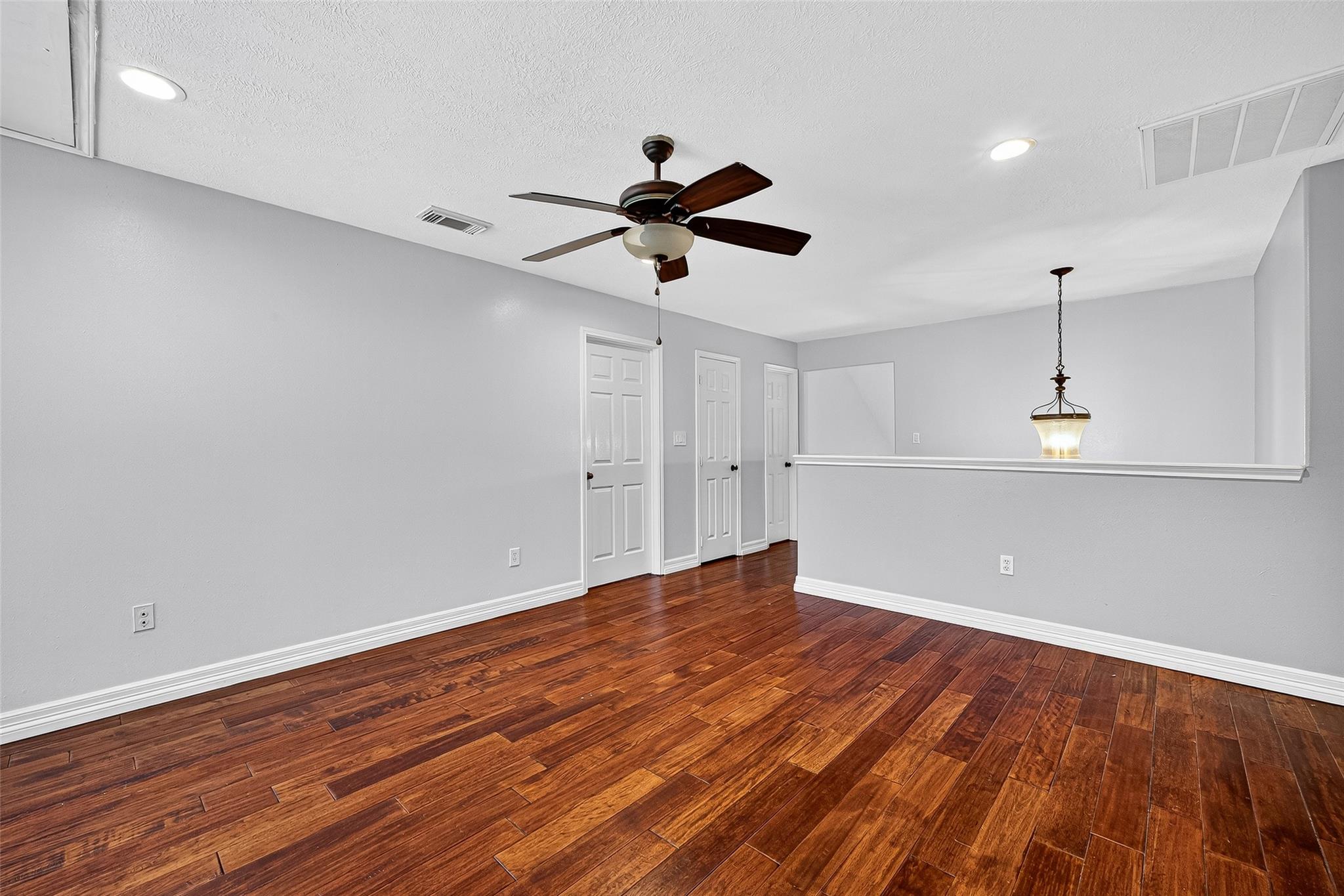 Meticulously maintained by its original owner, this 2,638-square-foot home exemplifies enduring quality and structural integrity. Rich hardwood flooring flows across the main level and upper common areas, creating warmth and continuity throughout. Formal living and dining rooms provide classic entertaining spaces, while the central living area stands out with vaulted ceilings and a two-story stacked-stone gas fireplace. The kitchen showcases updated tile floors, site-built solid wood cabinetry, granite surfaces, and a center island, complete with a slide-in gas range and pot-filler. On the first floor, the primary suite spans an impressive 400 square feet, incorporating a private lounge area. The upper level has a spacious game room alongside three secondary bedrooms. With significant improvements including foundation work (2025), roof and gutters (2023), HVAC (2021), furnace (2024), patio slab, and fencing (2021), this home is a masterclass in upkeep.