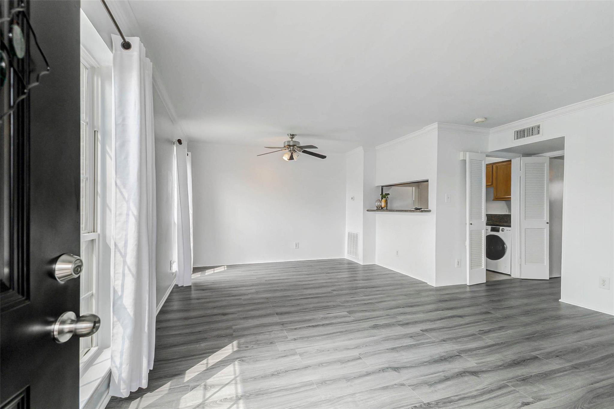 Welcome to this beautifully renovated condo offering incredible value with all utilities and cable included in the HOA fees—plus a recently replaced stove and microwave. Overlooking the pool yet set in a very quiet location, this sparkling-clean home features fresh interior paint, crown molding, and durable vinyl flooring. The darling kitchen is finished with granite counters and comes complete with a dual washer/dryer unit and refrigerator. The spacious bedroom provides 2 closets, including a walk-in, and connects to an updated bathroom for modern convenience. With its open, light-filled design and move-in ready condition, this condo is perfect for buyers seeking comfort and ease of ownership. Located in a gated, peaceful community, you’ll enjoy close proximity to top shopping destinations such as HEB, Kroger, Trader Joe’s, and Whole Foods, along with great dining options. This is a rare opportunity to enjoy low-maintenance living where water, electricity, and cable are all cove