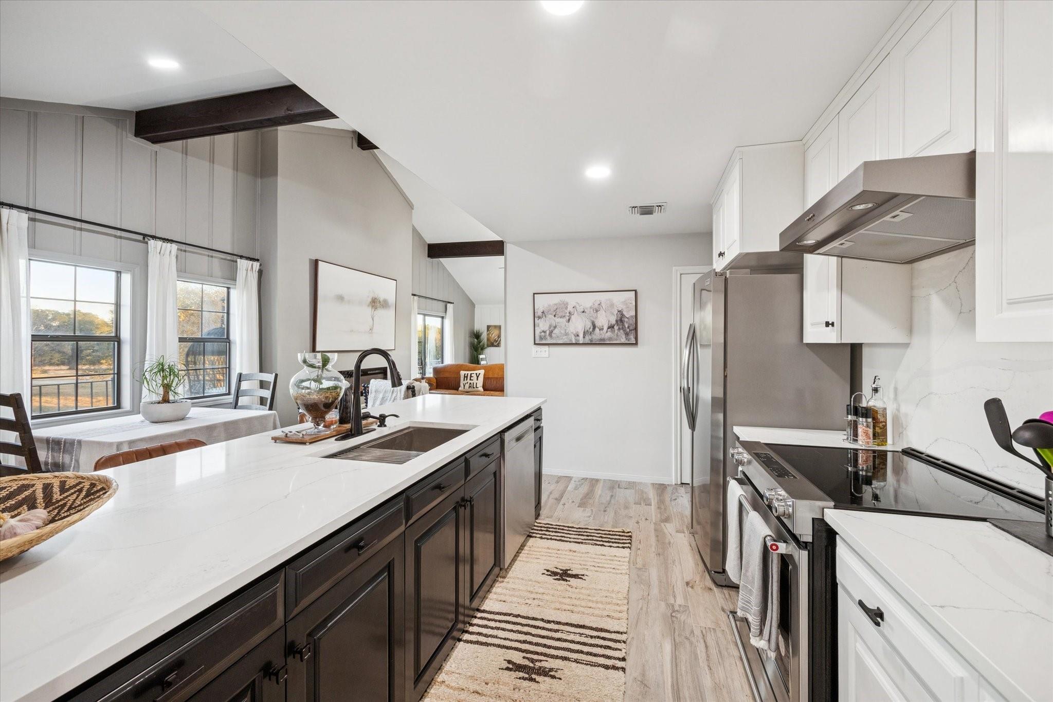 Refined luxury country living just minutes from Lake Somerville and the charming towns of Burton and Round Top. This meticulously remodeled 3/3 home offers expansive, thoughtfully designed spaces ideal for entertaining and everyday comfort. The lower level features a spacious game room, elegant living area, and a custom speakeasy-style bar, creating a one-of-a-kind private retreat. Upstairs, the kitchen has been redesigned with all-new appliances and premium countertops/backsplash. The kitchen flows seamlessly into the dining room and den, surrounded by expansive porches that frame peaceful country views and elevate indoor-outdoor living. Curated property enhancements include a substantial barn/shop, additional workshop/storage building, new fencing, fire pit, and RV hookup. Just minutes from the lake, this exceptional property also offers strong short-term rental potential. An impressive blend of craftsmanship, luxury, and timeless country charm--schedule your private tour today!