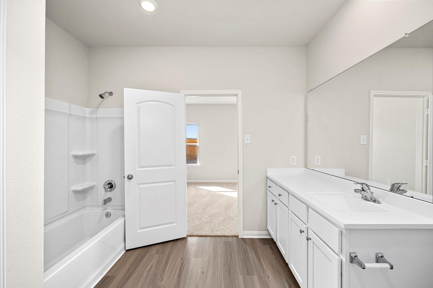Located only minutes from Downtown Houston, Park Vista at El Tesoro gives you easy access to the Medical Center, Museum District, local sports arenas, and so much more. The Pecan plan by LGI Homes in Park Vista at El Tesoro offers a gorgeous one-story retreat with three bedrooms, two bathrooms and an attached 2-car garage. The kitchen includes a full suite of Whirlpool appliances and features a dine-in breakfast room and breakfast bar overlooking the spacious family room. The private master suite features a spacious bedroom with two windows and a luxurious bathroom with a sprawling vanity and linen closet. Energy-saving features include a programmable thermostat, recessed LED lighting in the kitchen, and double-pane windows.