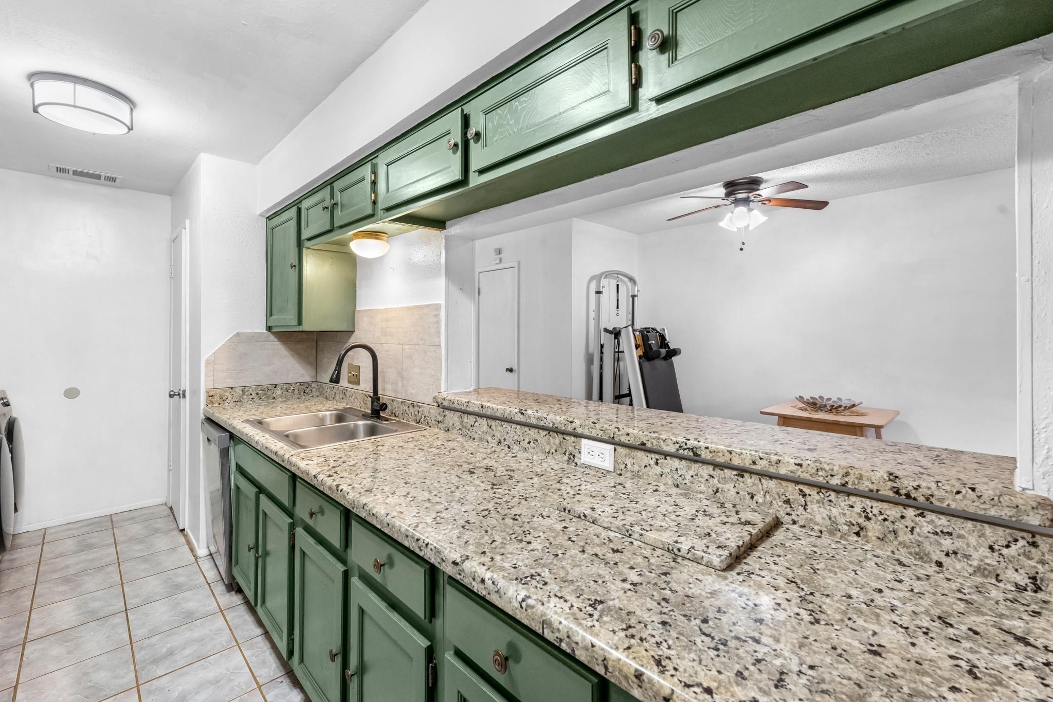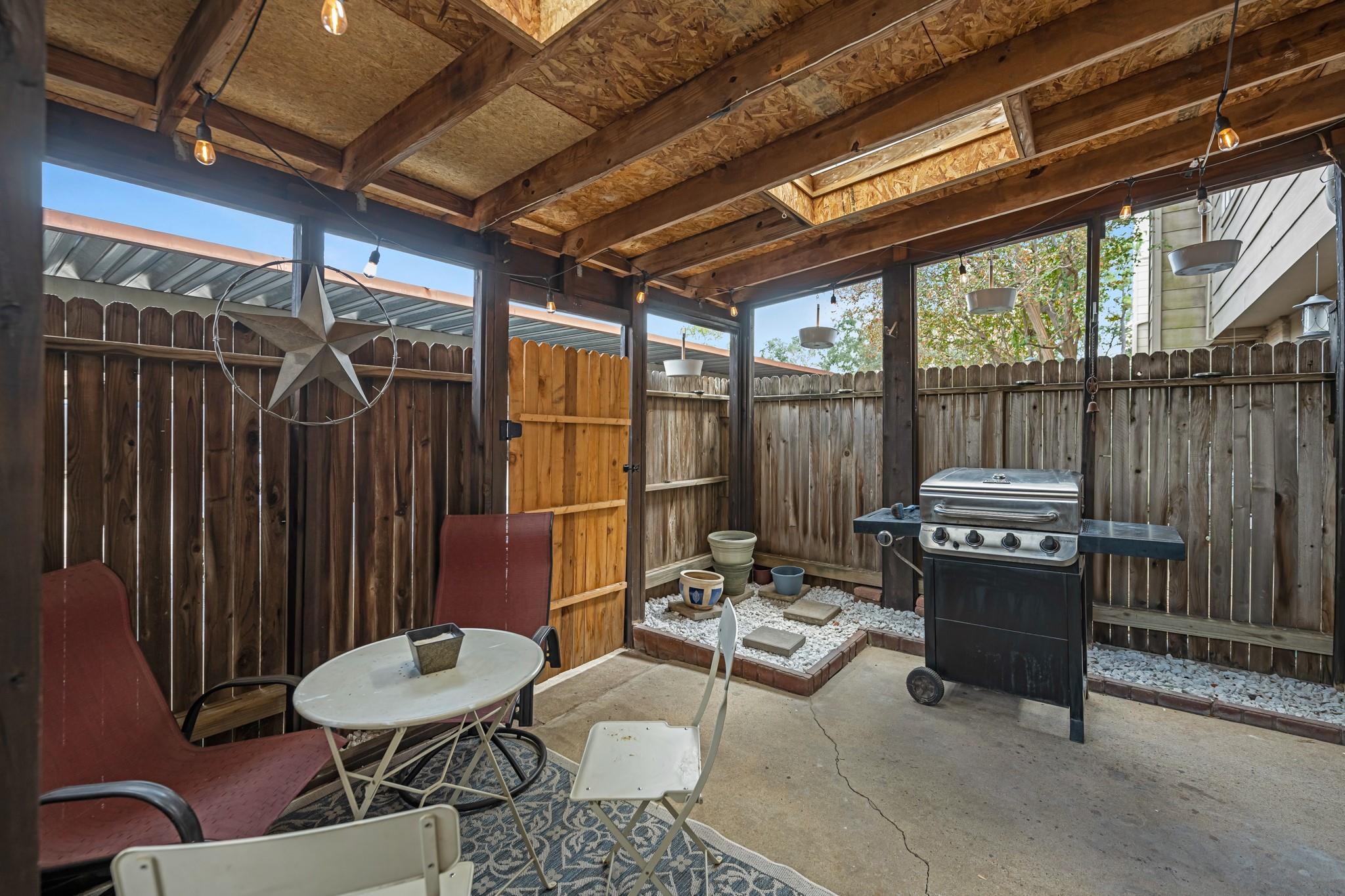 Wonderful 3-bedroom, 2.5-bathroom Townhome set on quiet, treelined street. Comfortable open floorplan offering spacious Family Room with cozy Fireplace. Kitchen equipped with Granite countertops, Gas Range, Evergreen Fog Cabinetry, and Breakfast Bar that opens to Breakfast Area. Large Formal Living/Dining area provides the perfect space for family gatherings and entertaining. Staircase leads to 3 Spacious Bedrooms, each with walk-in closet, and 2 full Bathrooms up. Relax and enjoy the privacy of your fenced back patio – perfect for morning coffee and outdoor grilling. Personal 2 car covered carport for convenient parking, plus private storage. Located in a well-kept community with LOW HOA: COVERS LAWN MAINTENANCE, SPRINKLER MAINTENANCE, EXTERIOR BUILDING MAINTENANCE & INSURANCE (INCLUDING ROOF & FOUNDATION), TRASH SERVICES, NEIGHBORHOOD POOL, PARK AND TENNIS COURTS. Easy access to Hwy6, FM529, Restaurants, Shopping and more. Refrigerator, Washer & Dryer Included. Welcome Home!
