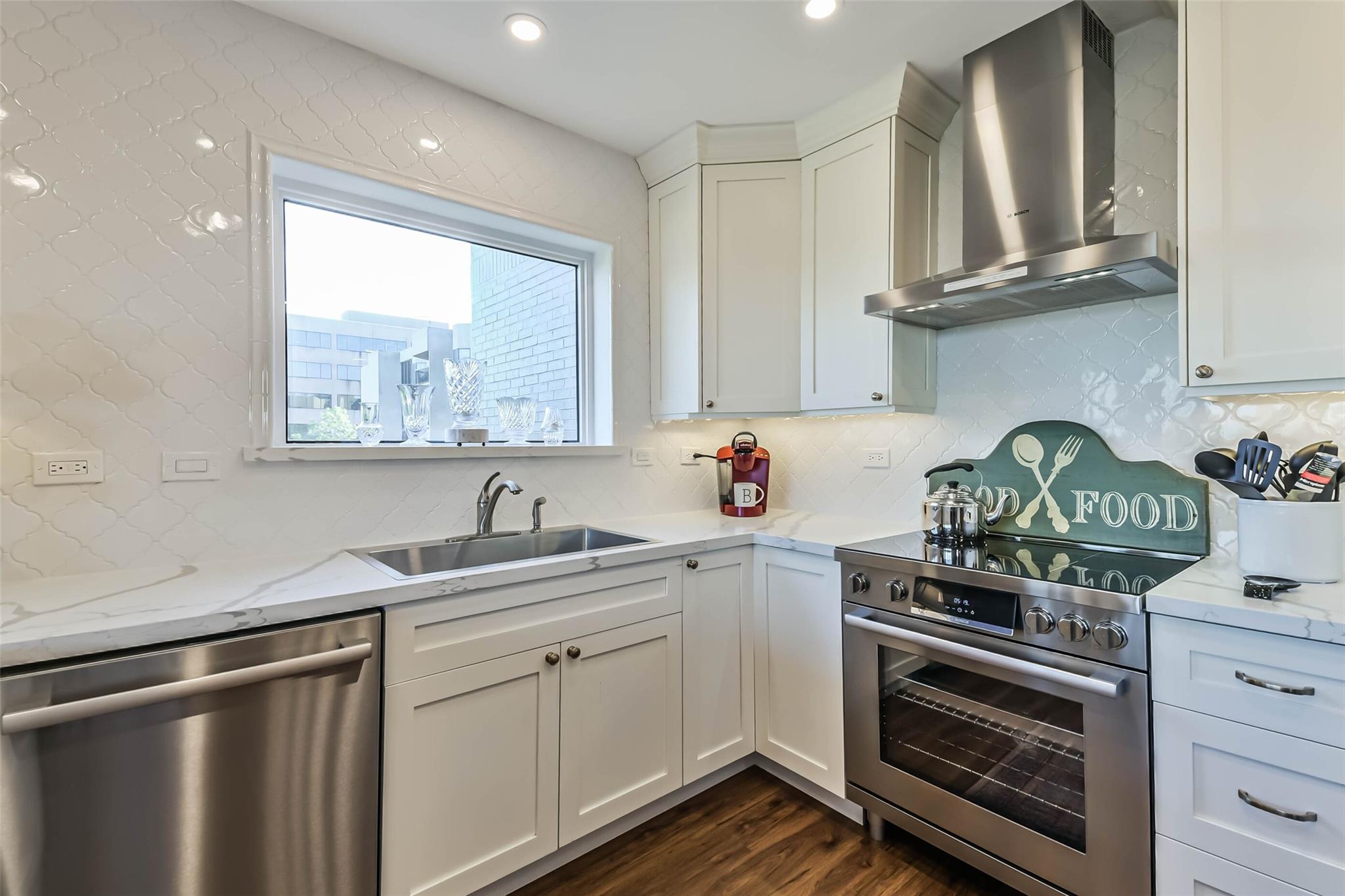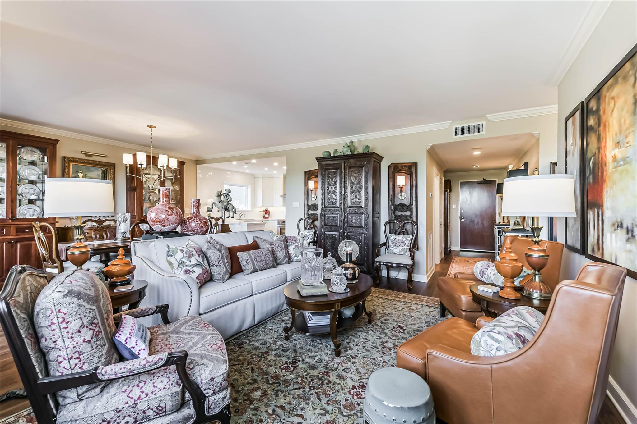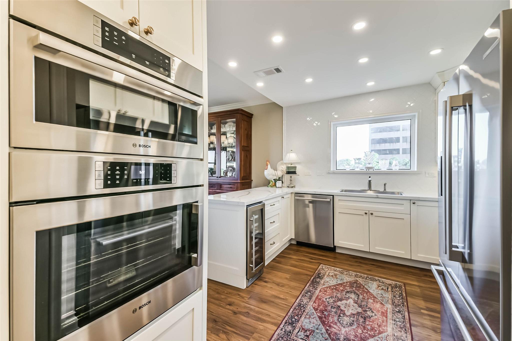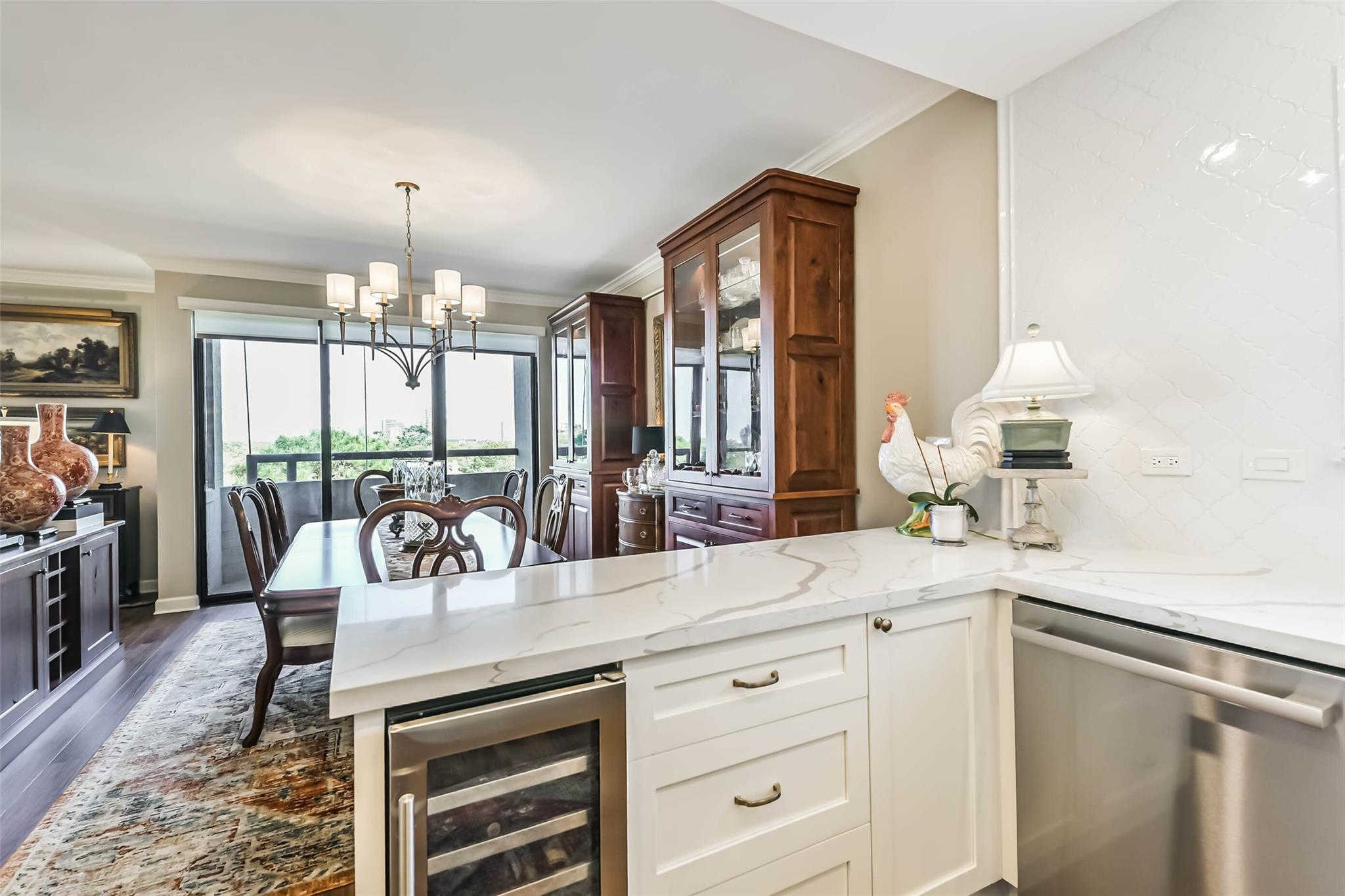 Welcome to this beautifully updated 2-bedroom, 2-bath corner unit condo in sought after Tanglewood, offering east and southeast views. Step inside and relax as there’s nothing left to do. This stunning property has been extensively renovated from the ground up. Updates include luxury vinyl flooring, a custom-built kitchen with custom cabinetry, ample storage, double ovens, Bosch appliances, and quartz countertops. Additional upgrades feature remodeled bathrooms, designer light fixtures, fresh paint, custom blinds, and more. The washer, dryer, and French door refrigerator convey with the unit. Enjoy a spacious walk-in closet with Elfa shelving, as well as a separate storage room conveniently located in the hallway. This unit also includes two assigned garage parking spaces. HOA covers building and grounds maintenance, cable TV, concierge services, common area insurance, water, and sewer. This unit will not disappoint—schedule your showing today!