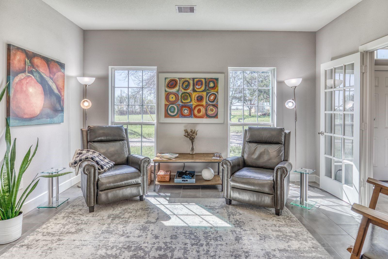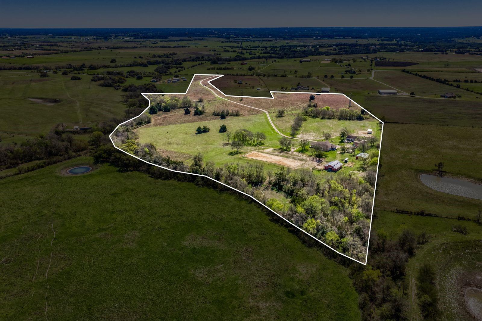 Welcome to an exceptional 42-acre retreat ideally located just one mile off of Highway 290, between Burton and Brenham. Built in 2021, the primary residence features a split floor plan with 4 bedrooms, 2 1/2 bathrooms, 10 foot ceilings and an open concept great area. Expansive porches invite you to take in the rolling topography and long-range views. The home is highly energy-efficient, has a 13 kW solar system paired with two Tesla Powerwall batteries as a backup source of power, offering sustainability and peace of mind. This property sends electricity back to the grid on some sunny days. The solar panels are also connected to the 3 bedroom, 1 bathroom guest house. The land is equally impressive. Enjoy an endless lap pool, two scenic ponds, and a diverse landscape that supports a wildlife property tax evaluation. Equestrian and ranch improvements include a 4-stall barn and a 60' x 200' outdoor arena. There is a separate equipment barn and greenhouse. Two water wells.