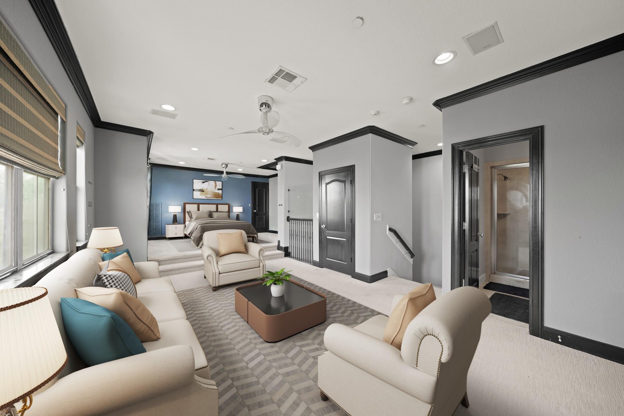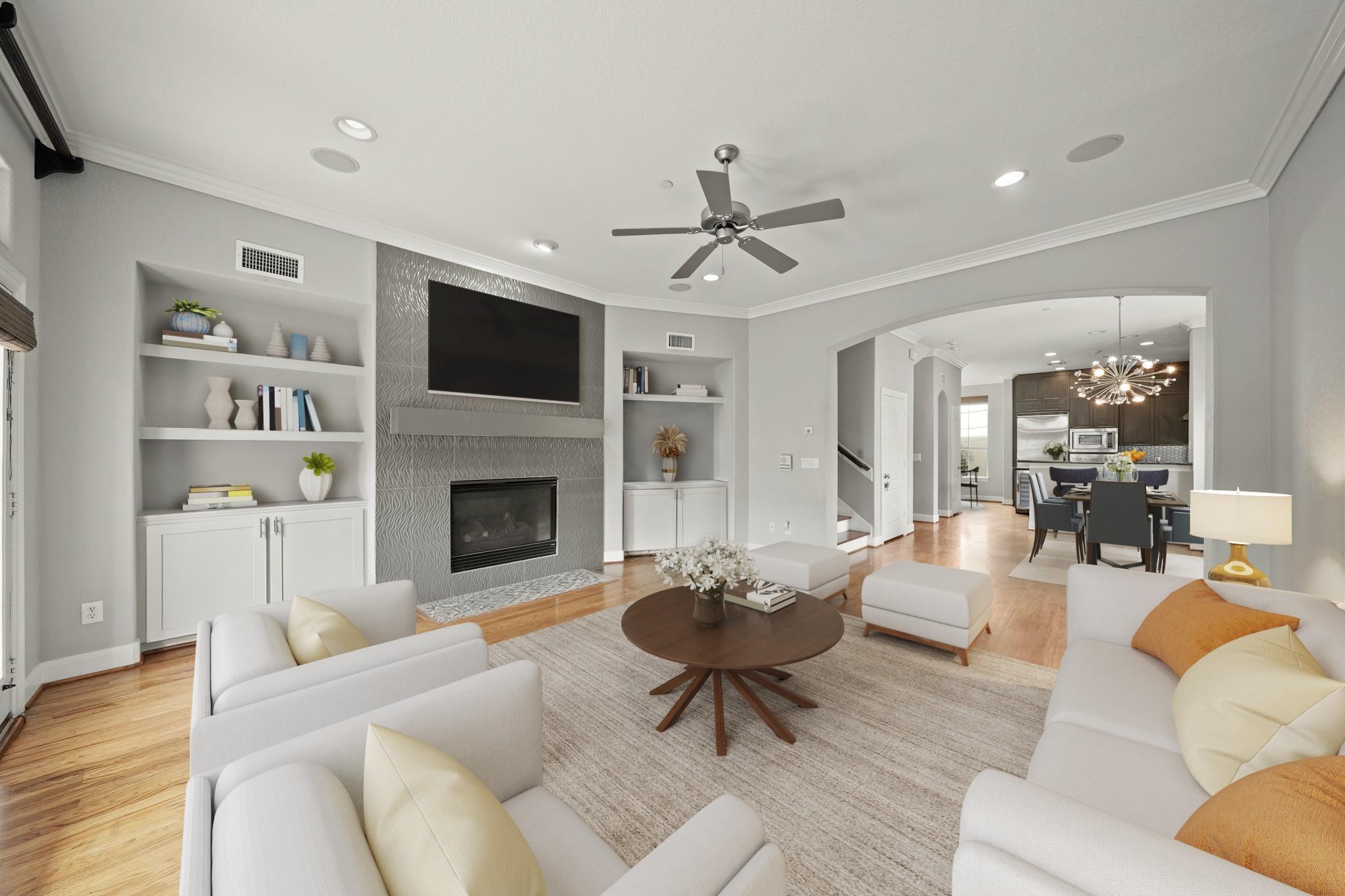Welcome to 6514 Minola Street, a four-story residence offering 3,244 sqft of living in the heart of Camp Logan. This elegant home is designed for both comfort and sophistication. The second floor showcases a seamless open-concept design where the chef’s kitchen—complete with granite countertops, custom cabinetry, a wraparound breakfast bar, and an island with wine fridge—flows effortlessly into the dining and living areas. The living room is a showpiece, highlighted by rich hardwood floors, a designer fireplace, and a private balcony. The primary suite exudes luxury with its private balcony and spa-inspired bath featuring dual vanities, a soaking tub, and a glass-enclosed shower. An upper-level lounge with wet bar offers versatility for entertaining or relaxation. With two private balconies and an unbeatable location just steps from Memorial Park and the vibrant Washington Corridor, this home delivers a blend of luxury, lifestyle, and location.