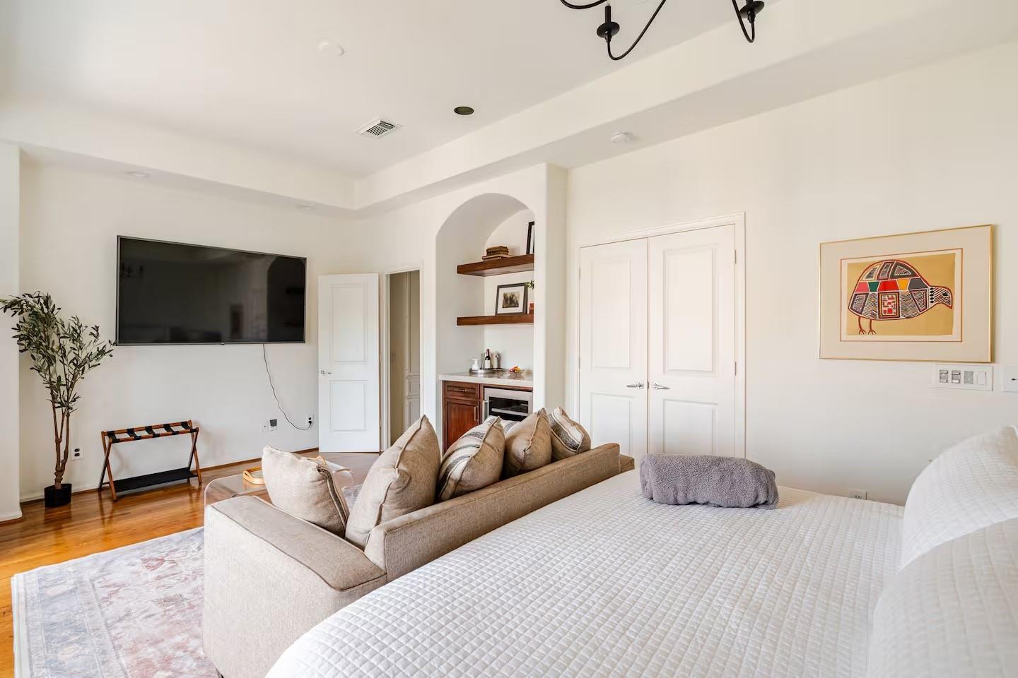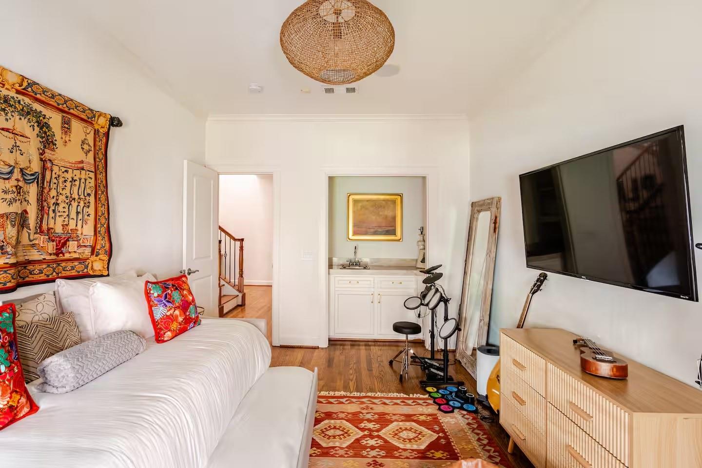 InteriorFireplace:1/Gaslog FireplacePets:Case By CaseSmoking Allowed:NoFurnished:YesFloors:Carpet,Tile,WoodCountertop:Taj Mahal QuartziteBathroom Description:Full Secondary Bathroom Down,Half Bath,Primary Bath: Double Sinks,Primary Bath: Jetted Tub,Primary Bath: Separate Shower,Secondary Bath(s): Tub/Shower Combo,Vanity AreaBedroom Desc:2 Bedrooms Down,2 Bedrooms Up,En-Suite Bath,Primary Bed - 3rd Floor,Sitting Area,Walk-In ClosetKitchen Desc:Breakfast Bar,Island w/ Cooktop,Pantry,Pots/Pans DrawersRoom Description:1 Living Area,Entry,Formal Dining,Formal Living,Kitchen/Dining Combo,Living Area - 2nd Floor,Utility Room in HouseHeating:Central GasCooling:Central ElectricDishwasher:YesDisposal:YesCompactor:NoMicrowave:YesRange:Gas CooktopOven:Double OvenIce Maker:NoAppliances:Dryer Included,Full Size,Refrigerator,Washer IncludedEnergy Feature:Ceiling Fans,Digital Program Thermostat,Energy Star AppliancesInterior:Alarm System - Leased,Balcony,Central Laundry,Crown Molding,Dryer Included,Fire/Smoke Alarm,High Ceiling,Prewired for Alarm System,Refrigerator Included,Washer Included,Wet Bar,Window Coverings,Wine/Beverage Fridge,Wired for Sound