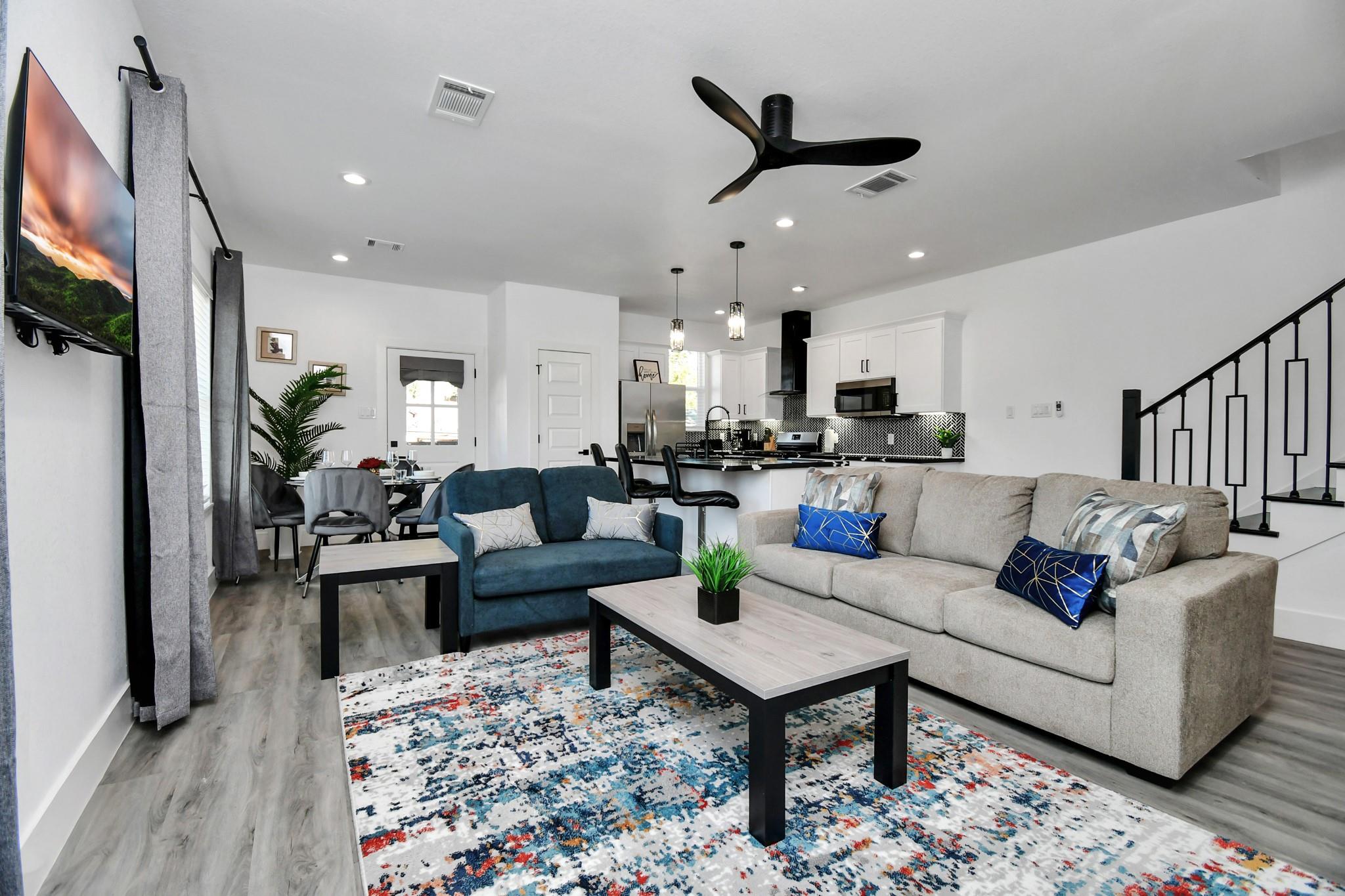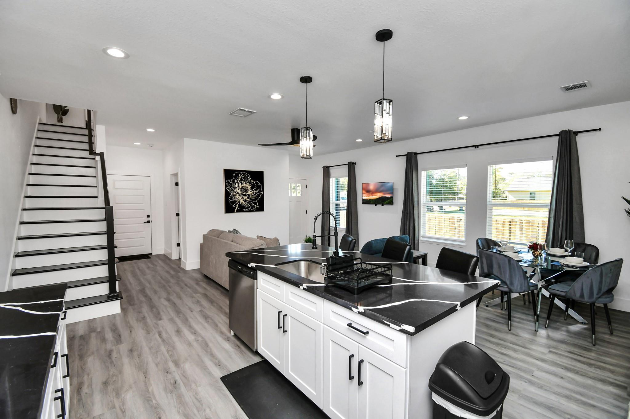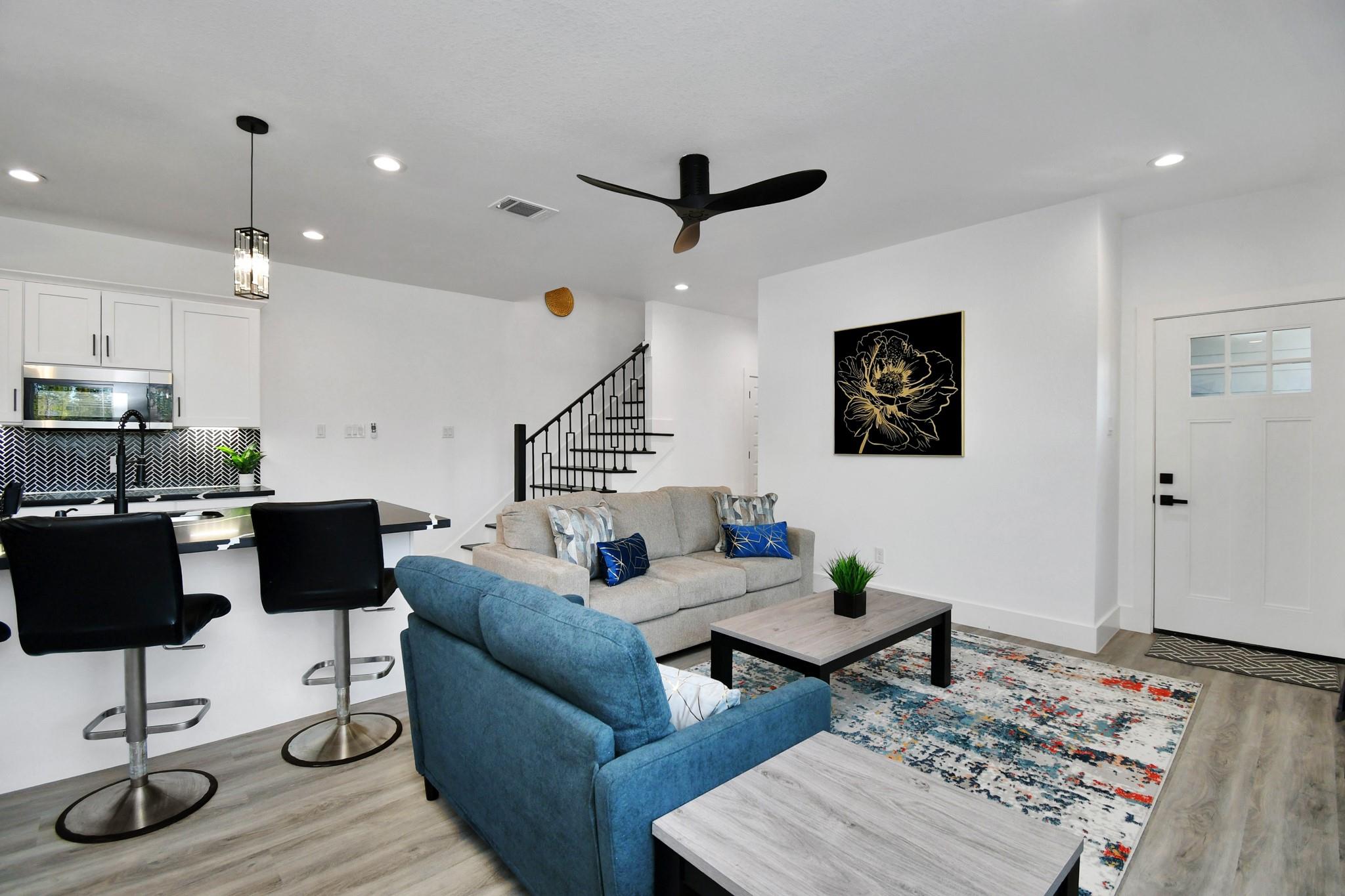 This two-story duplex offers modern living with three spacious bedrooms, an office/flex room, and 2.5 bathrooms on each side. Each unit features an open-concept layout, an elegant gourmet kitchen adorned with sleek quartz countertops, a stylish backsplash, ample cabinet space and pantry, a beautiful island with a breakfast room, and stainless-steel appliances, including a fridge. Each unit also boasts tile and luxury vinyl plank flooring throughout the house, and an oversized 2 car garage. Upstairs, you will find the master bedroom featuring an en-suite bathroom with double sinks, a glass door shower, and a walk-in closet. Conveniently located near Highway 59 (with close proximity to IAH) you'll enjoy easy access to freeways, shopping, and more. Whether you're a savvy investor or a homeowner looking to make a smart financial move, this duplex is an incredible opportunity for you. Buyer to confirm all room dimensions and assigned schools.