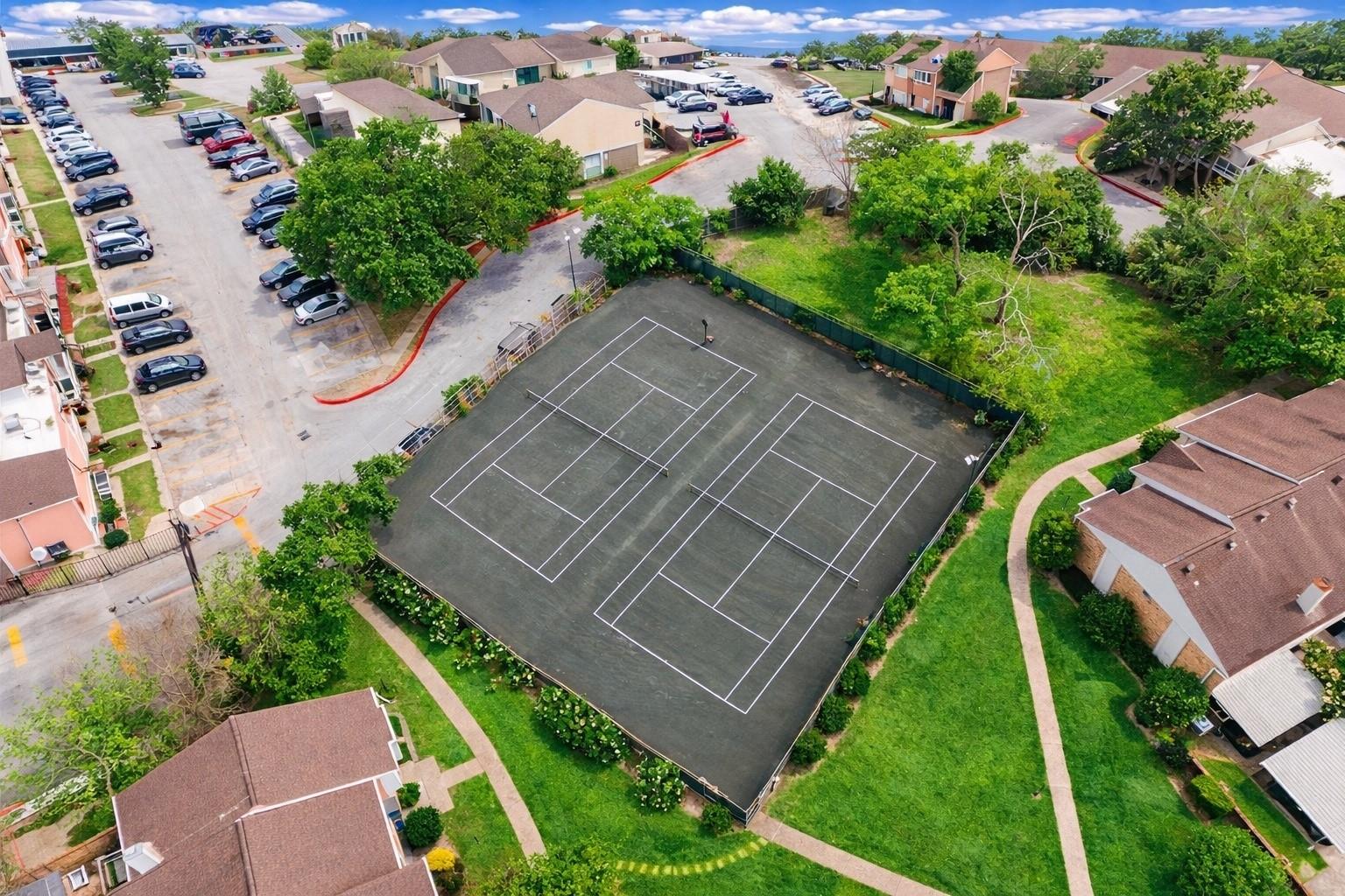 Beautifully updated 2-bedroom, 2.5-bath townhouse located in the well-established Fondren Place community. This move-in ready home features an open-concept layout with spacious living and dining areas, abundant natural light, and easy maintenance tile flooring throughout the first floor. The kitchen features white shaker-style cabinetry, stainless steel appliances, ample counter space with striking black granite countertops, and a sunlit breakfast area that is directly accessible to the fenced patio area. Upstairs, you’ll find two generously sized bedrooms including a large primary suite with a walk-in closet and private bath. Enjoy your own private fenced patio, two covered parking spaces, and direct access to a centrally located community green space and pool in a peaceful courtyard setting. Easy access to major highways, shopping, and dining. Great opportunity for homeowners and investors alike!